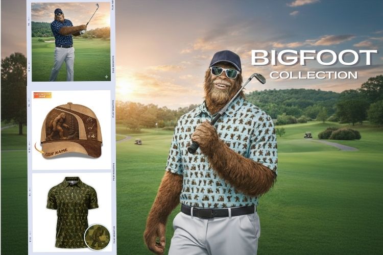 Funny Golf Shirt For Men, Bigfoot Pattern Golf Shirt, Crazy Golf Shirt For Golfer