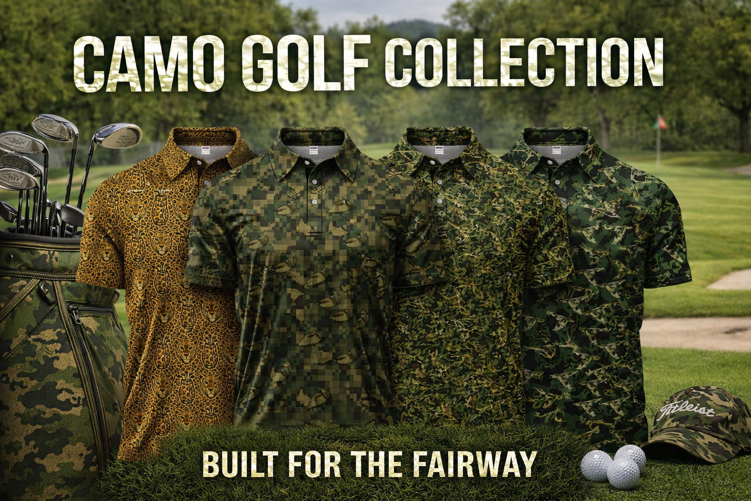 Camo Golf Shirt For Golfer, Camo Polo Shirt, Pattern Golf Shirt For Veteran, Golf Gift For Men