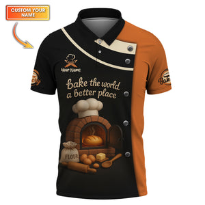 Bake The World A Better Place Shirt, Custom Name Baker Uniform, Gift for Baker