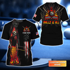 BALLZ & ALL Team Bones 8 Ball American Flag Billiards Personalized Name 3D Tshirt Gift For Billiard Players