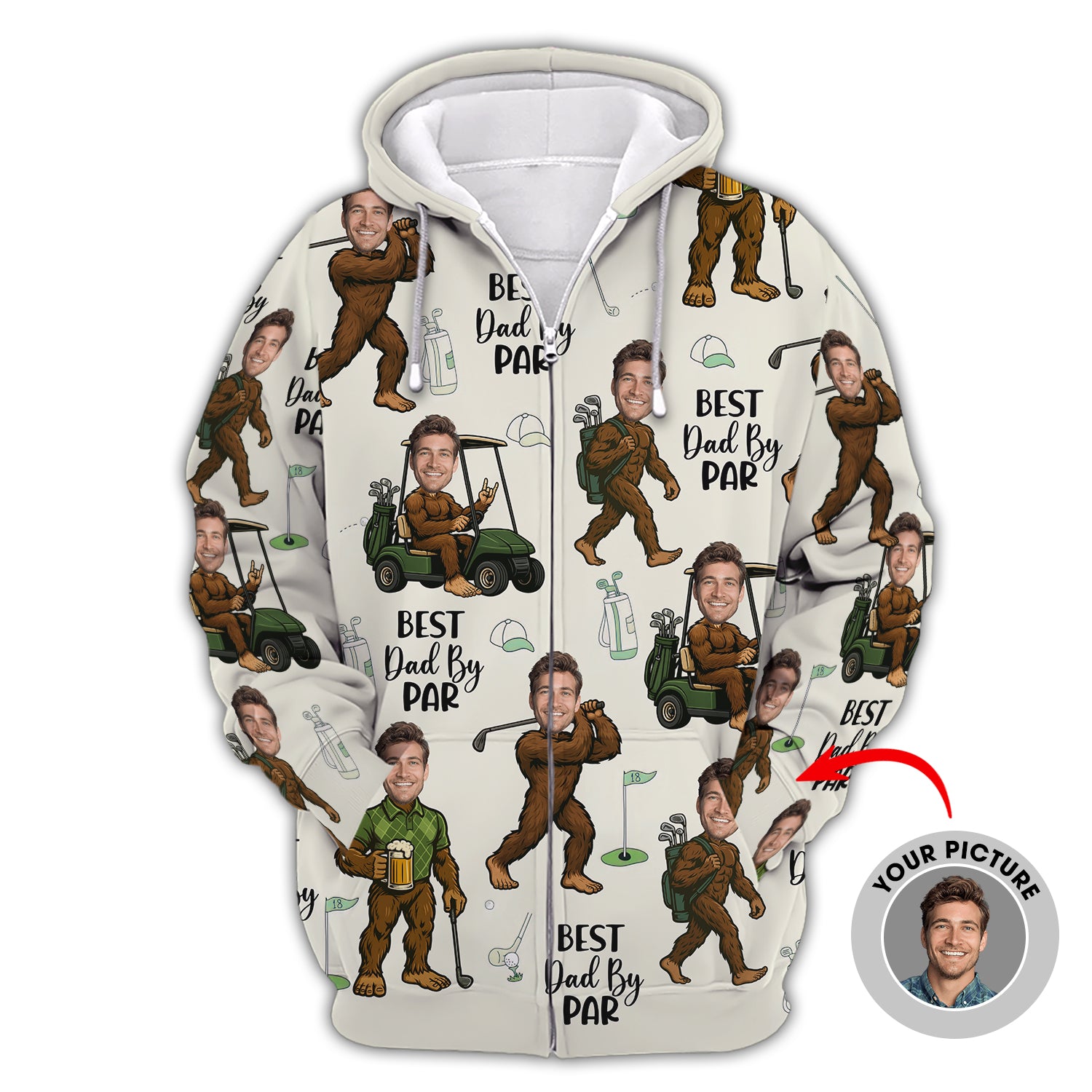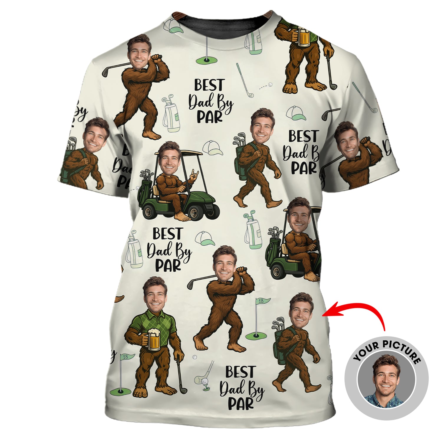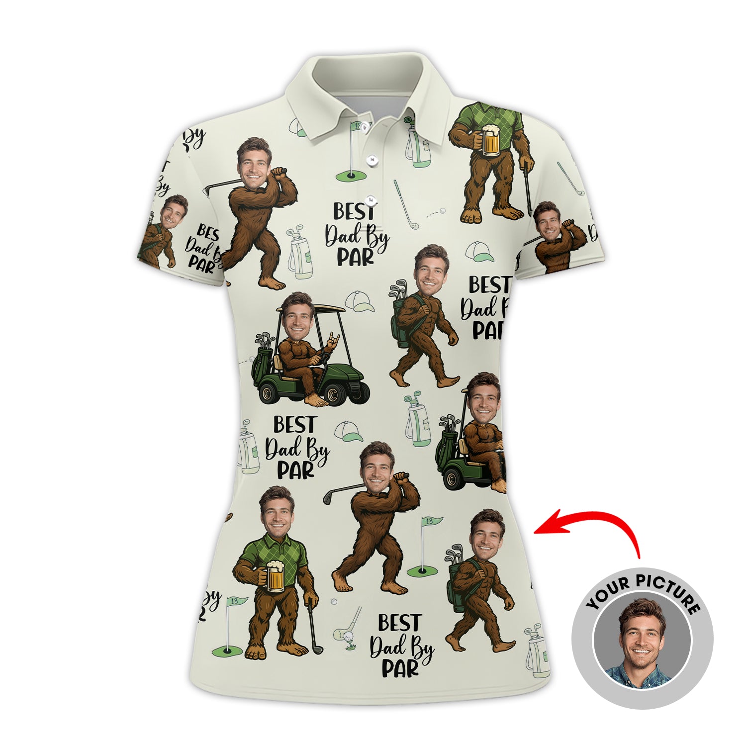 Best Dad By Par Funny Custom Golf Shirt With Faces - Bigfoot Golf Shirt For Dad