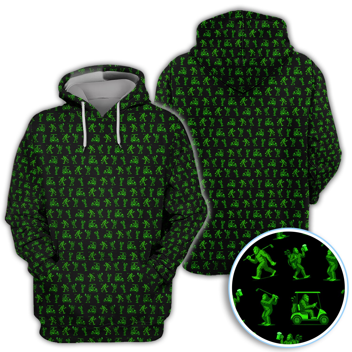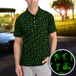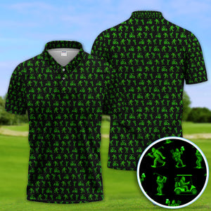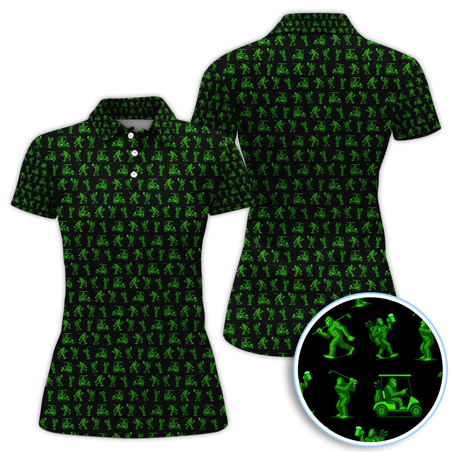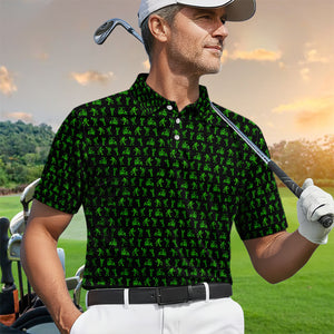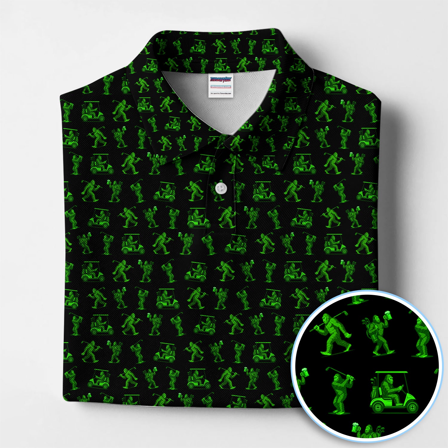 Bigfoot Golf Pattern Shirt, Funny Sasquatch Golf Polos For Men, Neon Green Golf Shirt For Golfer