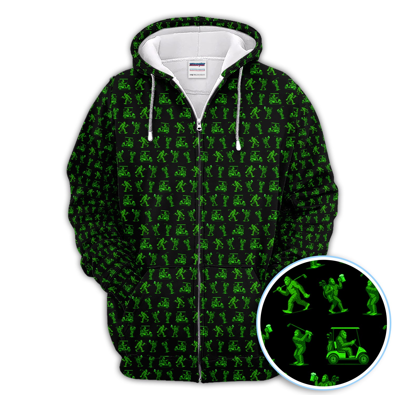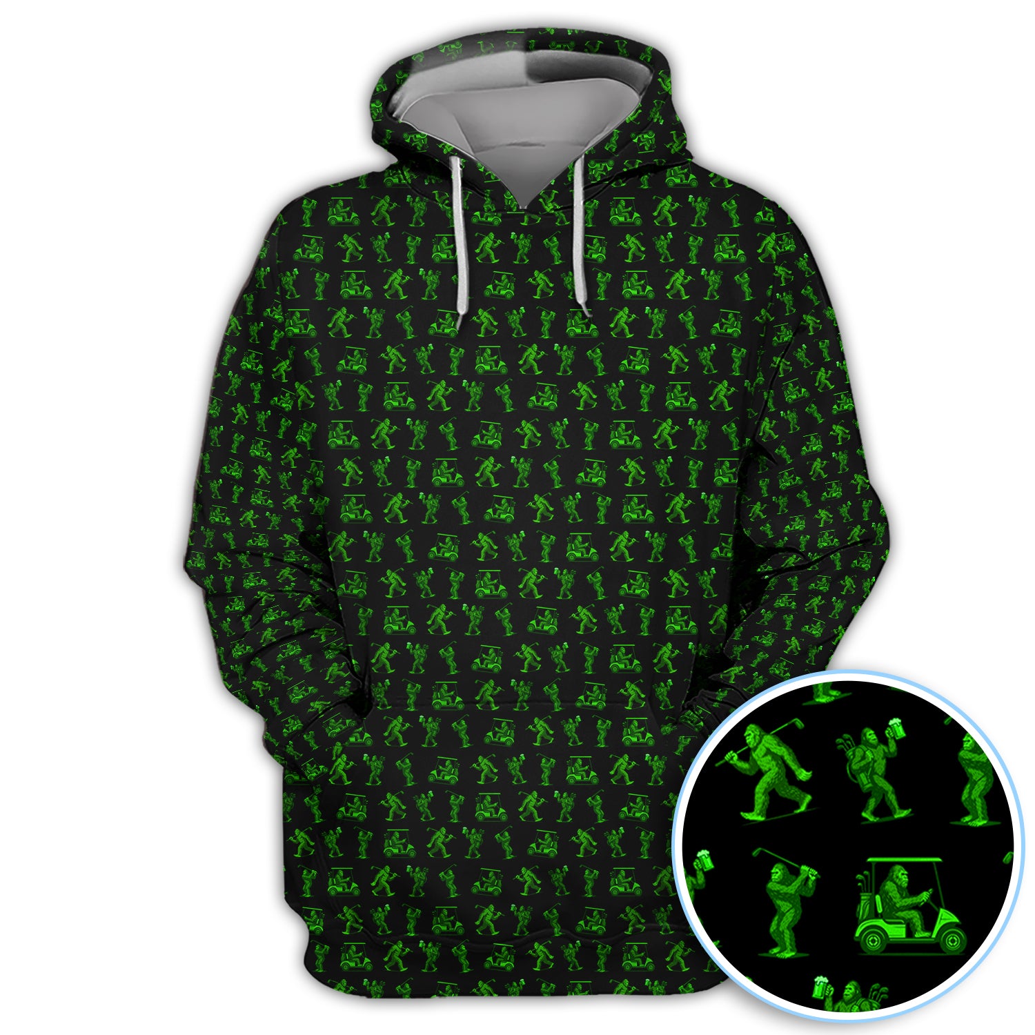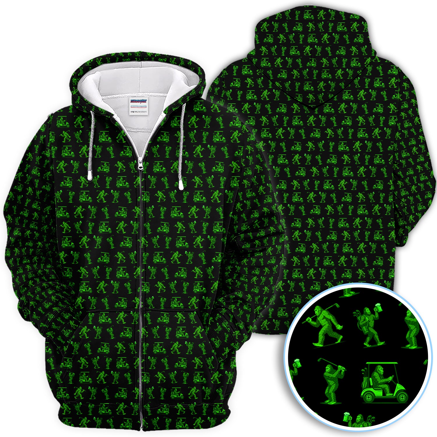Bigfoot Golf Pattern Shirt, Funny Sasquatch Golf Polos For Men, Neon Green Golf Shirt For Golfer