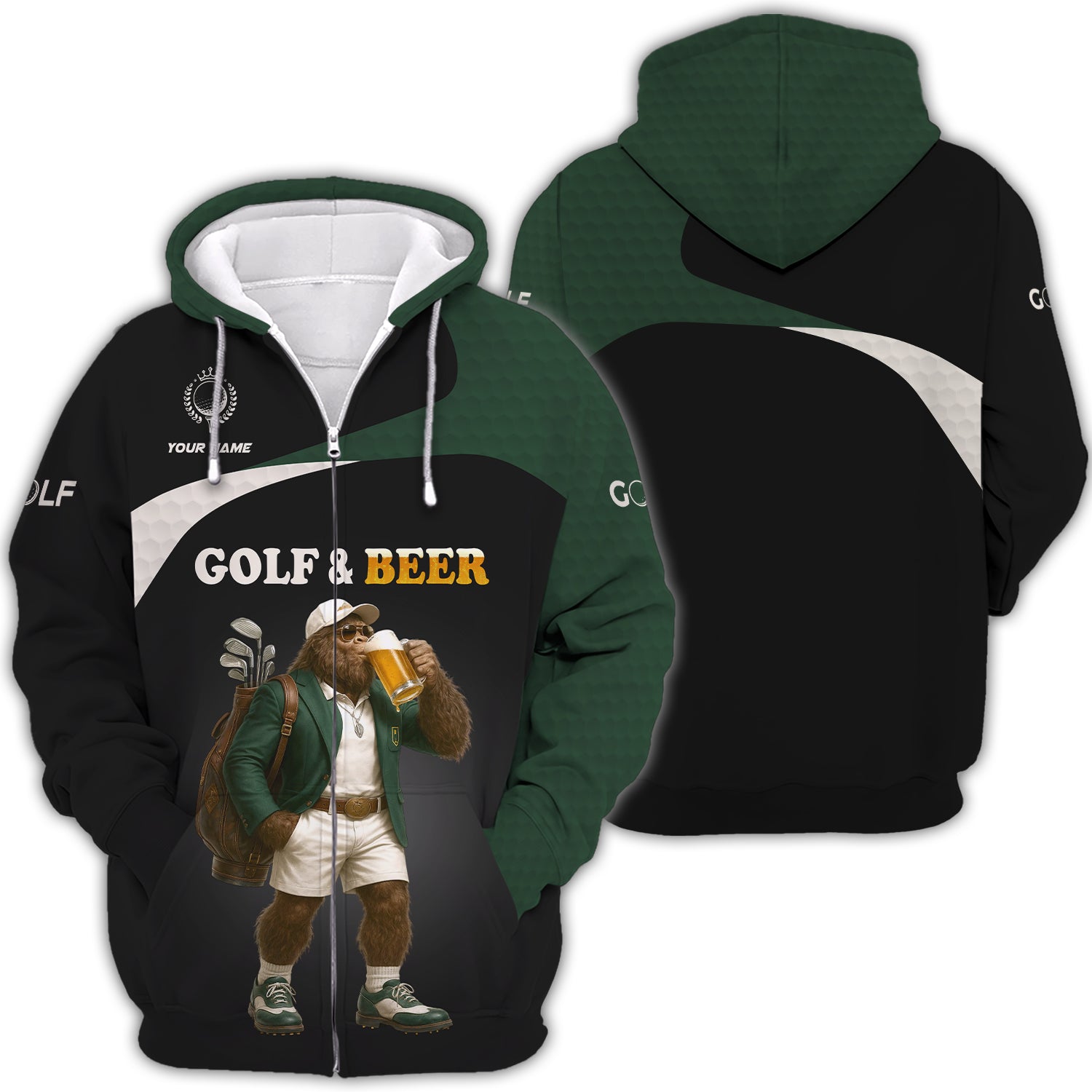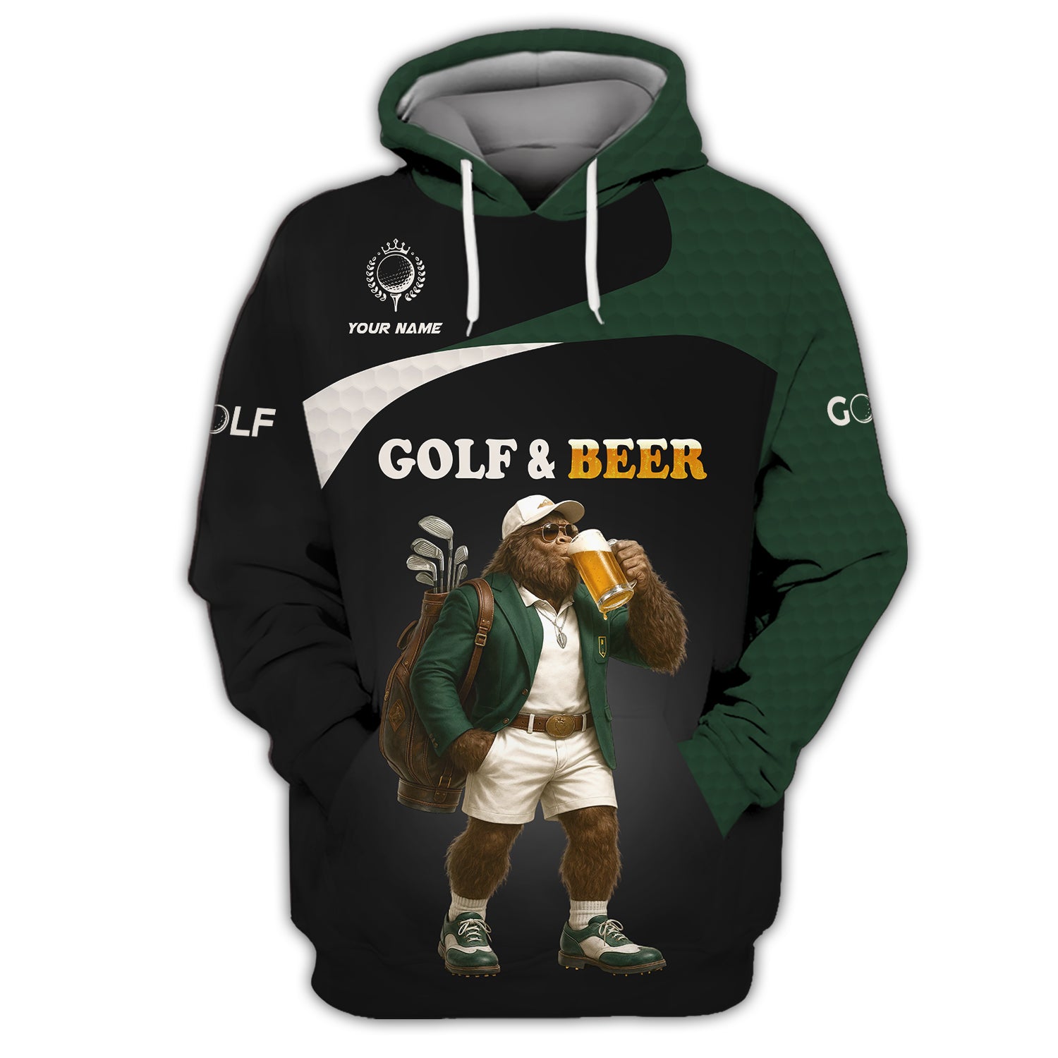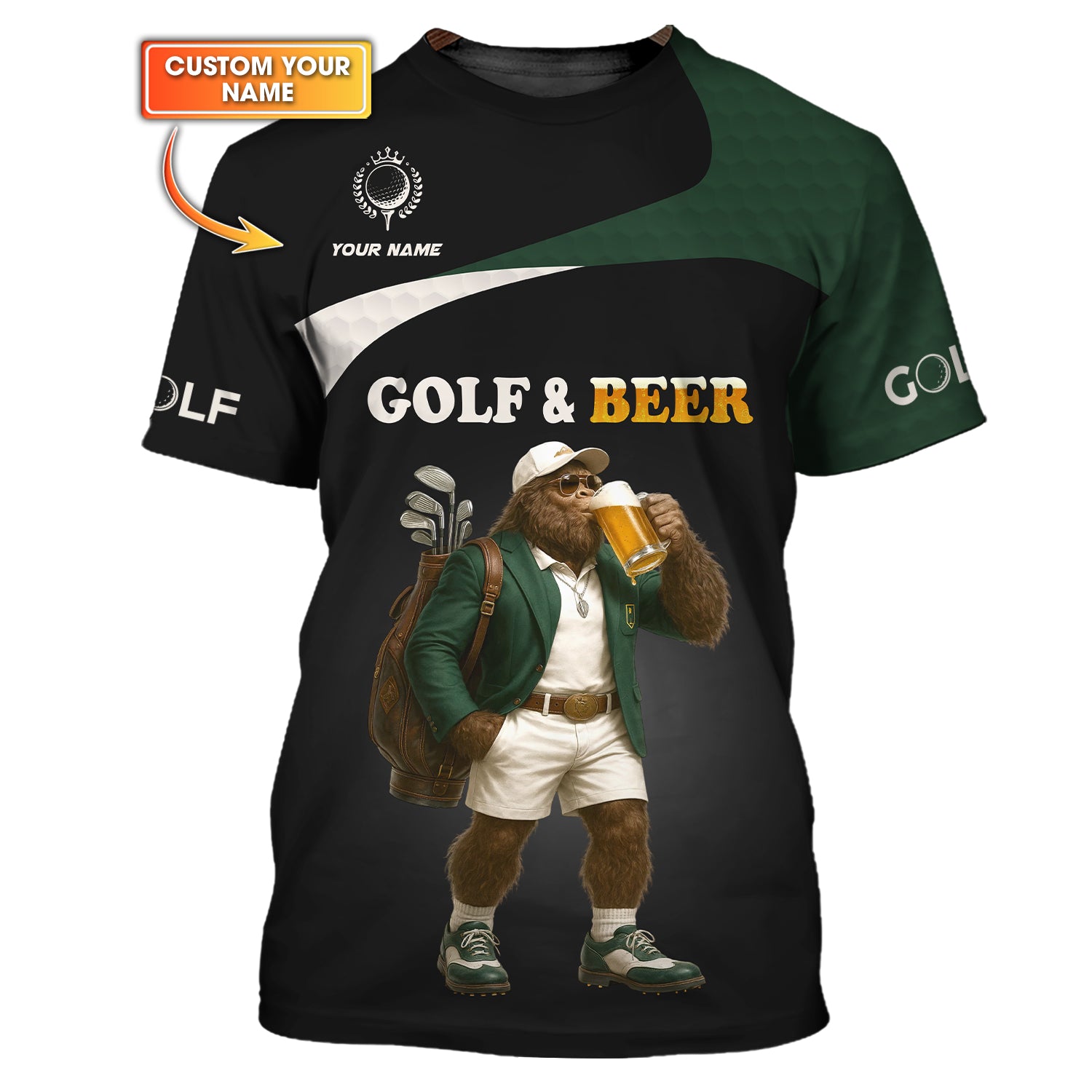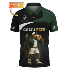 Bigfoot Golf Custom Name Polo Shirt – Beer and Golf Design – Funny Gift for Golfers