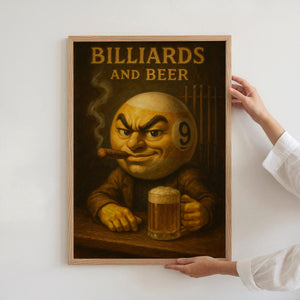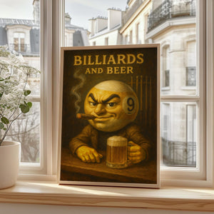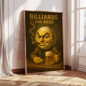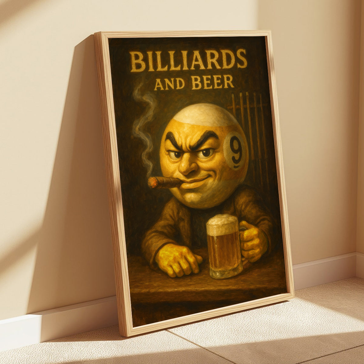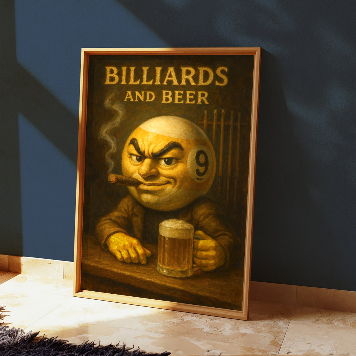 Billiards And Beer Wall Art, 9 Ball Billiards Canvas, Vintage Billiards Poster, Gift For Pool Player