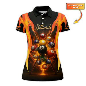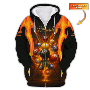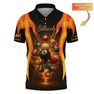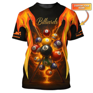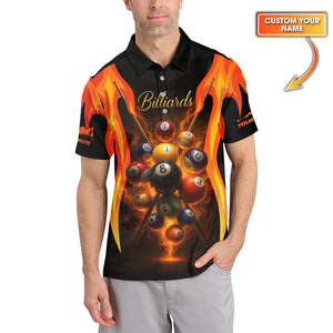 Billiards Pool Shirts, Flaming Billiards Jersey, Custom Name Pool Player Shirt