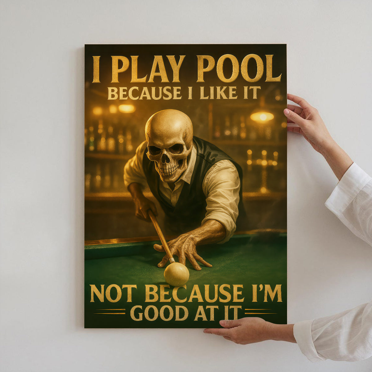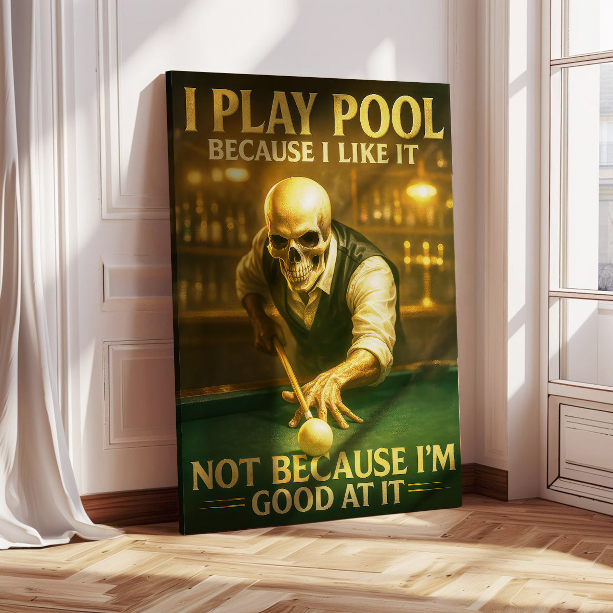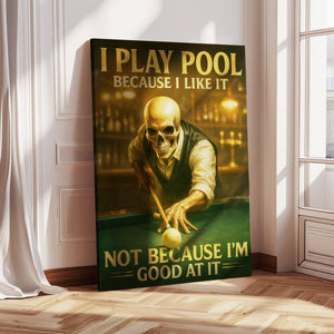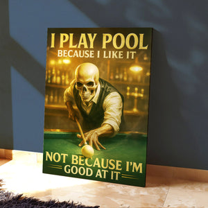 Billiards Poster, I Play Pool Because I Like It Wall Art, Billiards Canvas For Pool Player