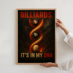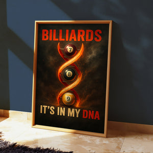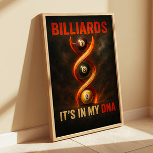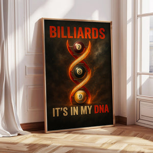 Billiards Poster, It's In My DNA Pool Wall Art, Pool Players Bar Or Game Room Decor