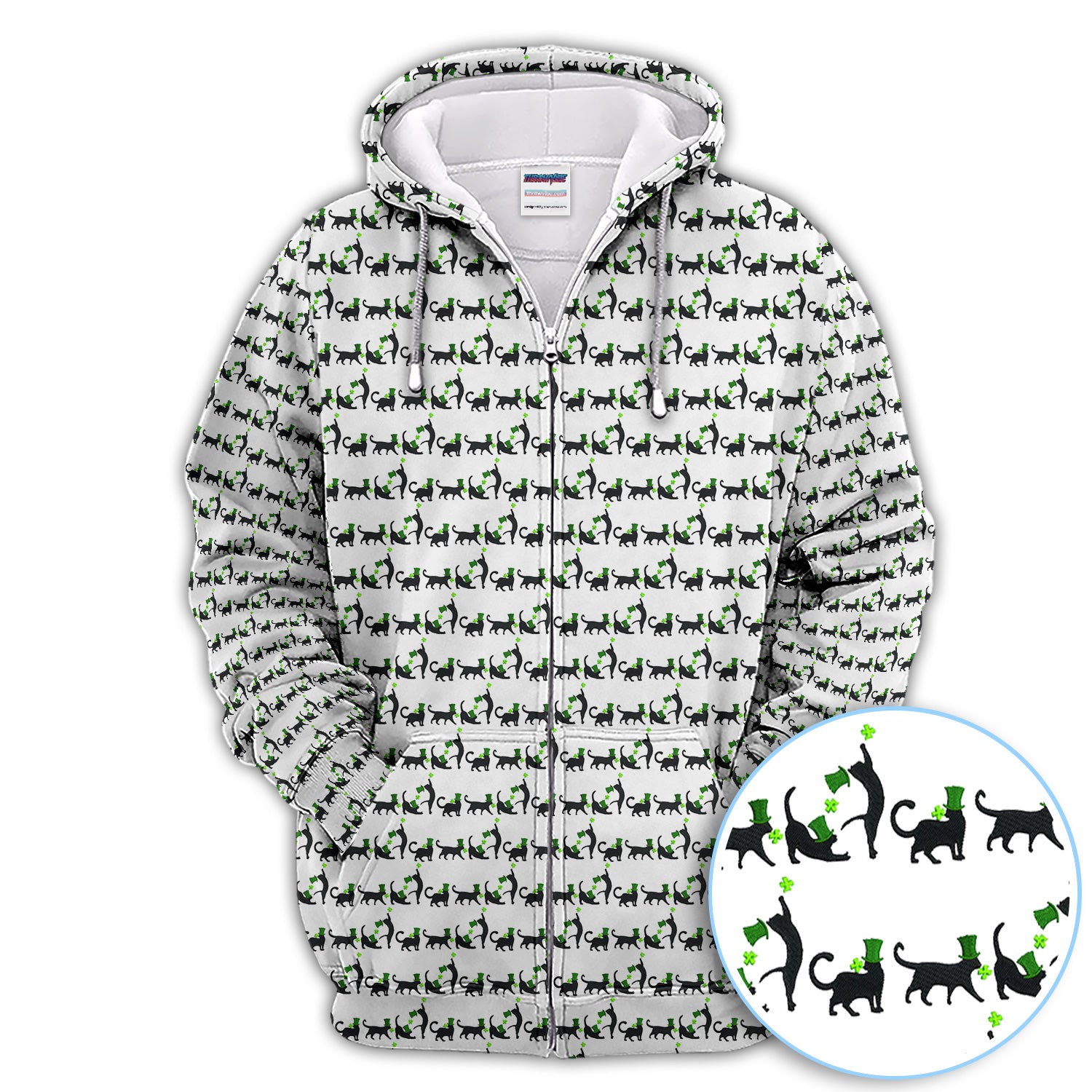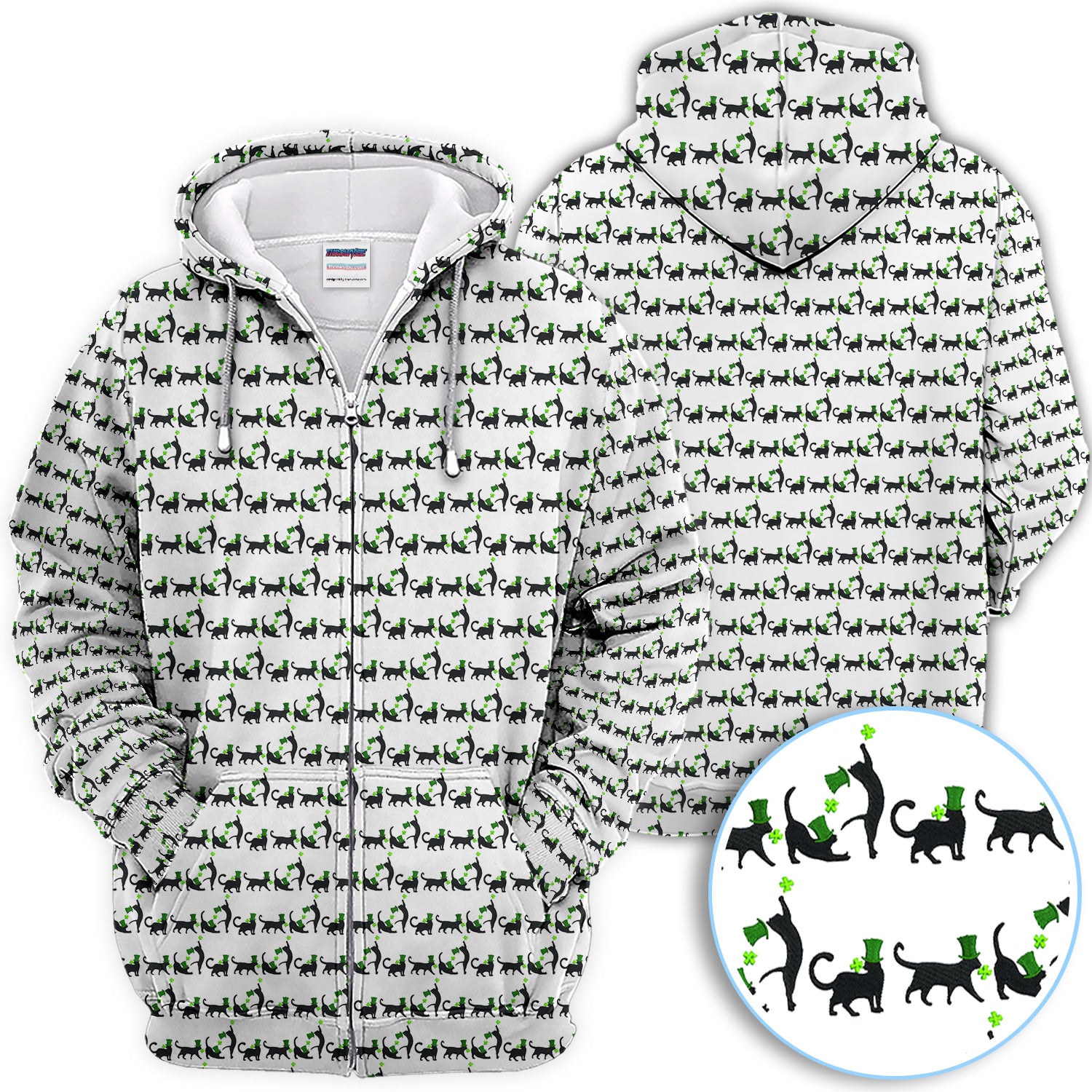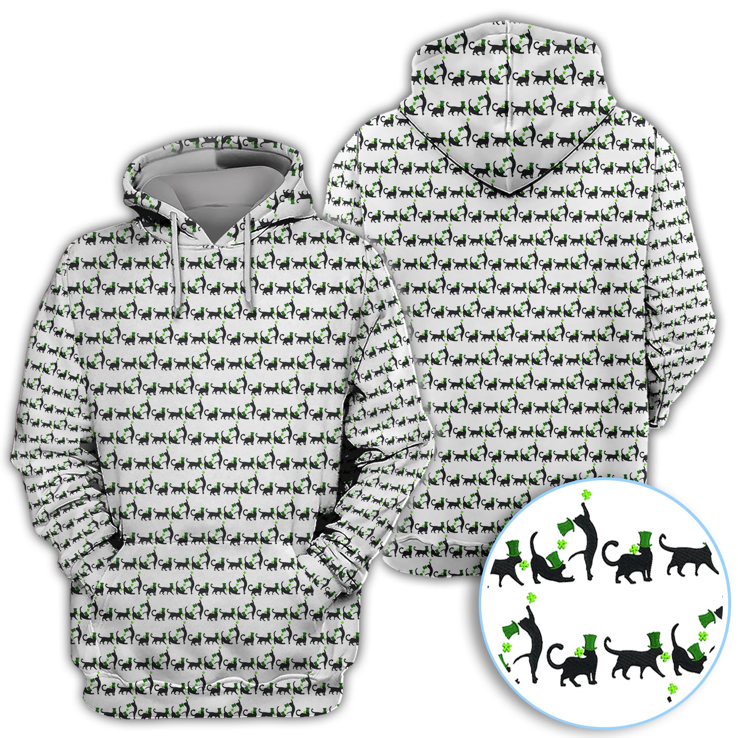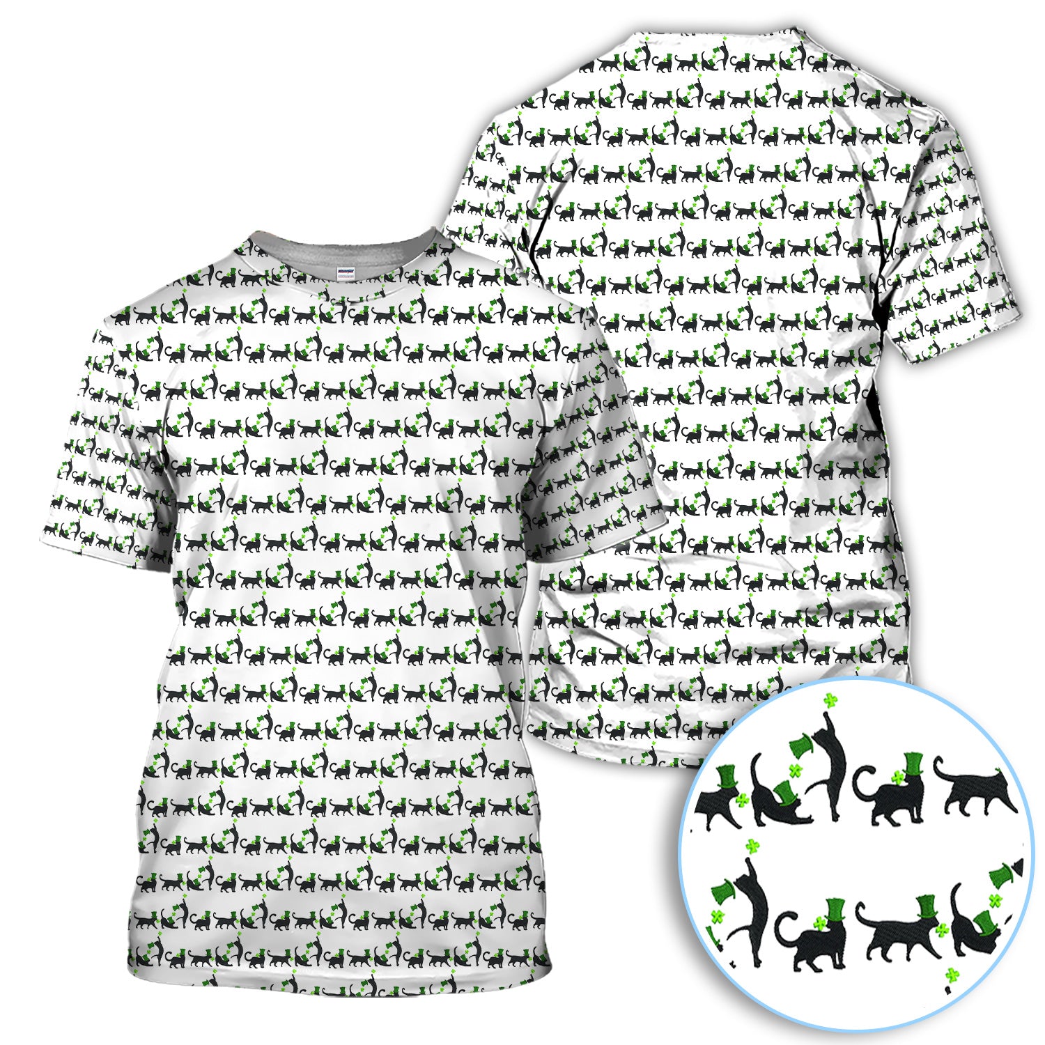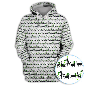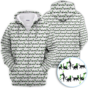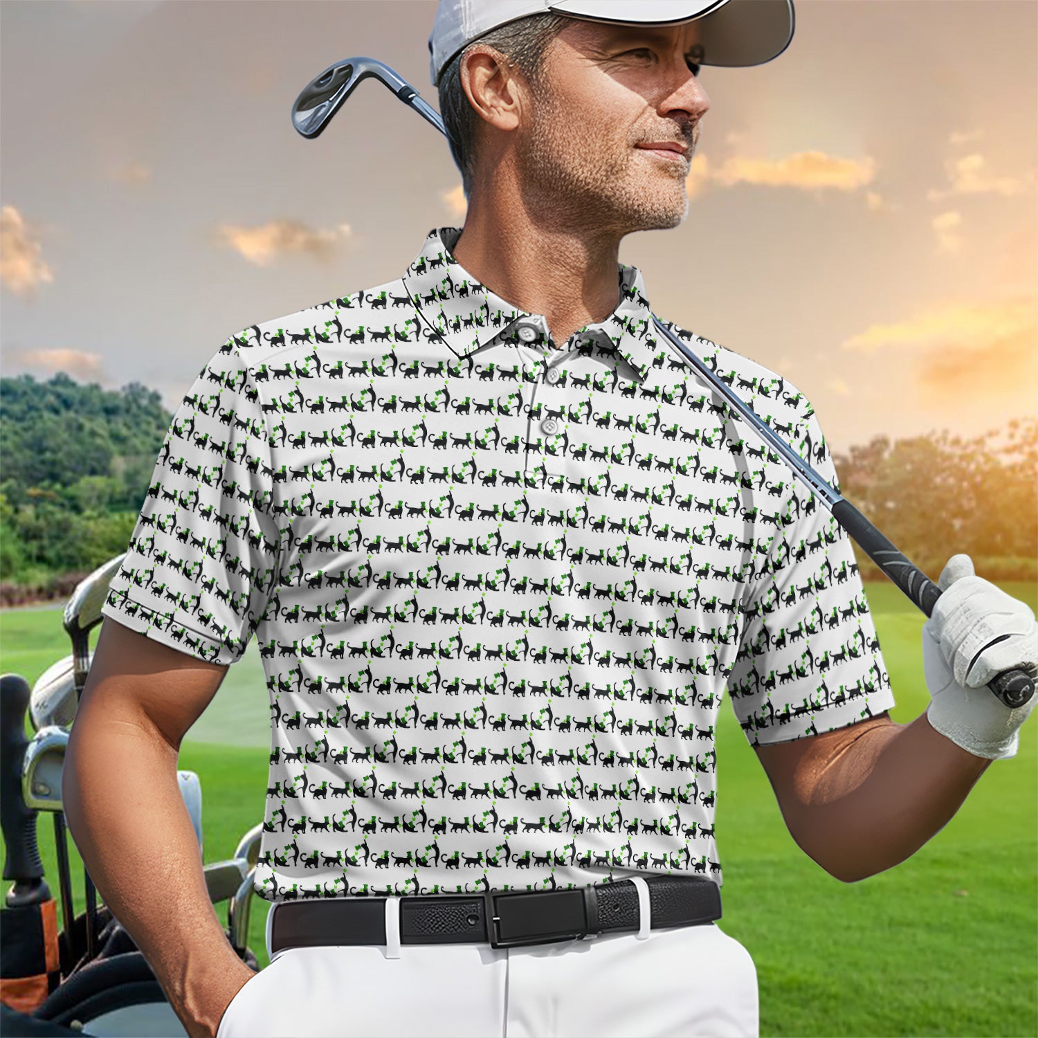 Black Cat St Patrick’s Day Golf Polos, Lucky Cat Pattern Golf Shirt, Golf Gift For Golfer
