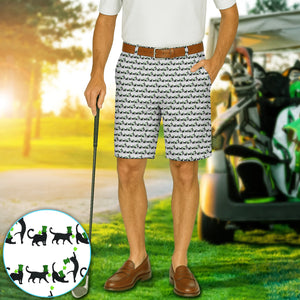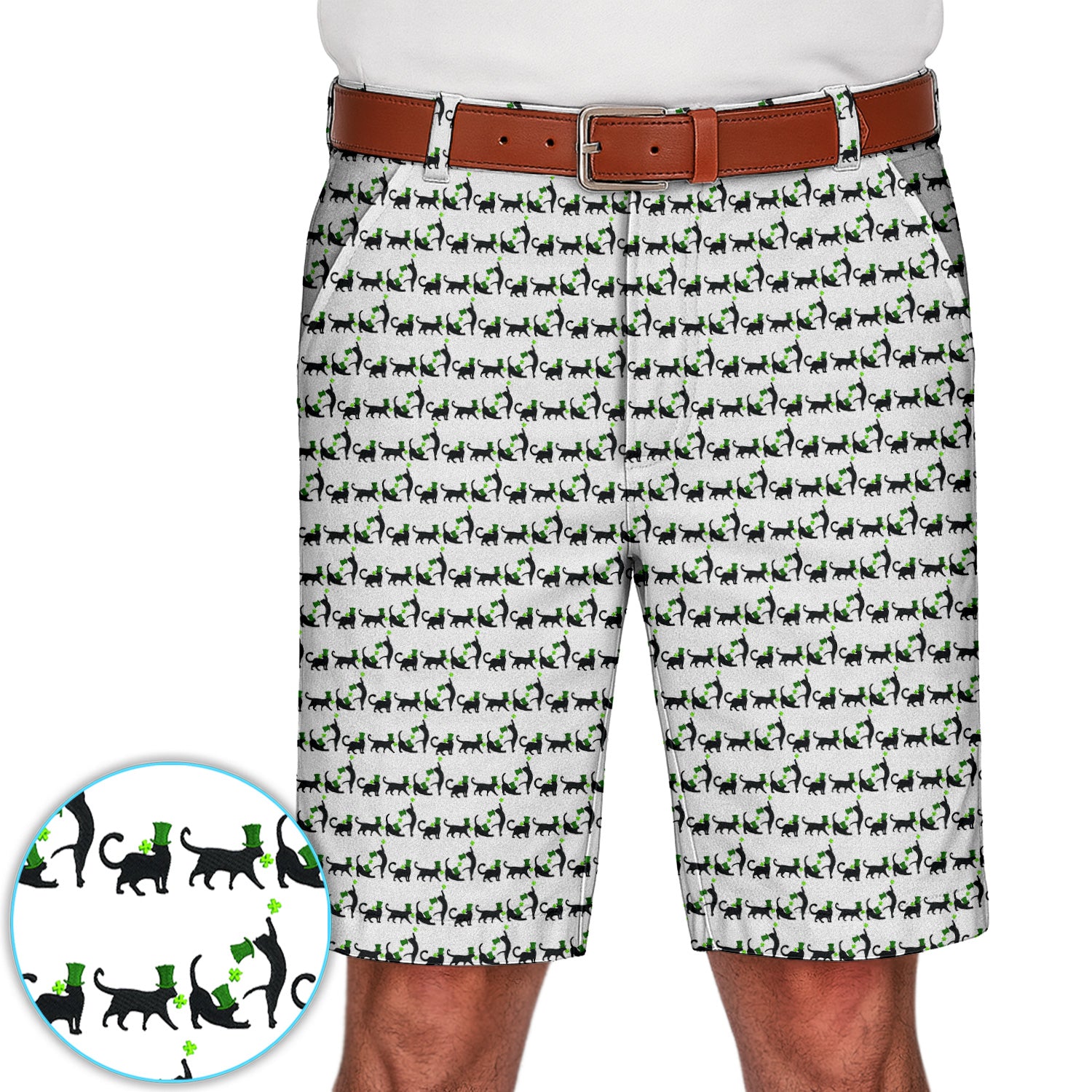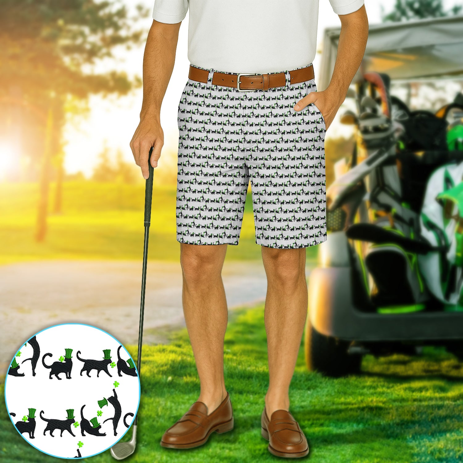 Black Cat St Patrick’s Day Golf Short, Lucky Cat Pattern Golf Shorts, Golf Gift For Golfer