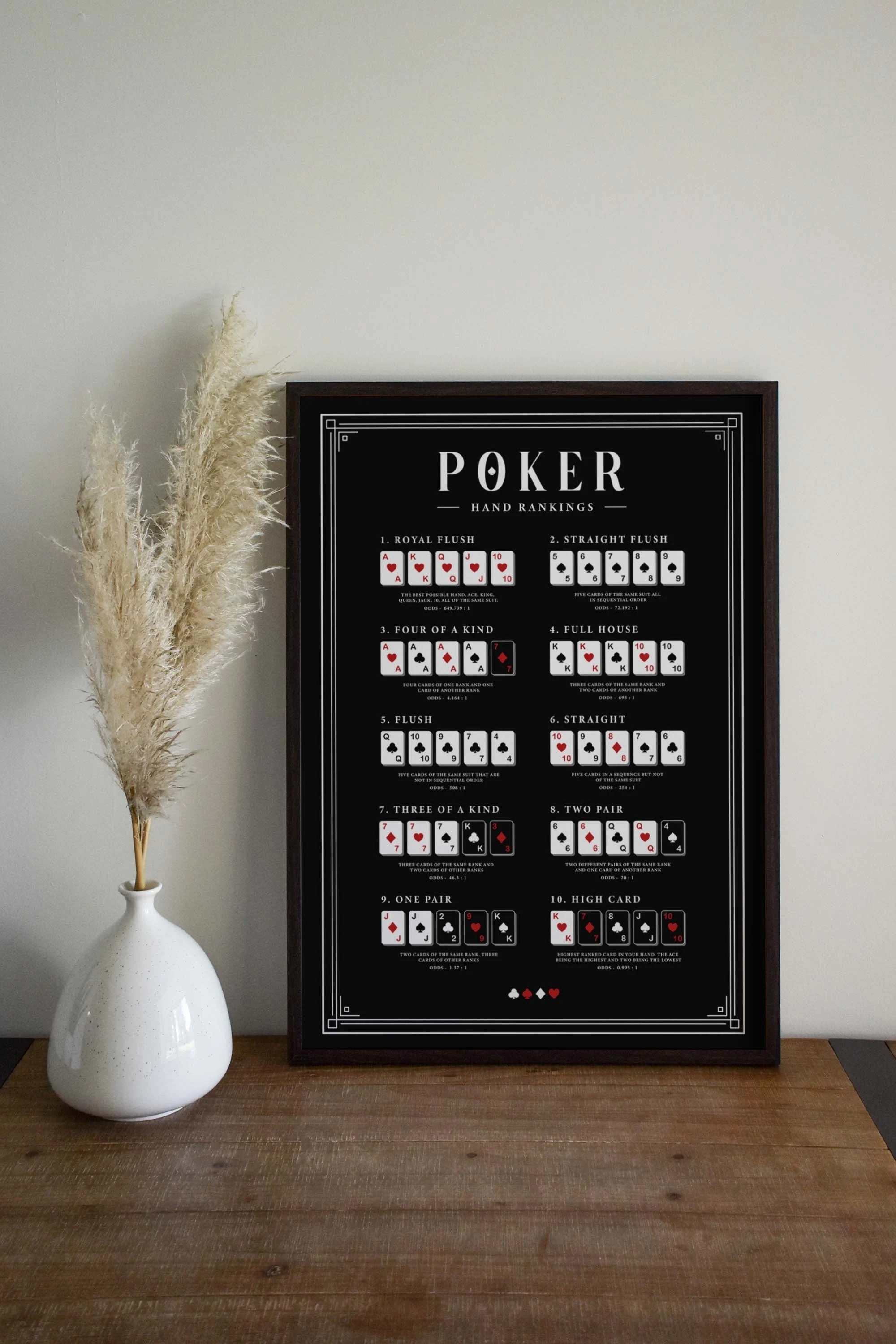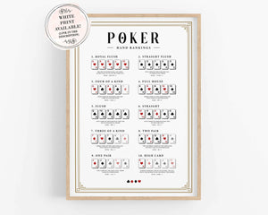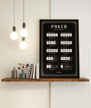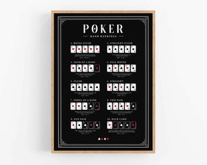 Black Poker Hand Rankings Canvas, Poker Poster, Poker Guide, Poker Cheat Sheet, Casino Poster