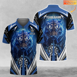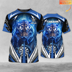 Blue Lightning Tiger Personalized Name & Team Name 3D Shirts For Dart Team Player