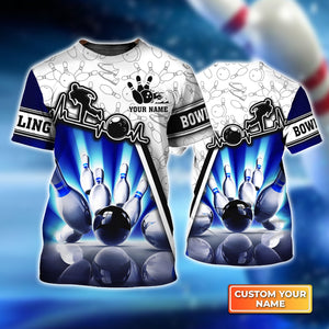 Blue Neonlights Bowling Personalized Name 3D Tshirt