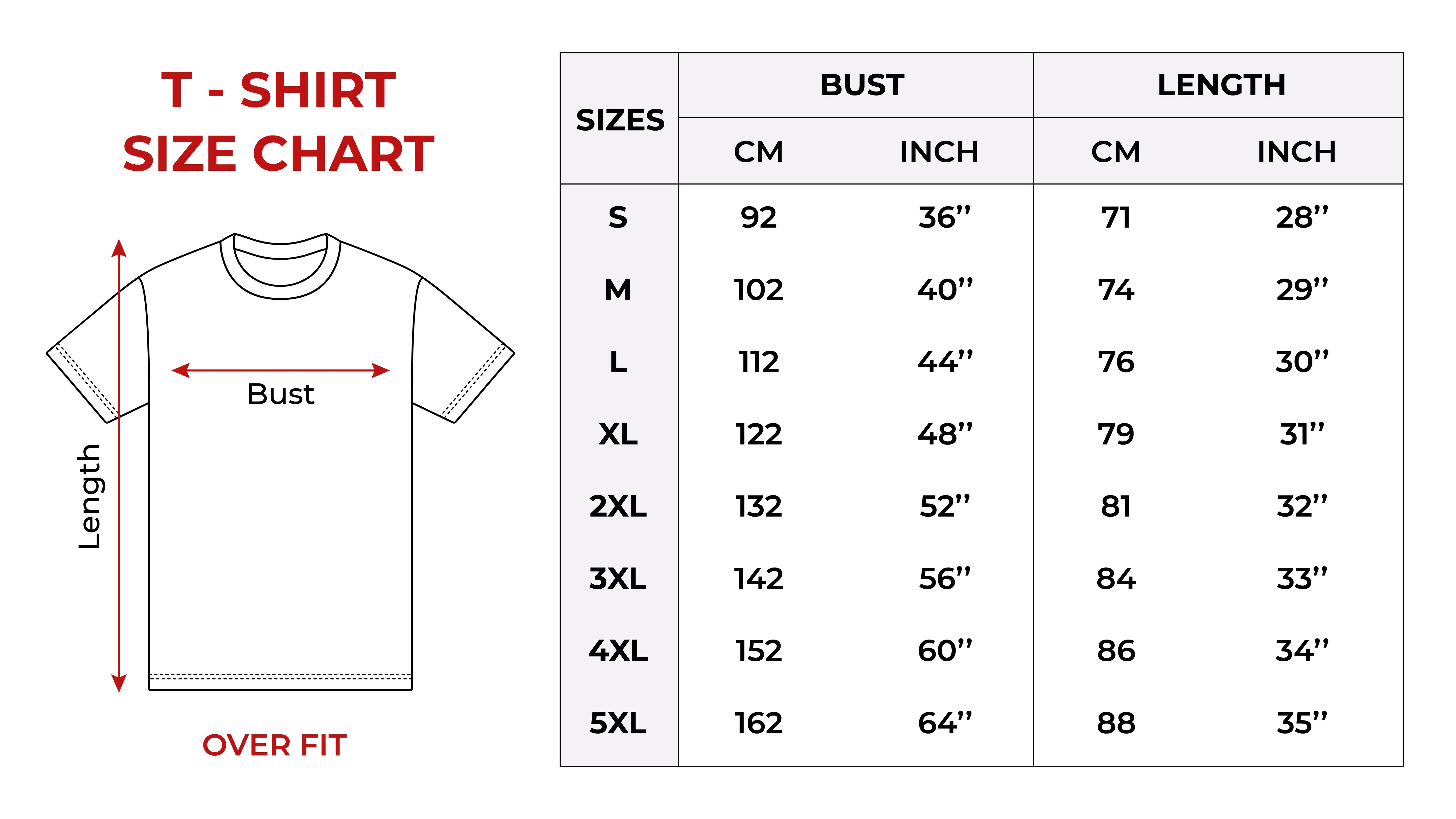 | Size | Chest (Front Only) | Body Length |