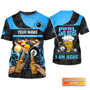 Blue Ver Eight-Ball Pool And Beer That's Why I Am Here Personalized Name 3D Tshirt Gift Billiard Players