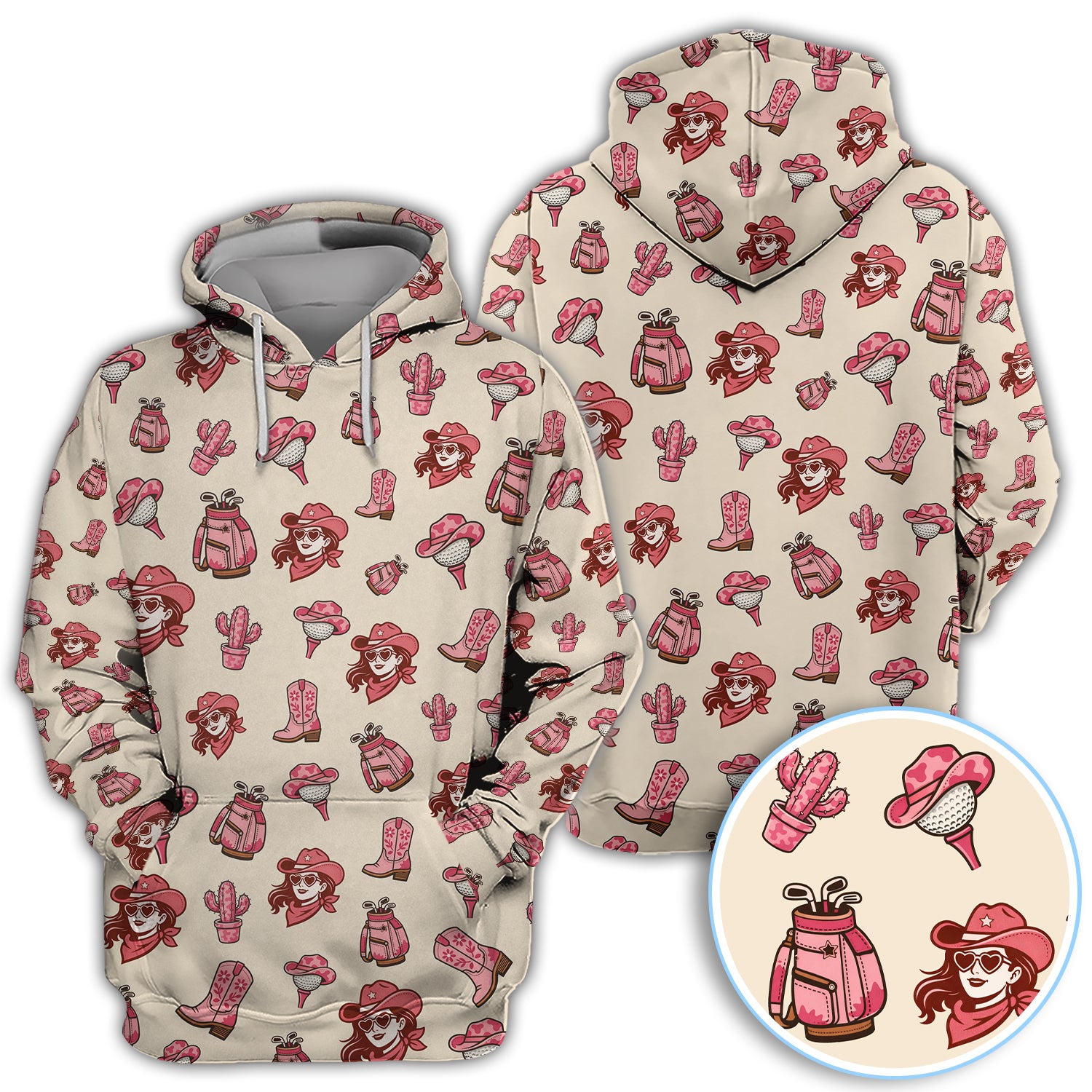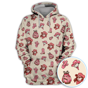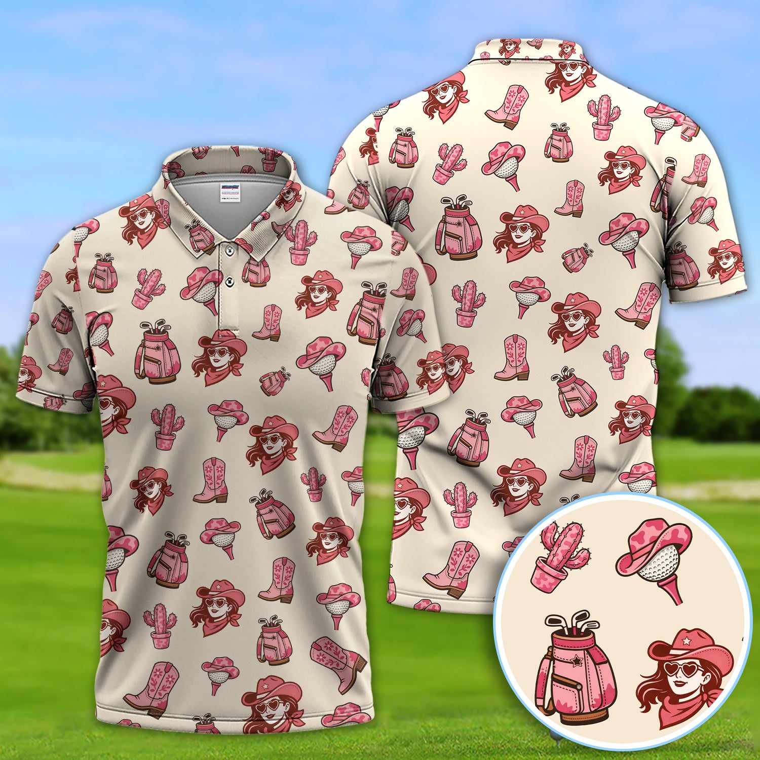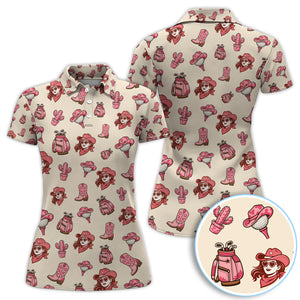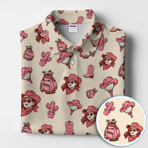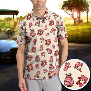 Pink Cowgirl Western Golf Shirt, Boho Cowgirl Hat Boots Cactus Pattern Shirt For Men, Golf Gift For Golfer