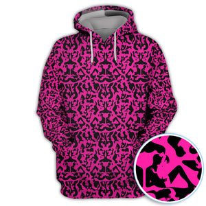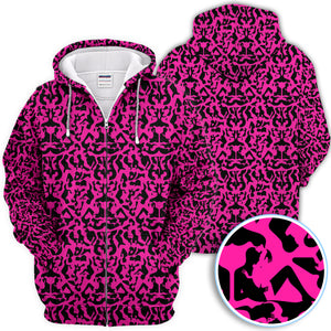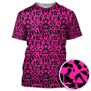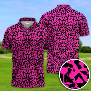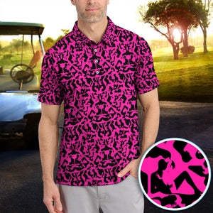 Bold Silhouette Pattern Polos, Hot Pink Abstract Golf Shirt, Golf Gift For Golfer