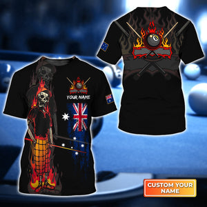 Bones 8 Ball Australia Flag Billiards Personalized Name 3D Tshirt Gift For Billiard Players