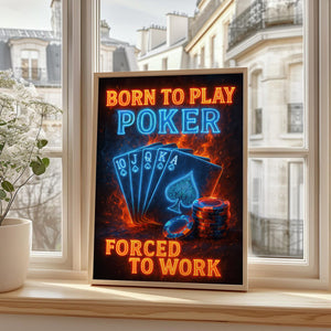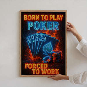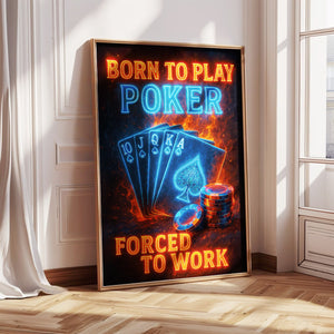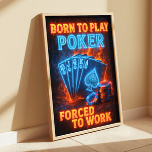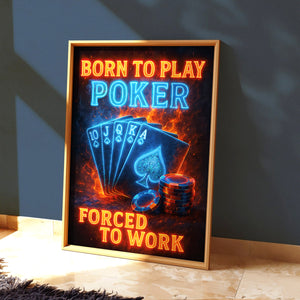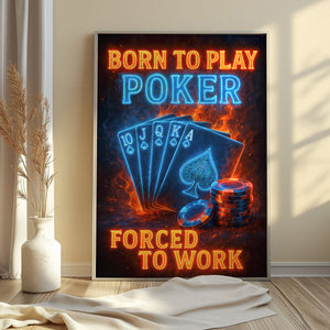 Born to Play Poker Forced To Work Poster, Poker Poster For Poker Player, Poker Canvas Room Decor