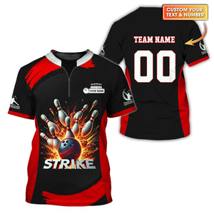 Bowling Strike Boomer Black & Red T Shirt, Custom Name Superb Bowling Shirts, Bowling Presents