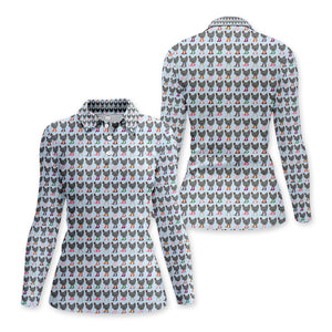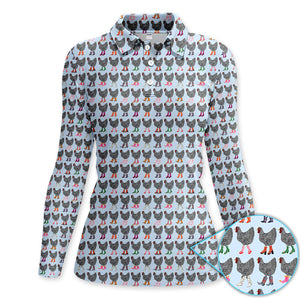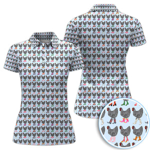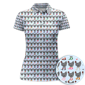Chicken Wearing Cowboy Boots Pattern Polo Shirt, Cute Farm Print Golf Shirt For Women, Golf Gift For Golfer