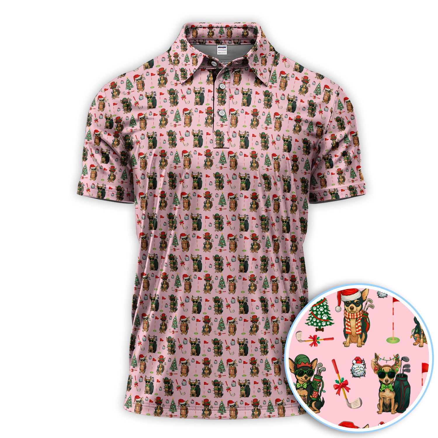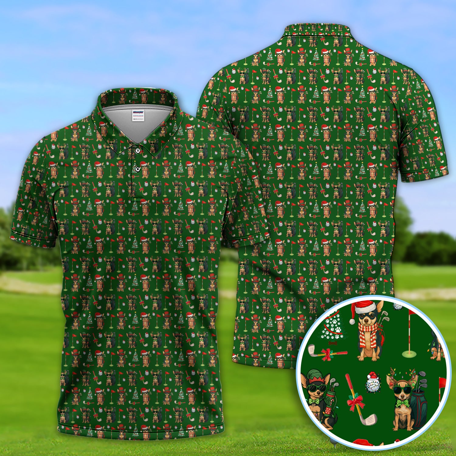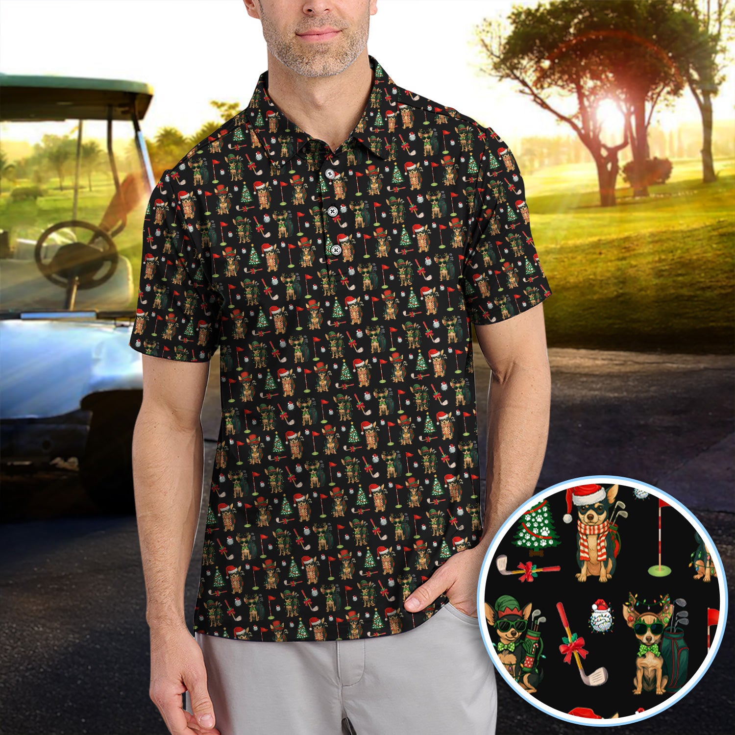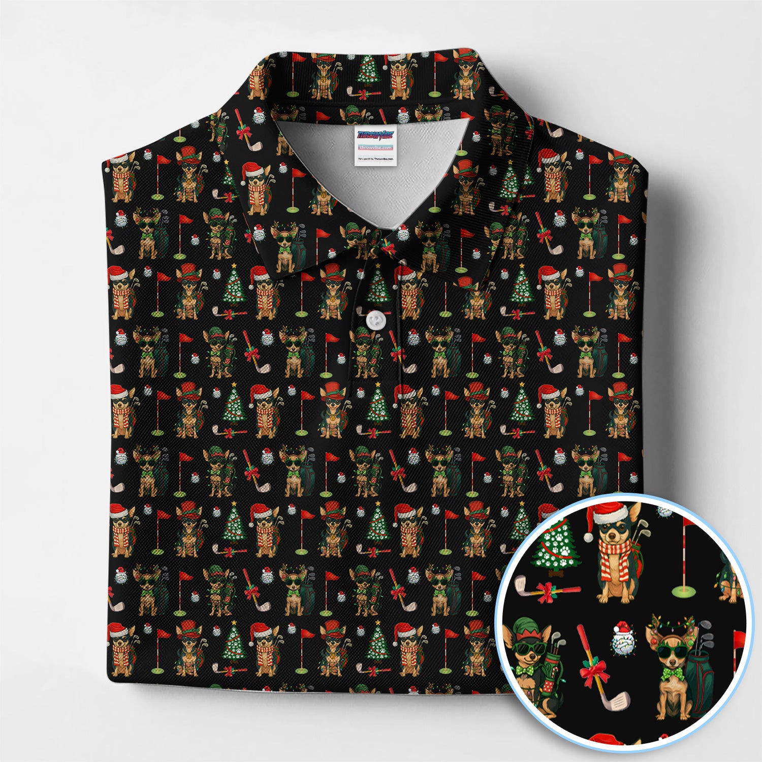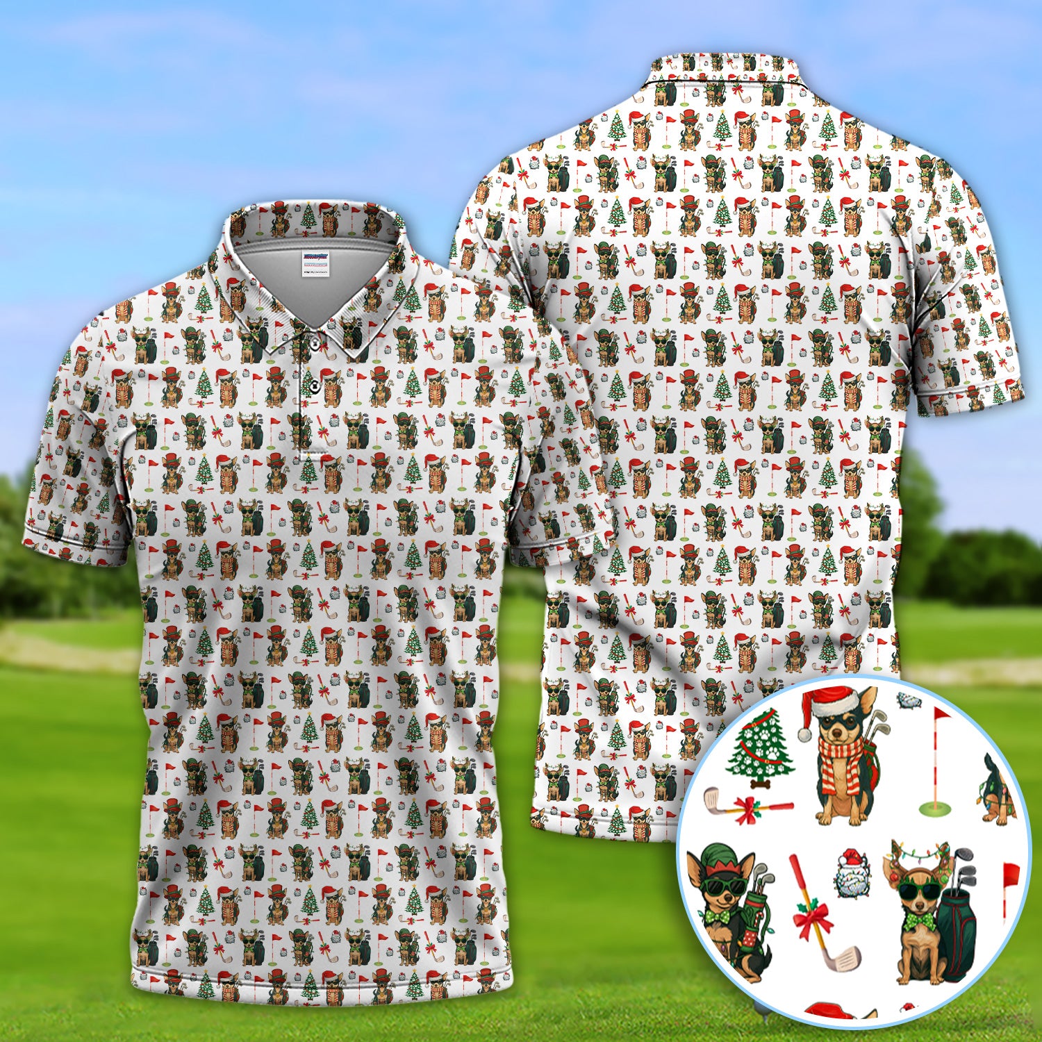 Christmas Chihuahua Golf Polos, Funny Dog Golfer Shirt, Xmas Golf Gift For Golfer