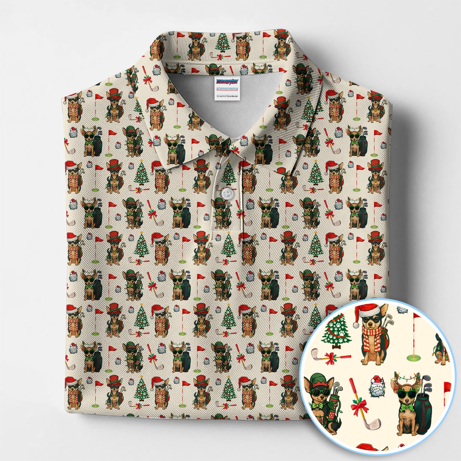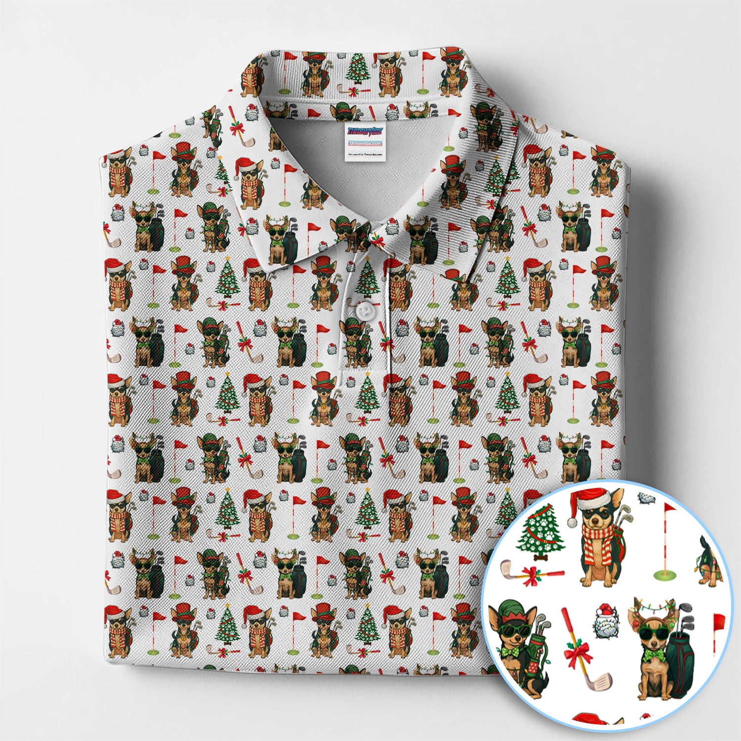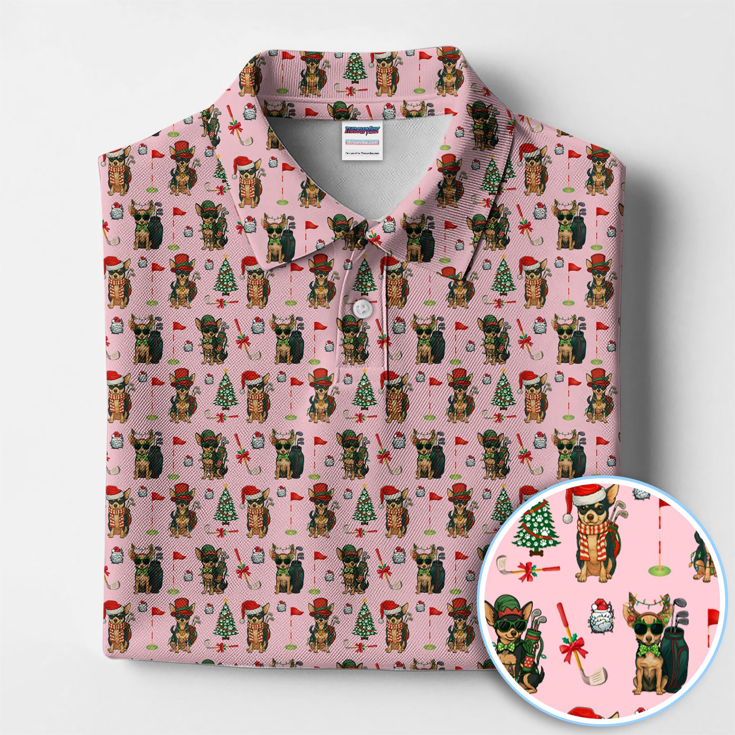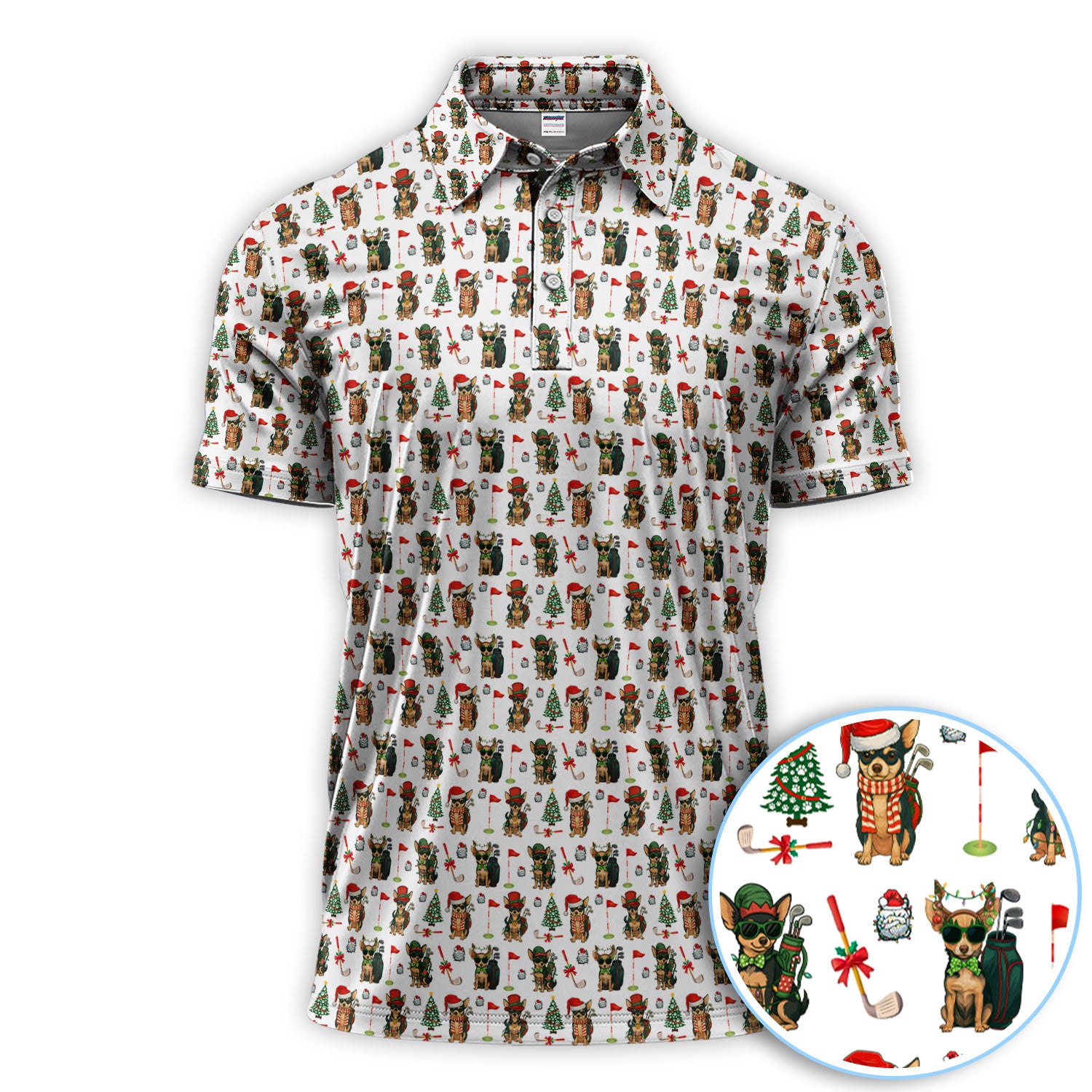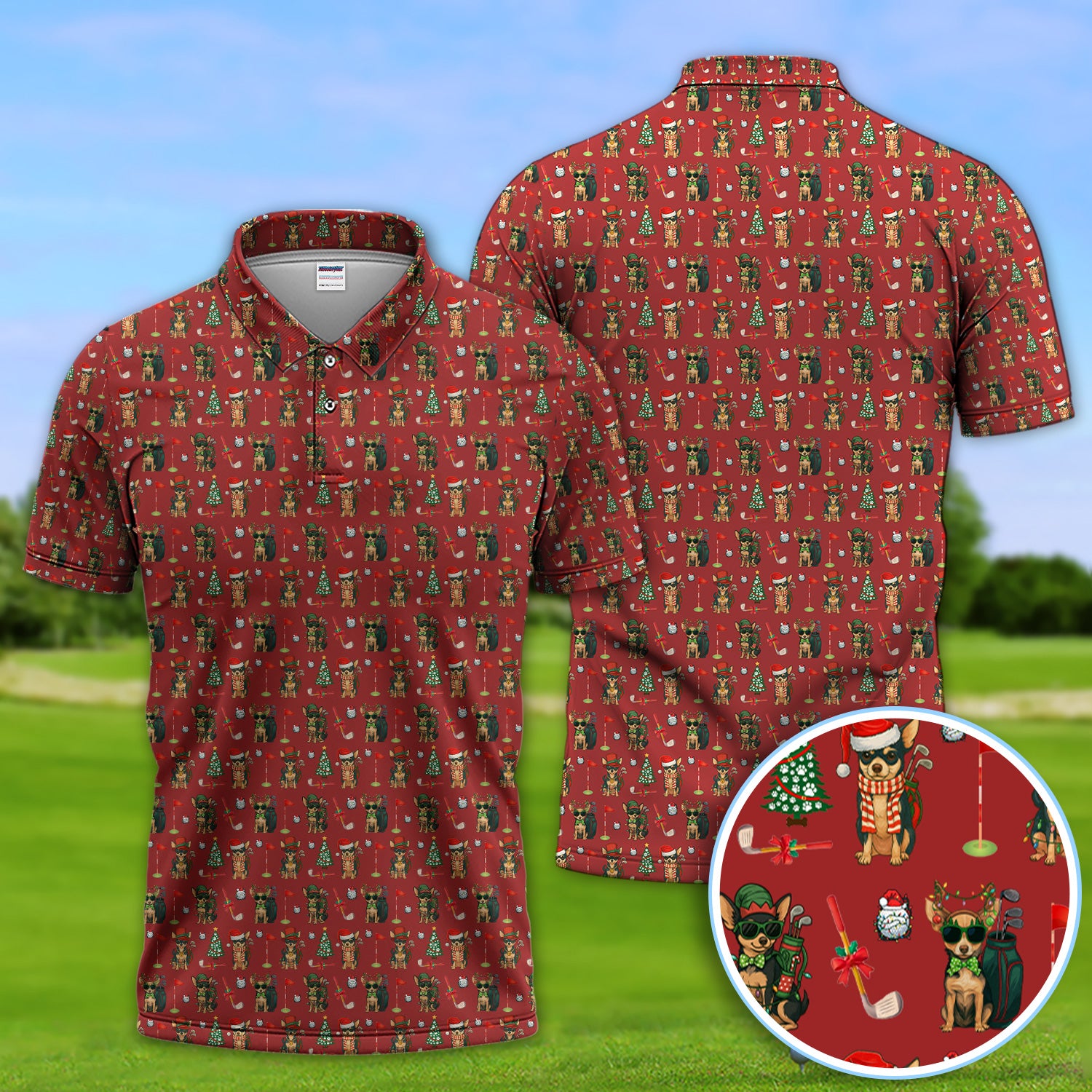 Christmas Chihuahua Golf Polos, Funny Dog Golfer Shirt, Xmas Golf Gift For Golfer
