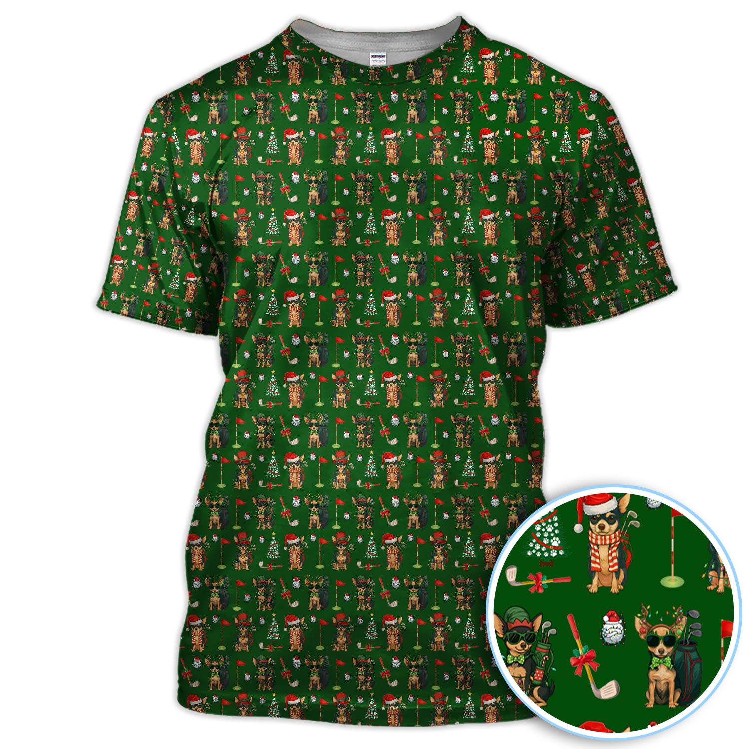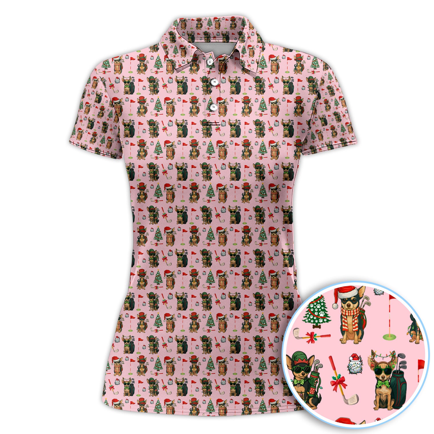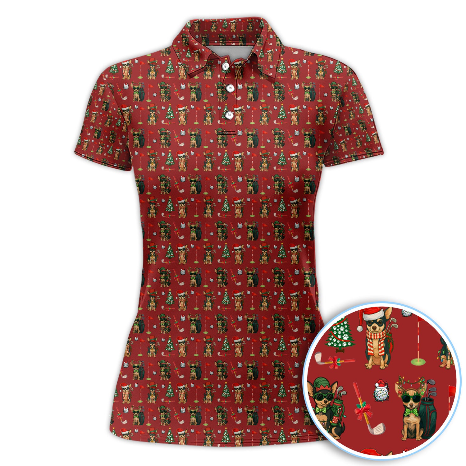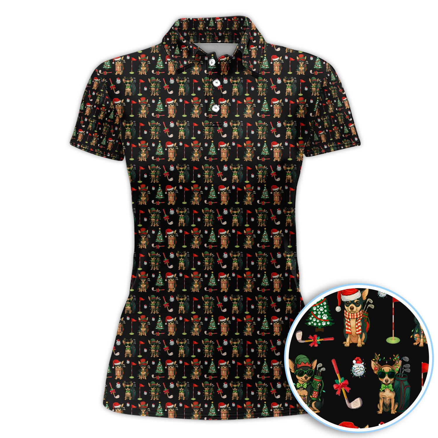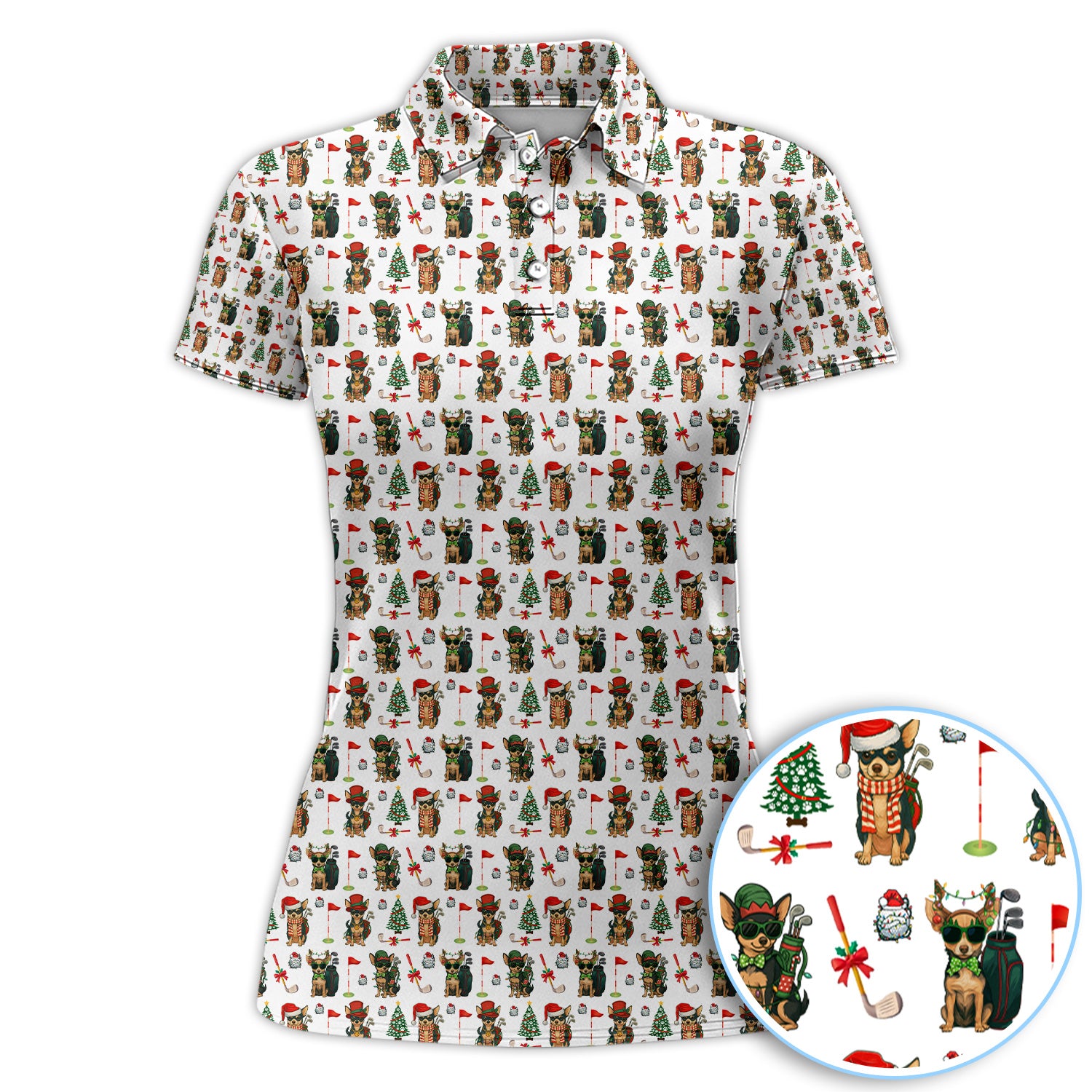 Christmas Chihuahua Golf Polos, Funny Dog Golfer Shirt, Xmas Golf Gift For Golfer