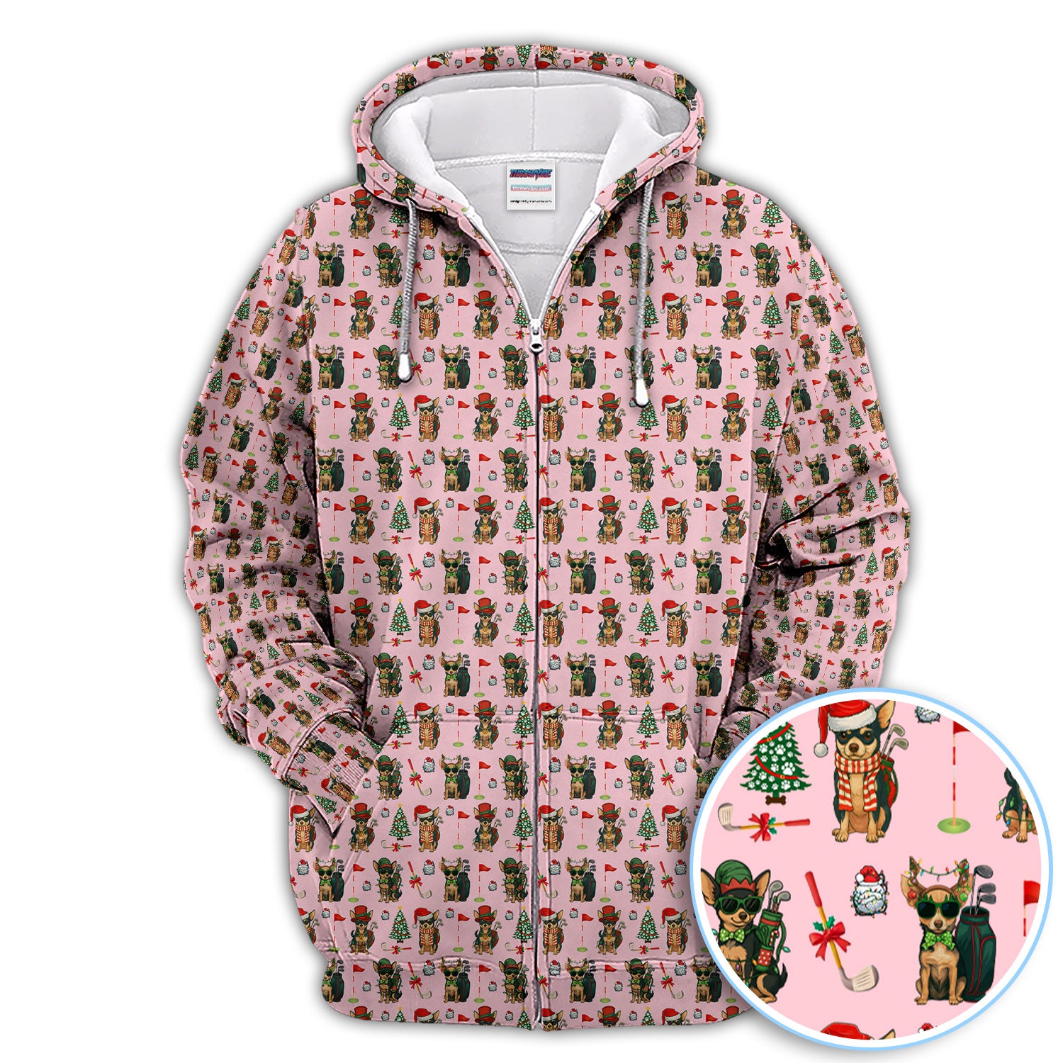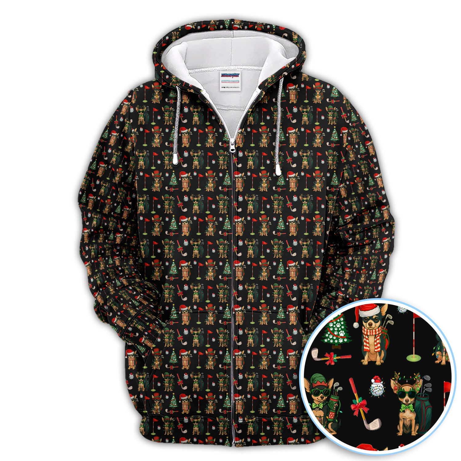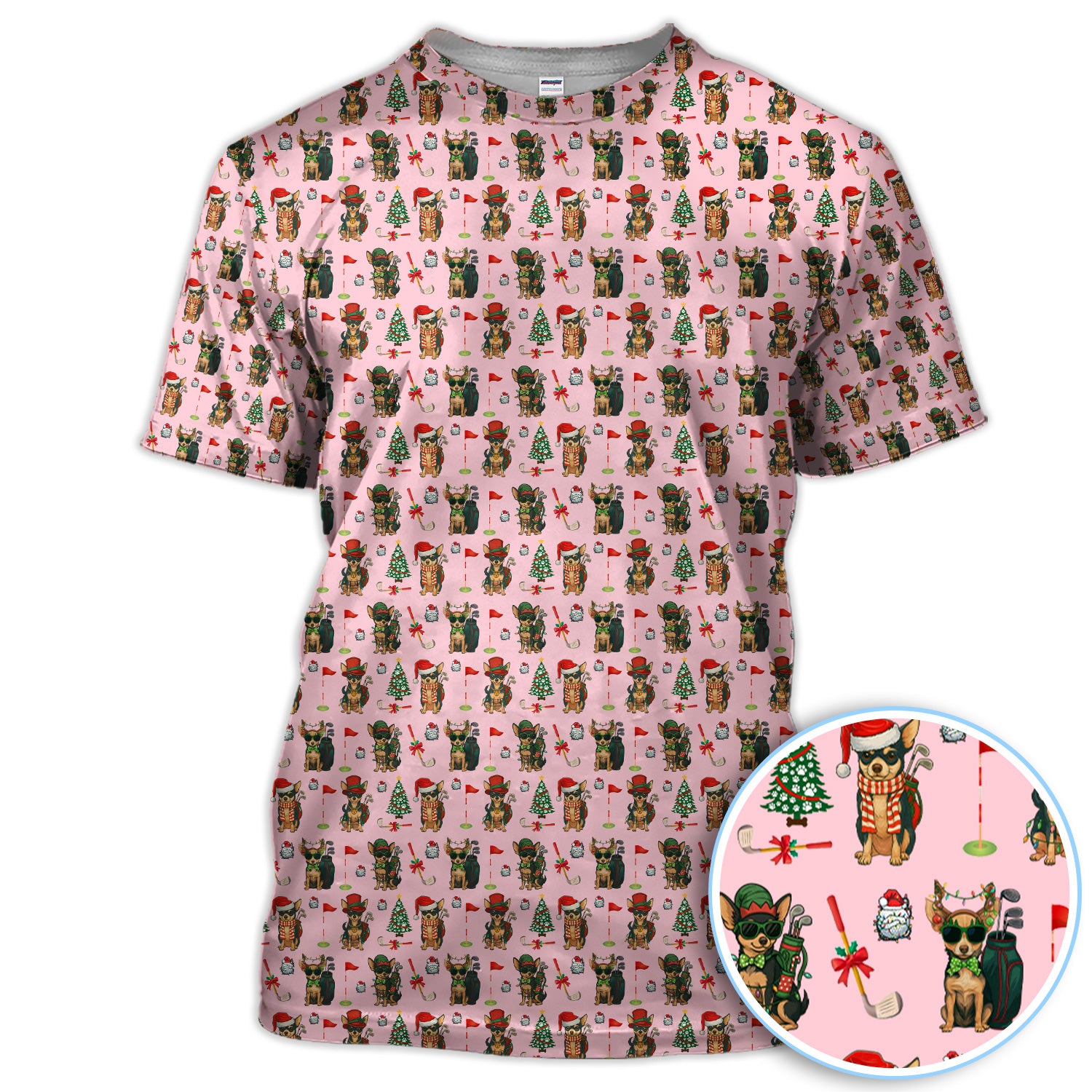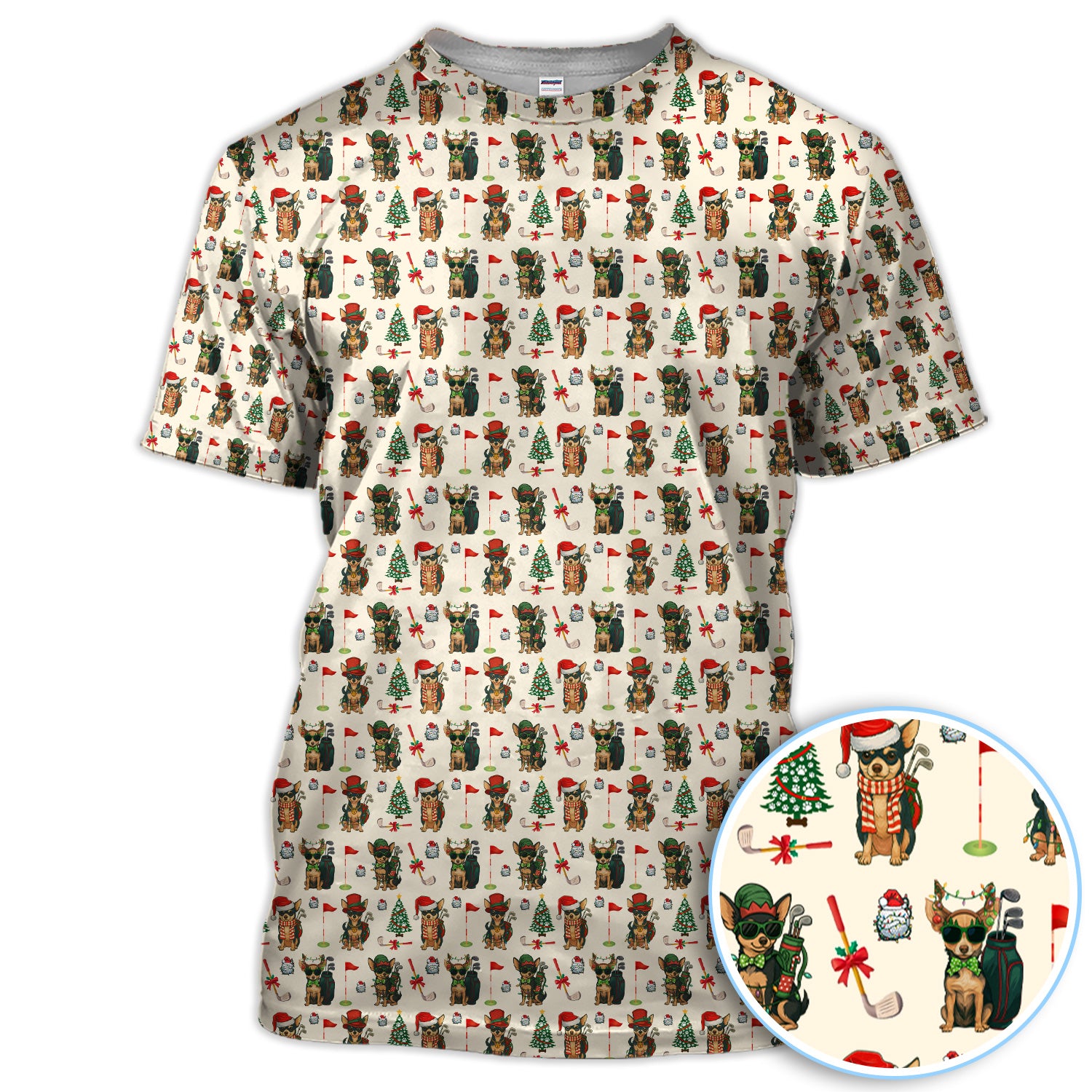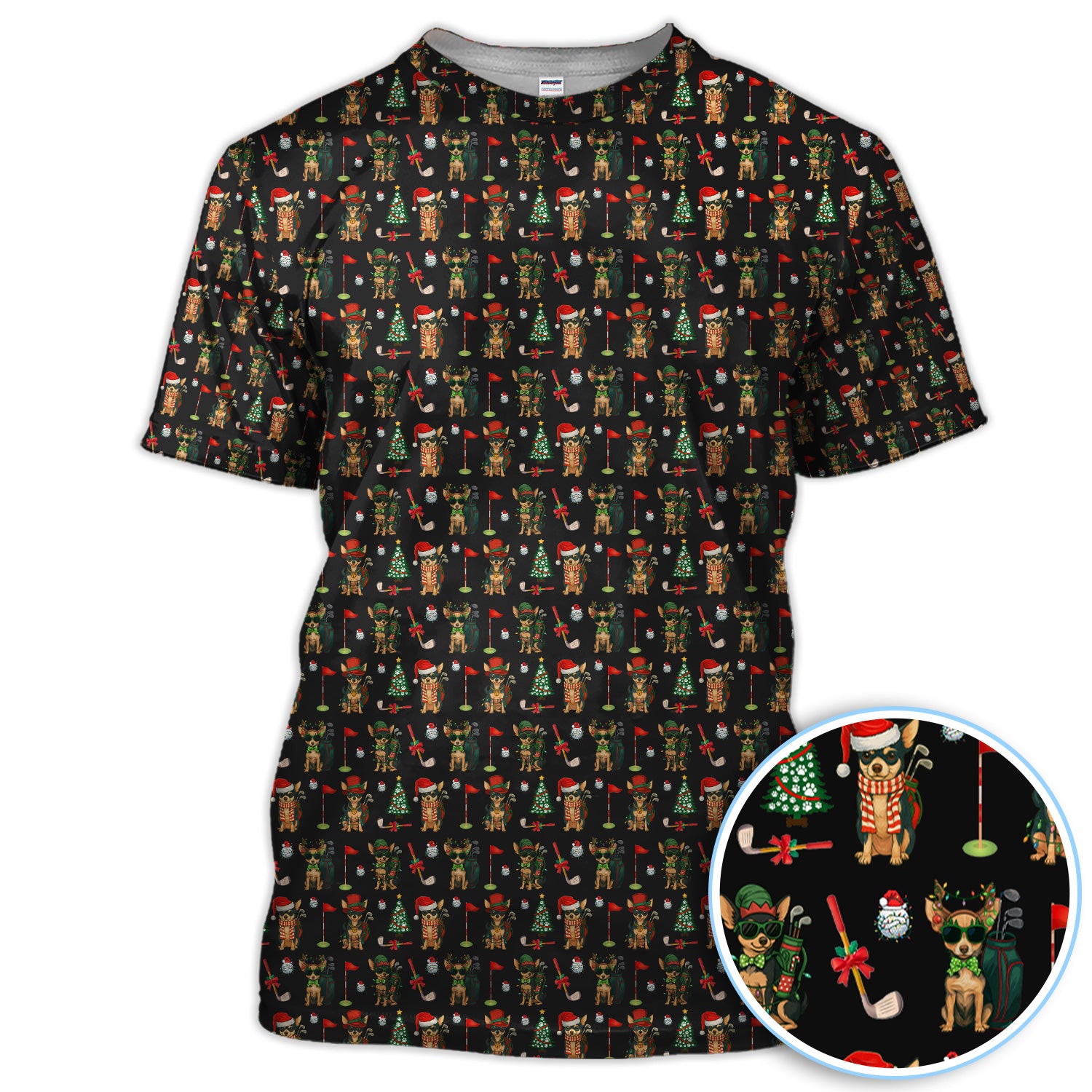 Christmas Chihuahua Golf Polos, Funny Dog Golfer Shirt, Xmas Golf Gift For Golfer