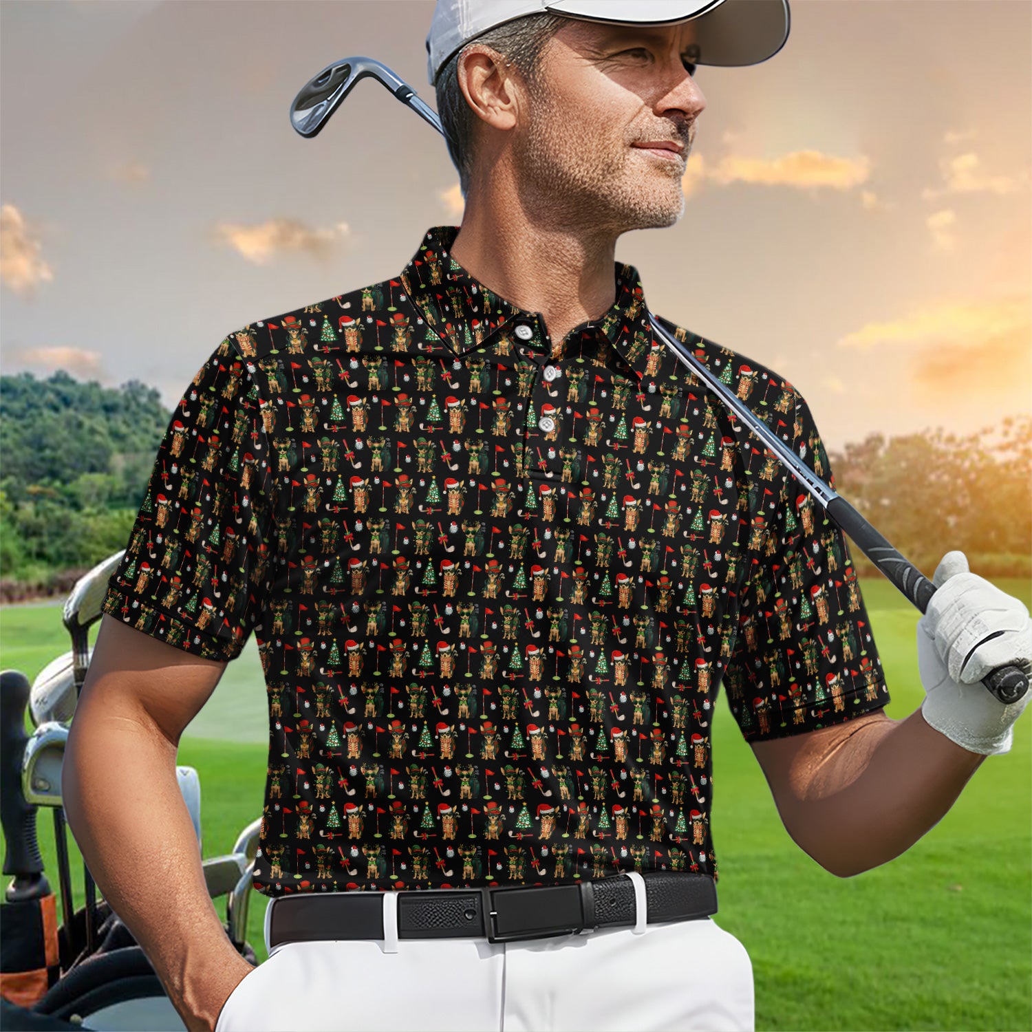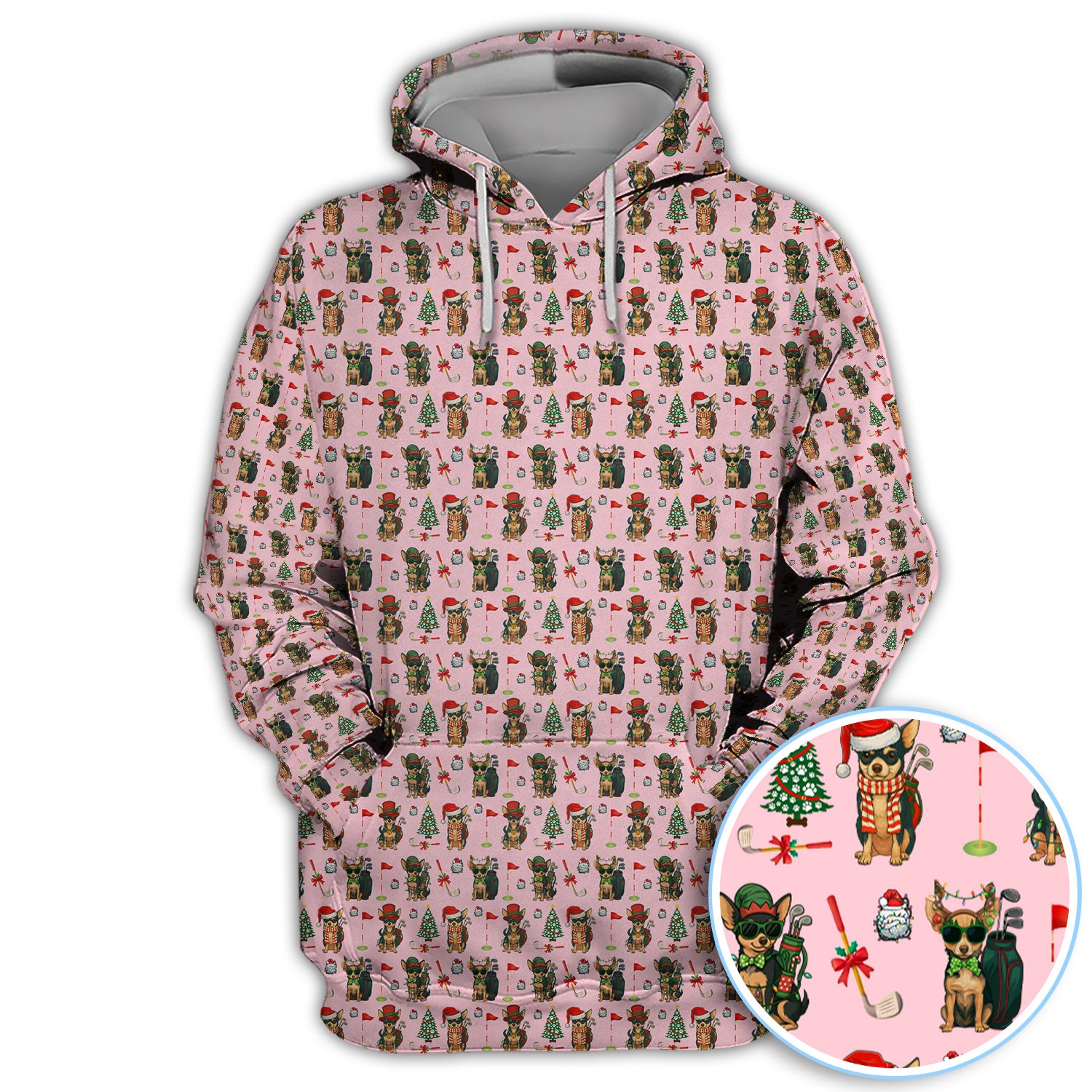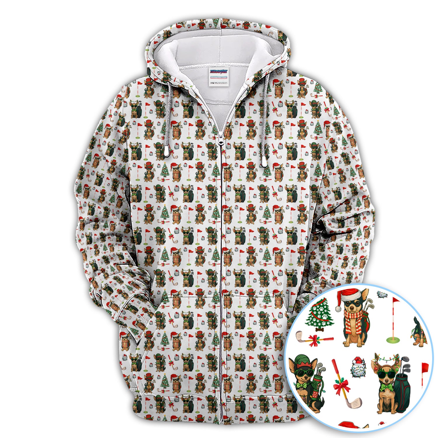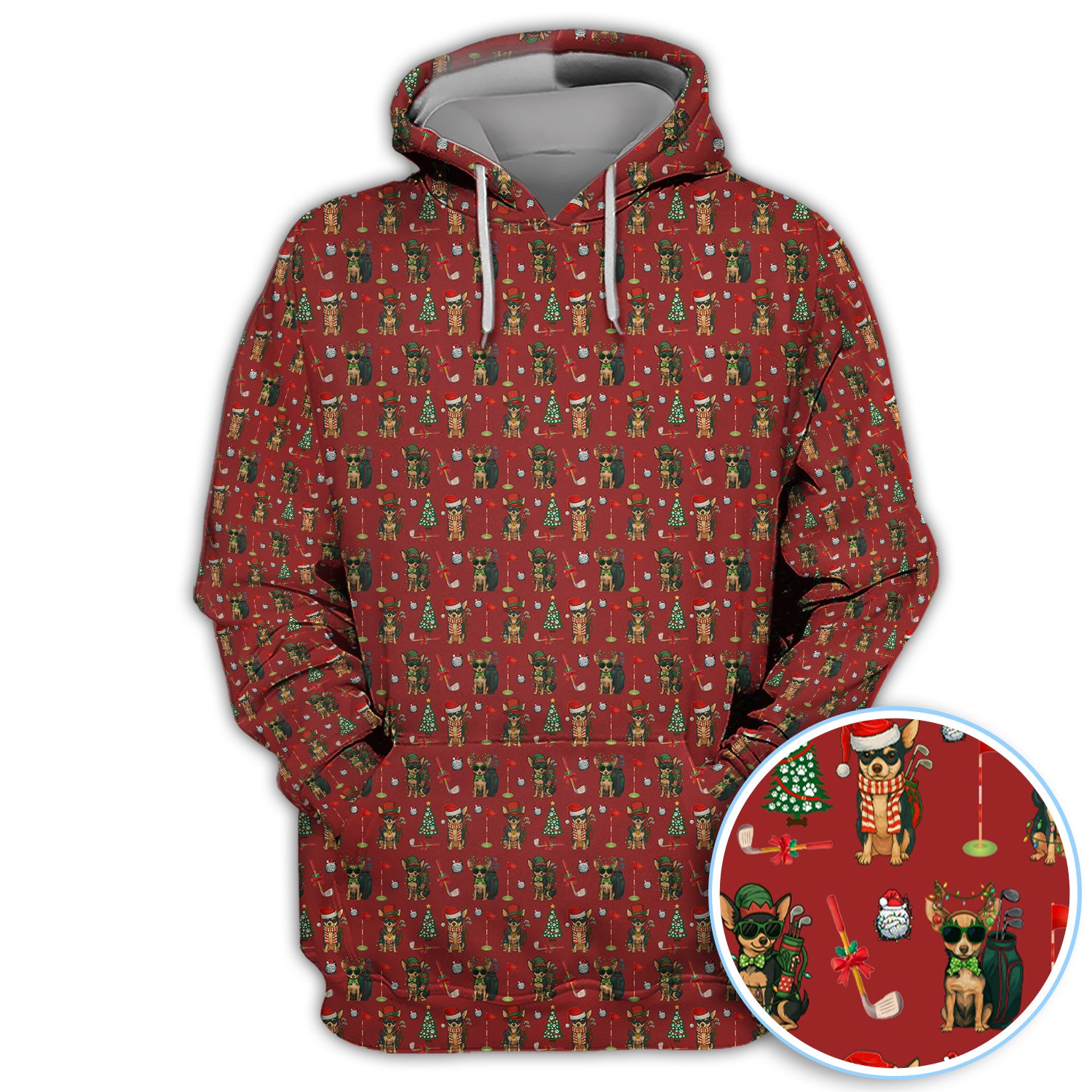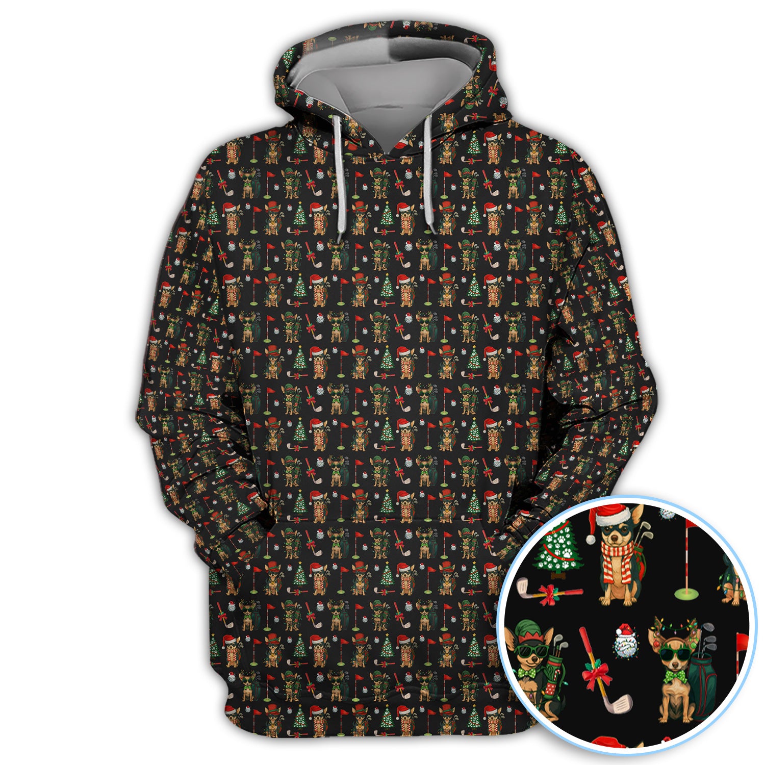 Christmas Chihuahua Golf Polos, Funny Dog Golfer Shirt, Xmas Golf Gift For Golfer