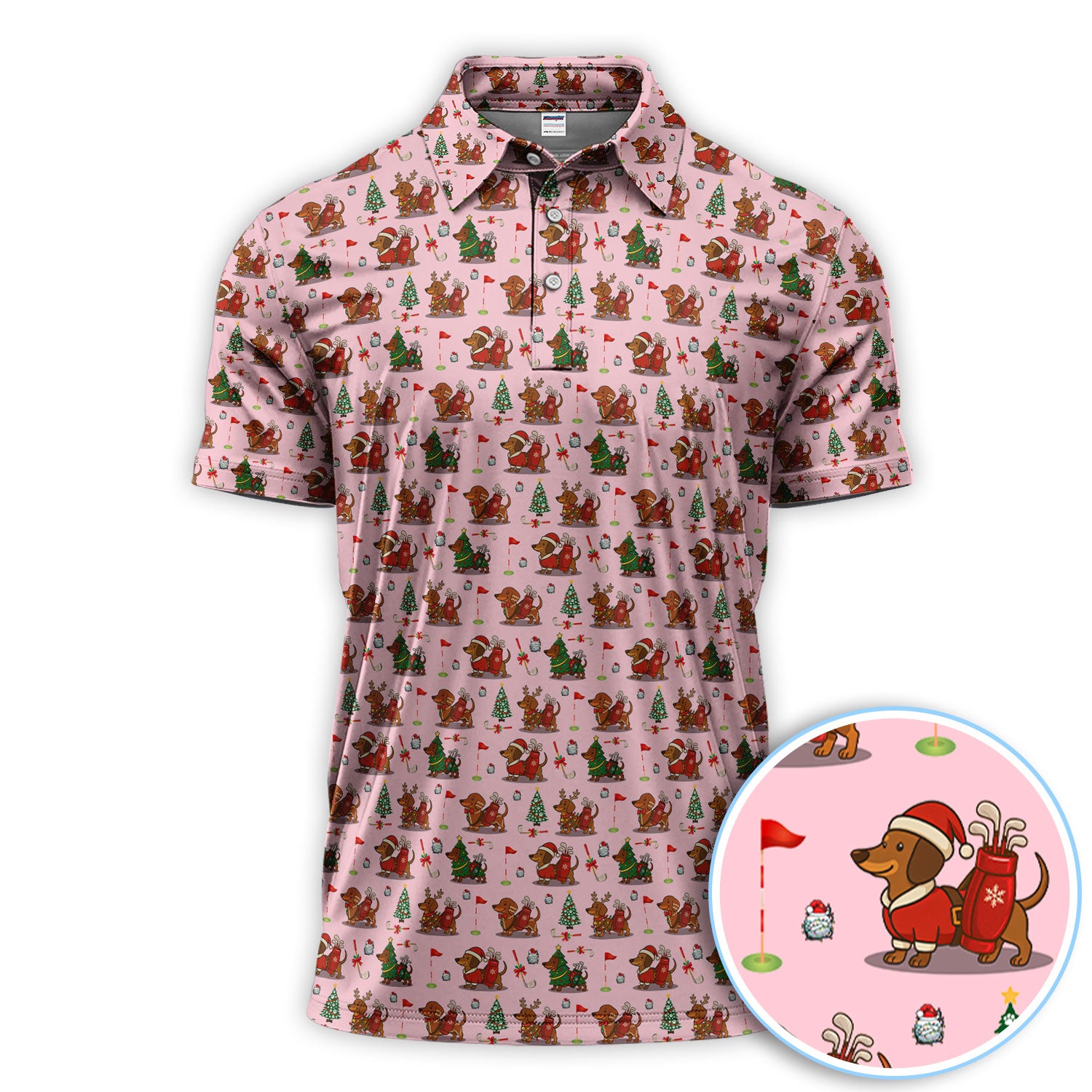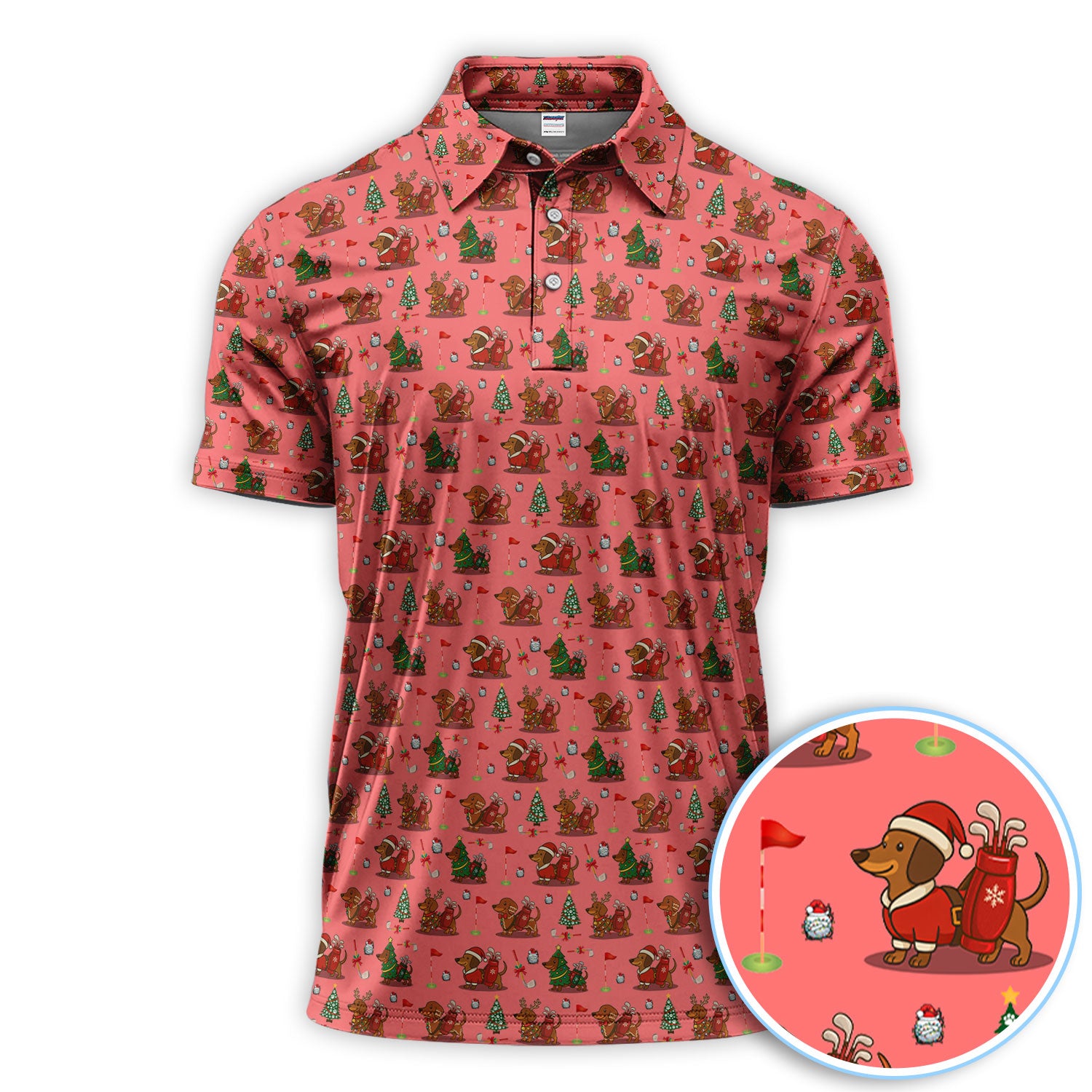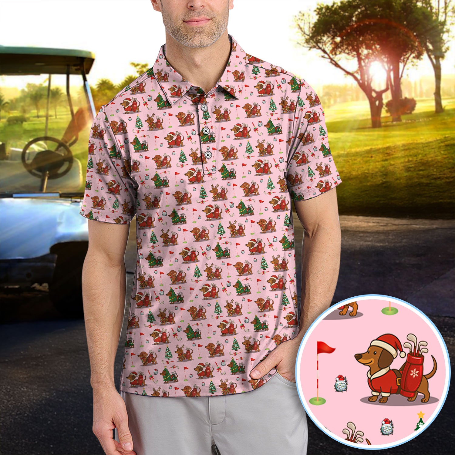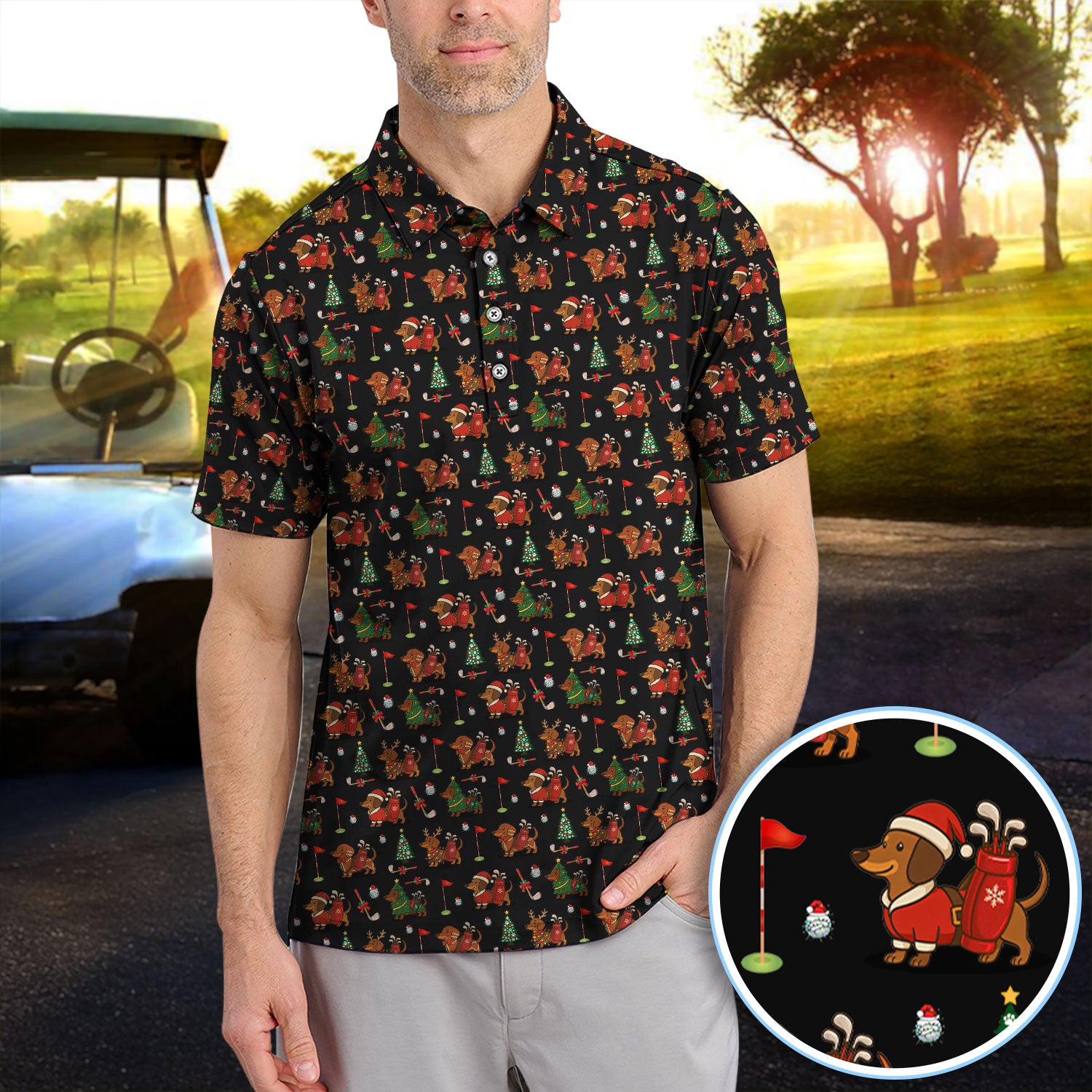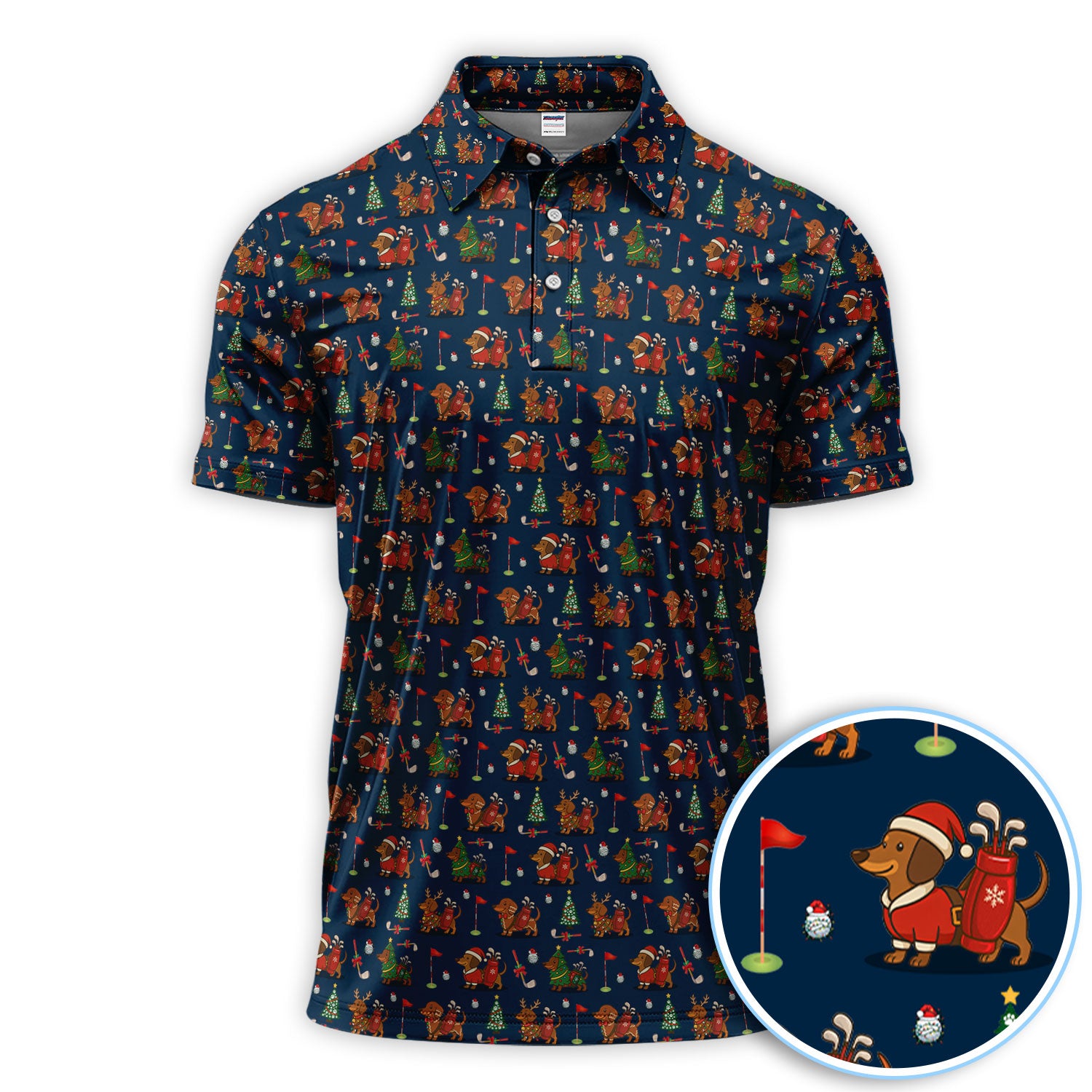 Christmas Dachshund Golf Polos, Cute Holiday Dog Golfer Shirt, Xmas Golf Gift For Golfer