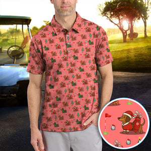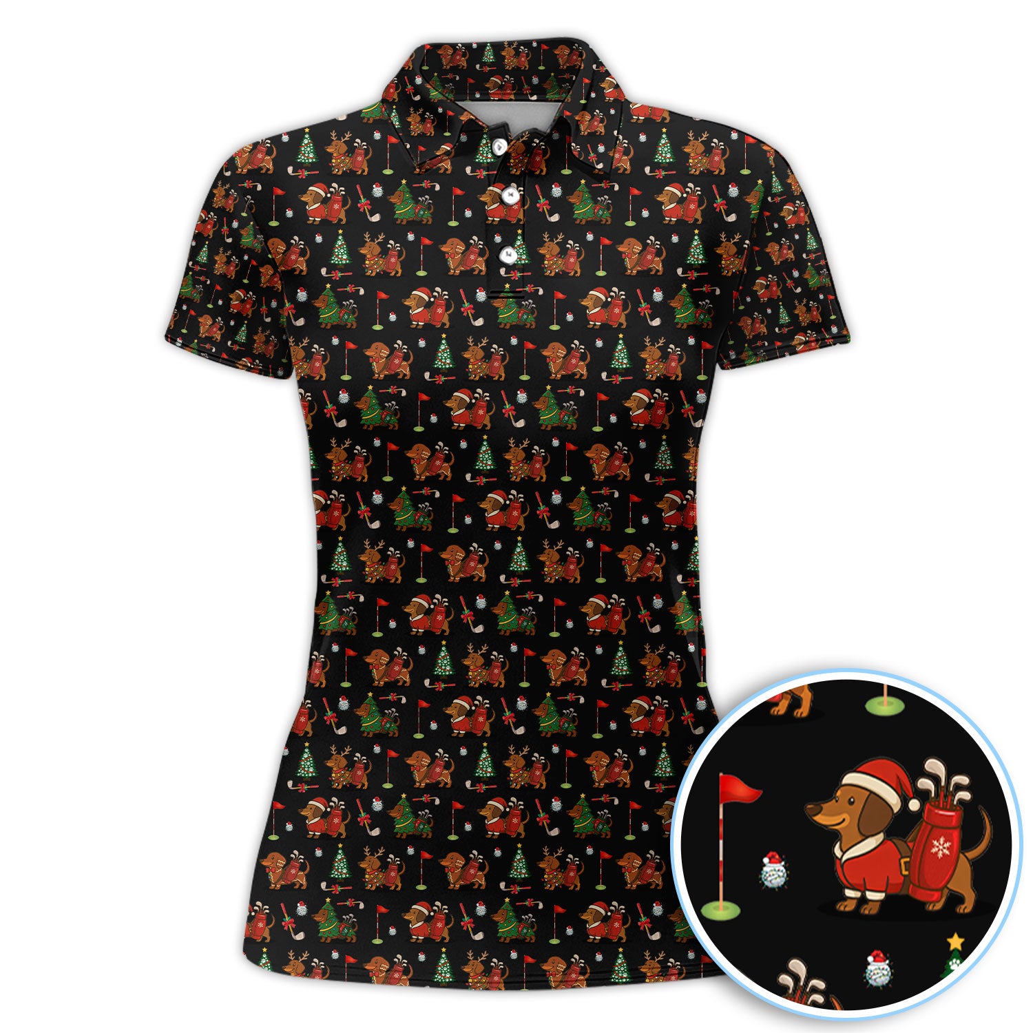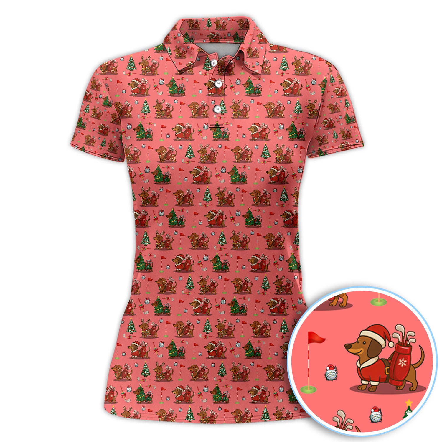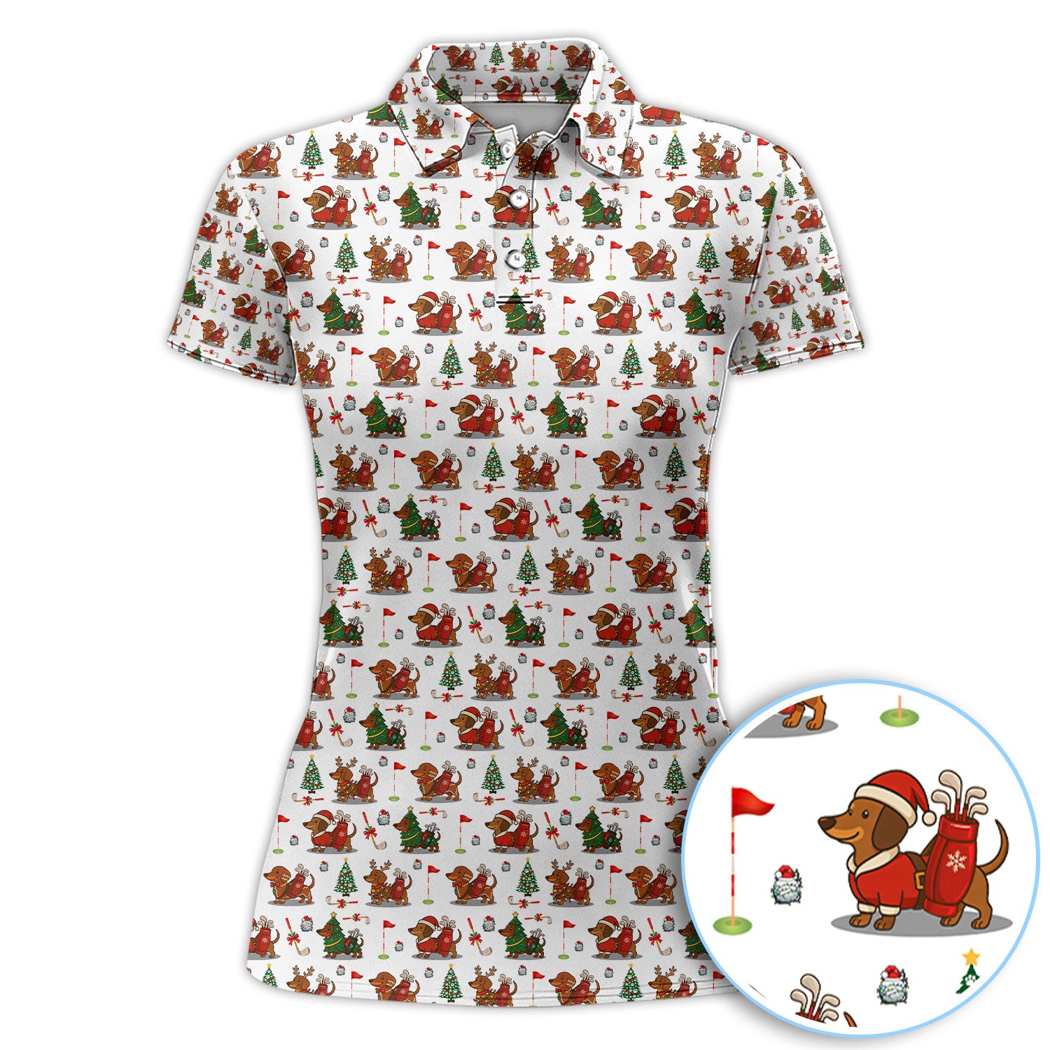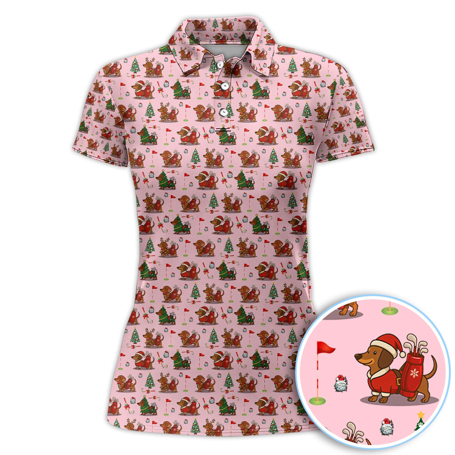 Christmas Dachshund Golf Polos, Cute Holiday Dog Golfer Shirt, Xmas Golf Gift For Golfer