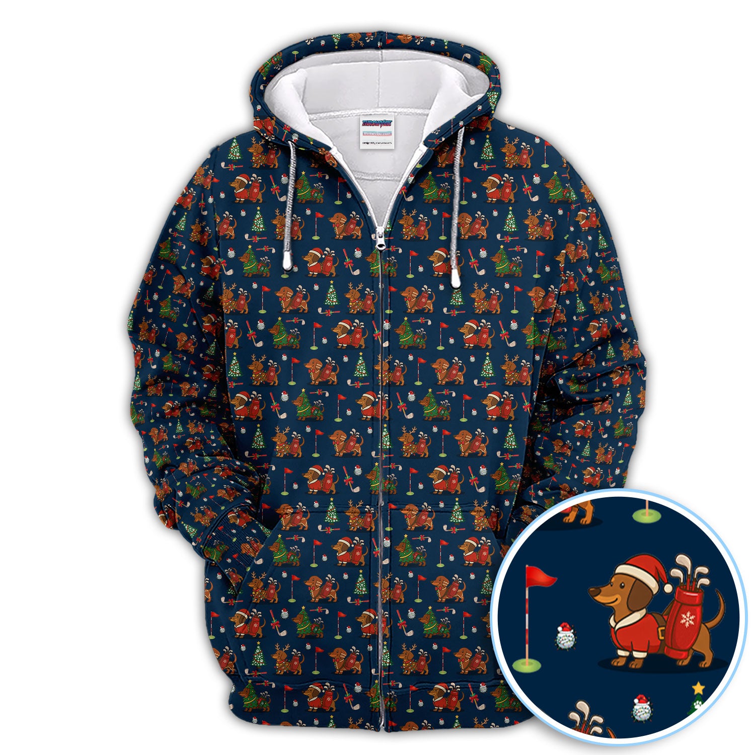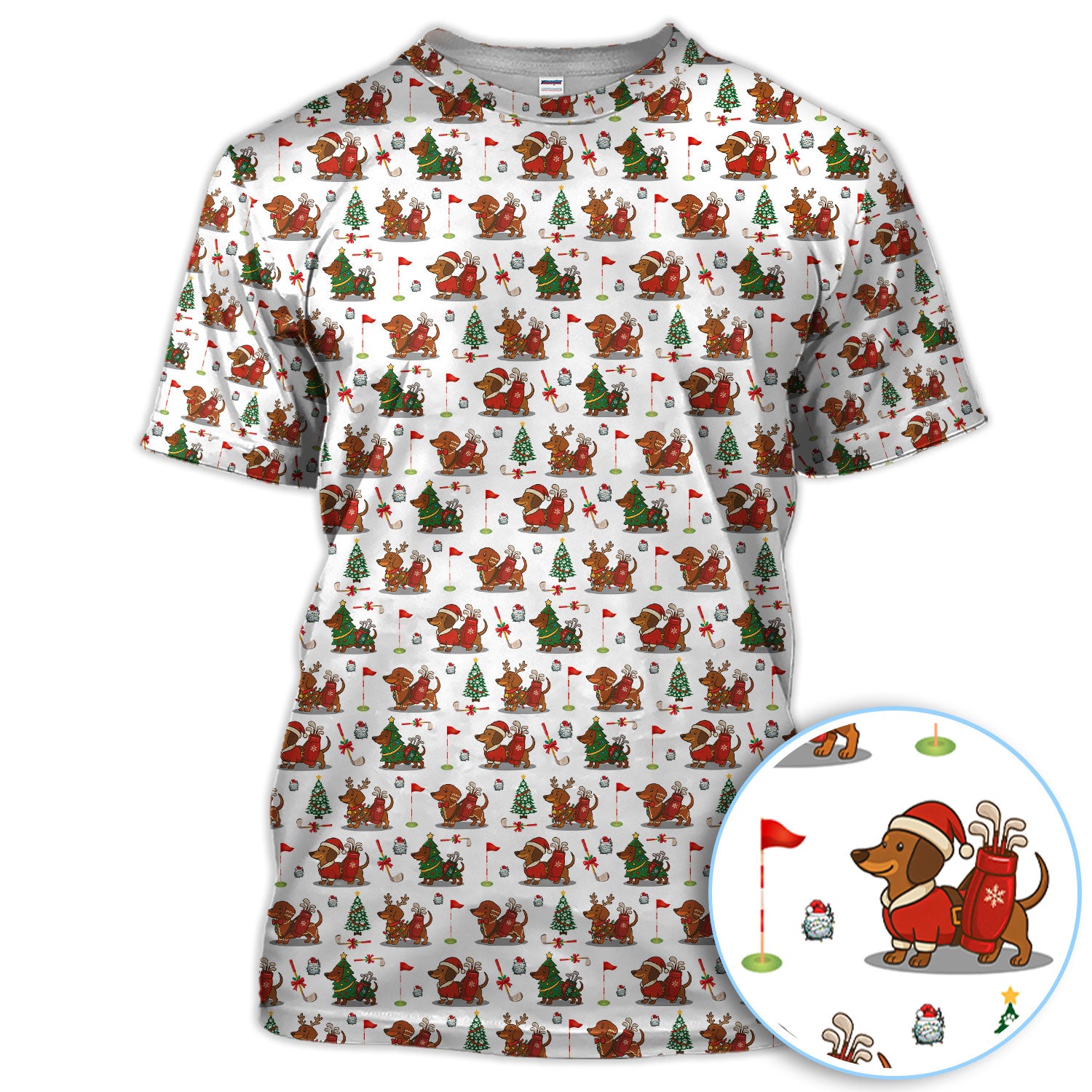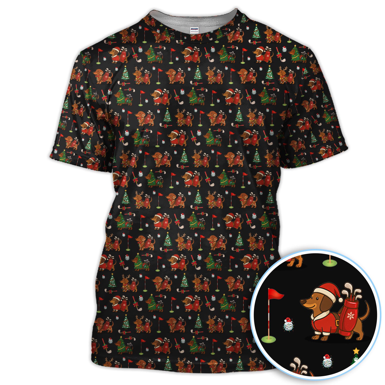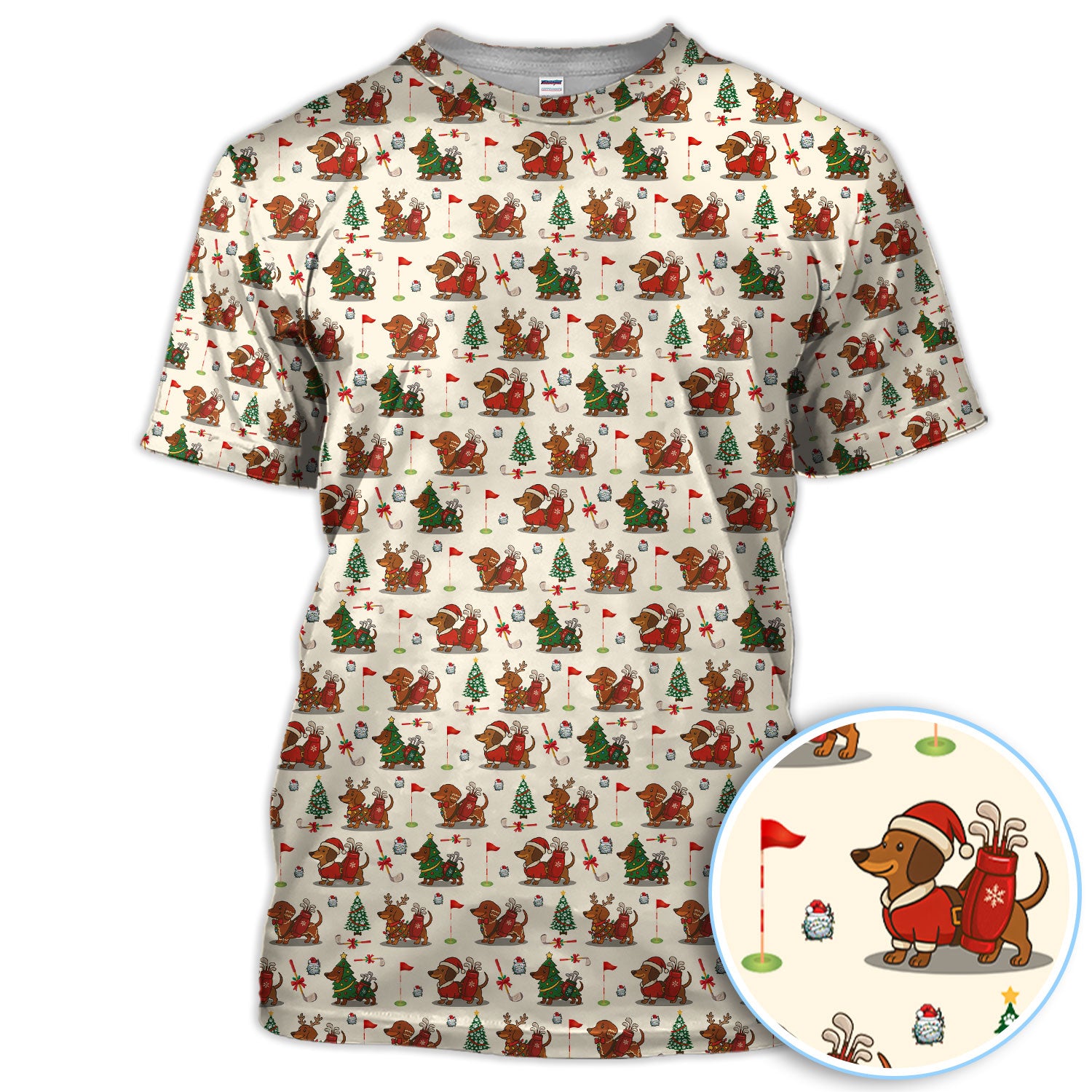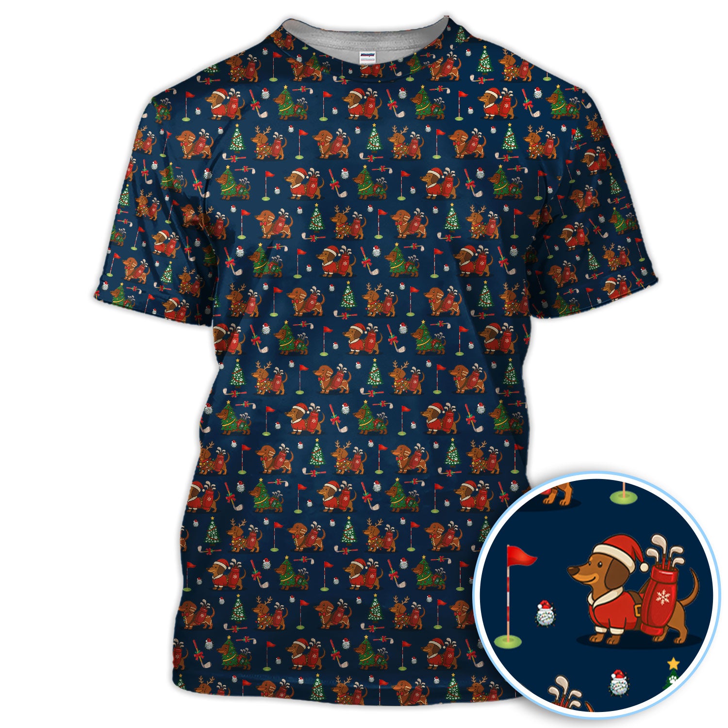 Christmas Dachshund Golf Polos, Cute Holiday Dog Golfer Shirt, Xmas Golf Gift For Golfer