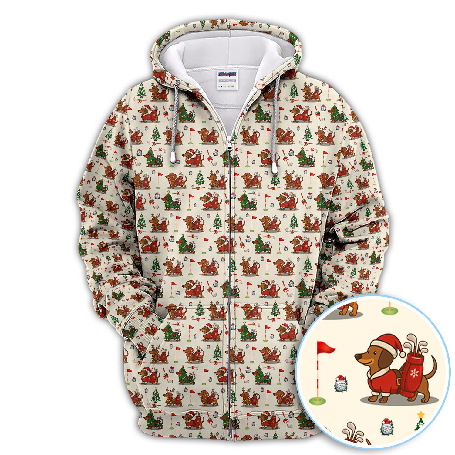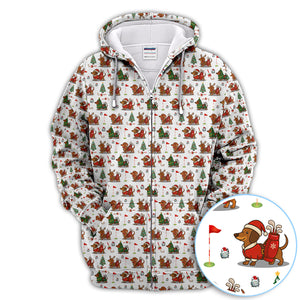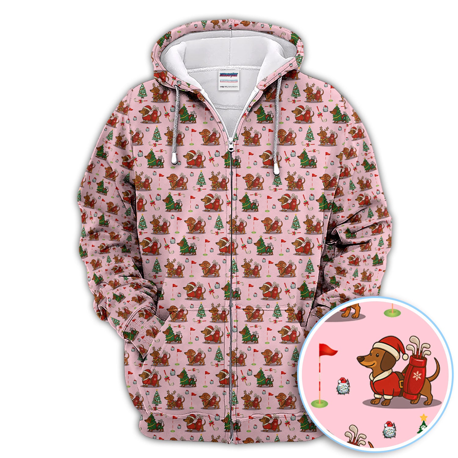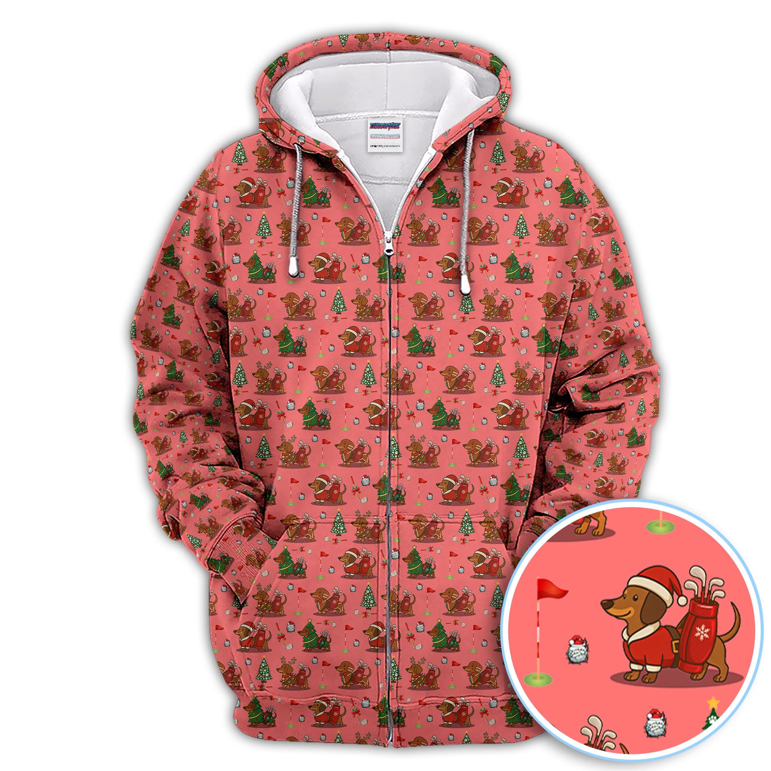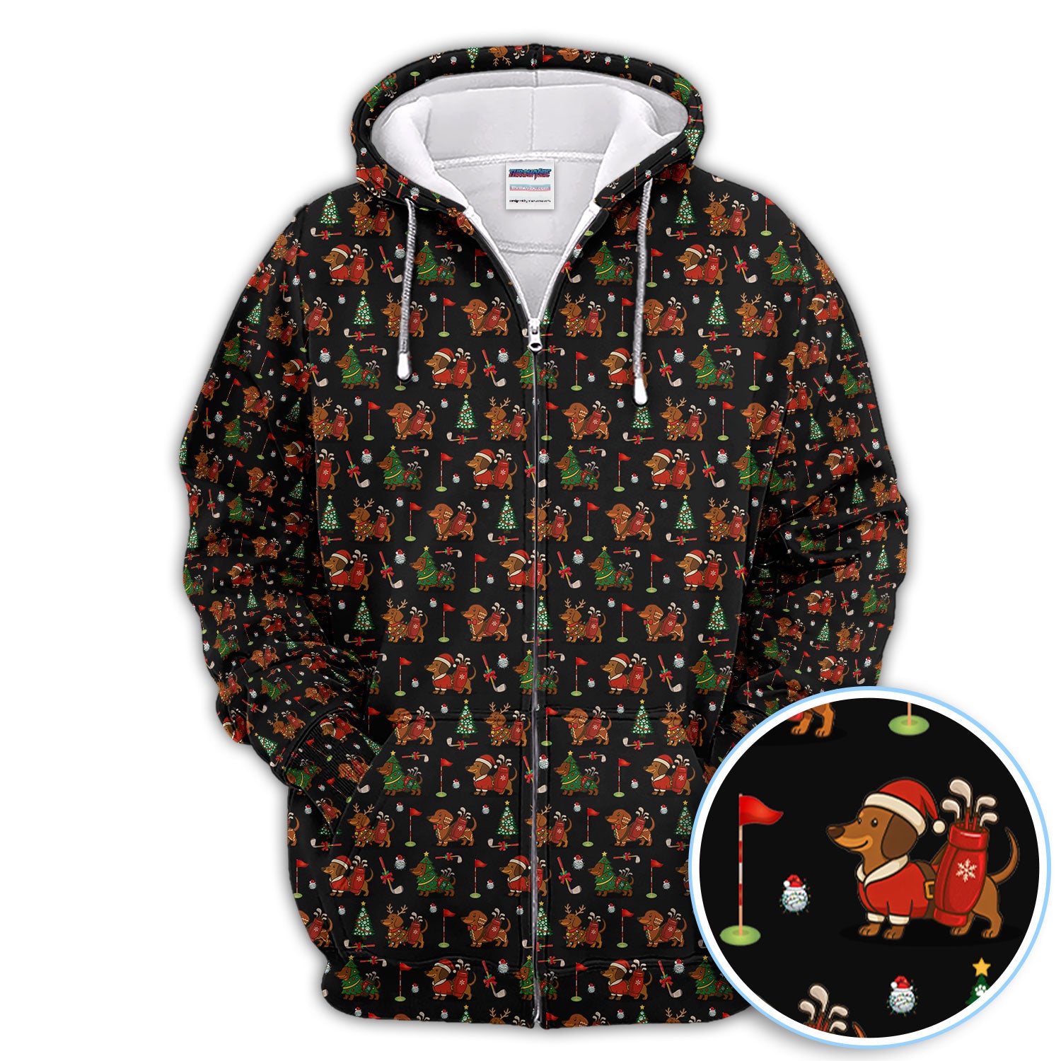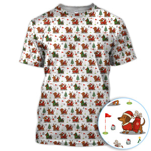 Christmas Dachshund Golf Polos, Cute Holiday Dog Golfer Shirt, Xmas Golf Gift For Golfer