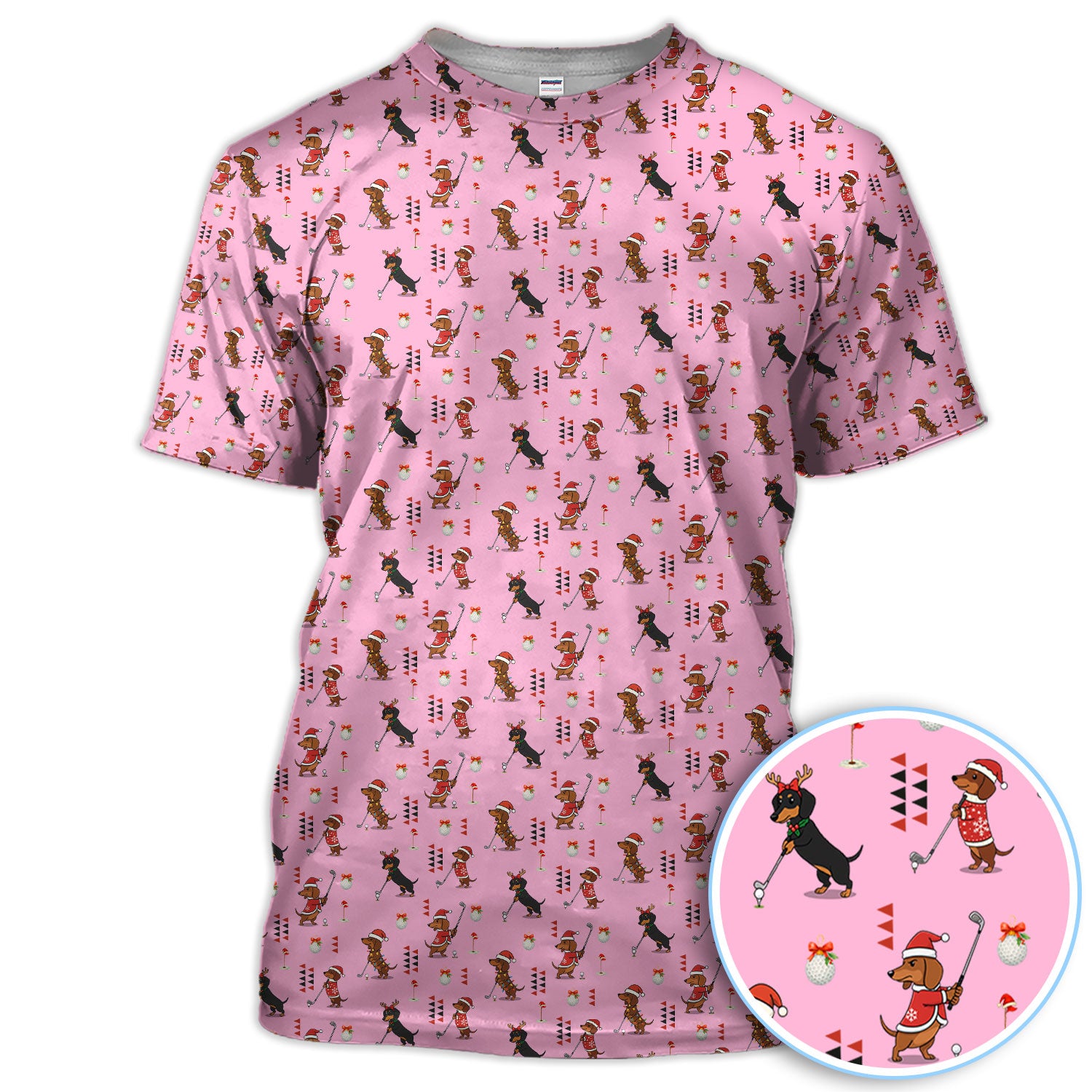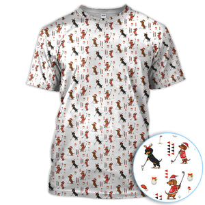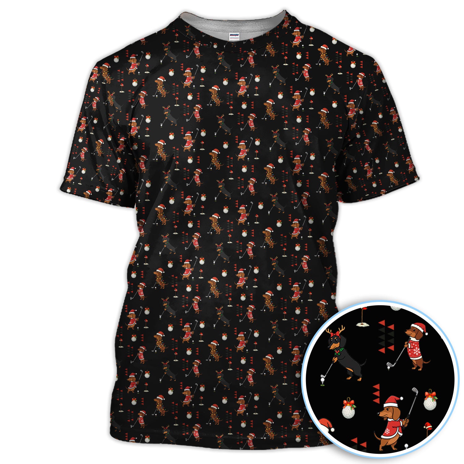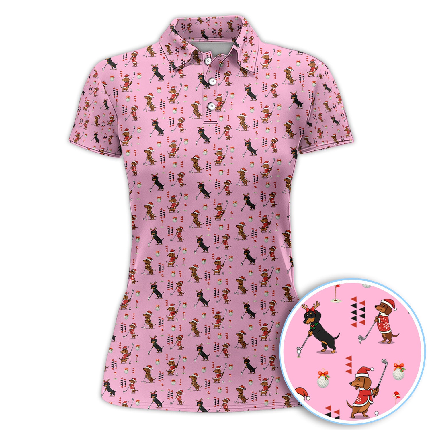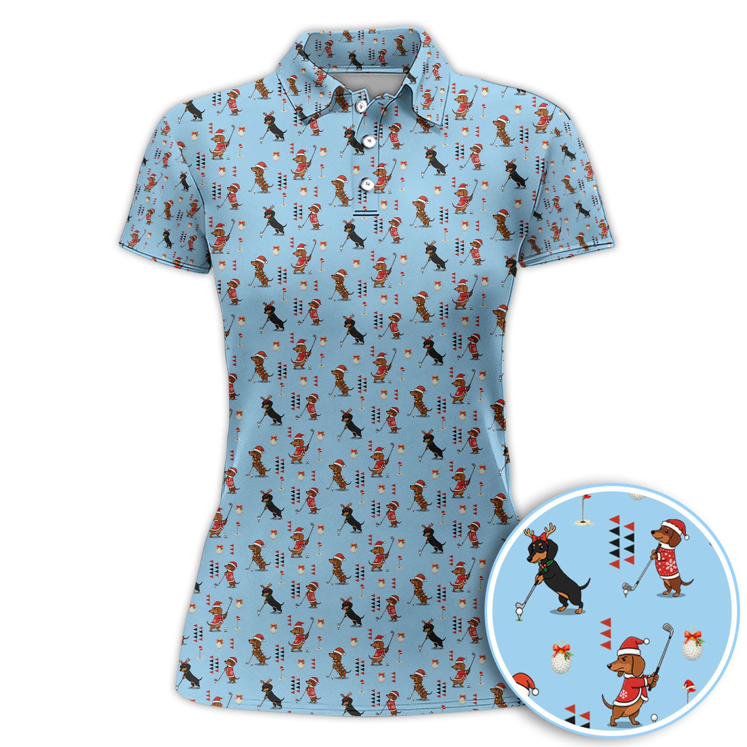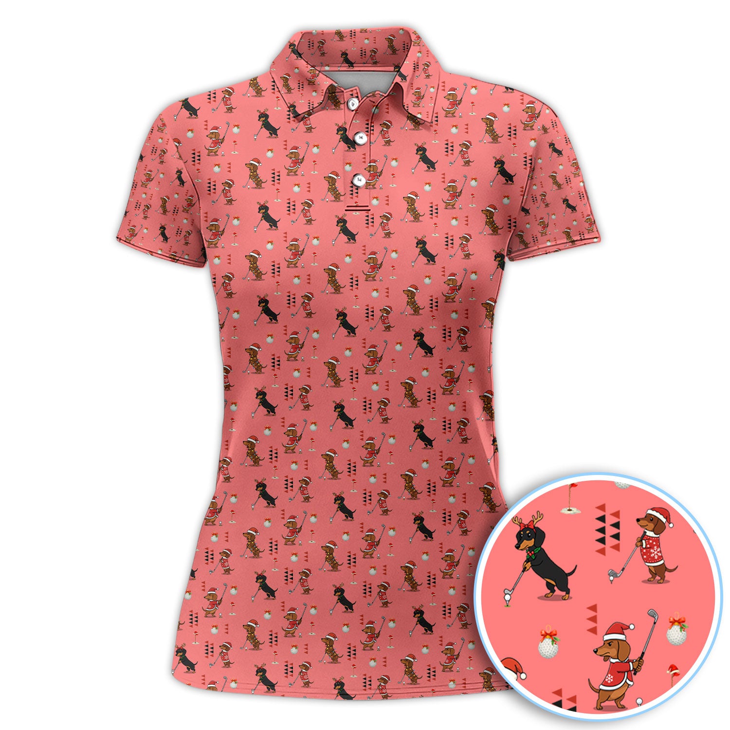 Christmas Dachshund Pattern Polos, Funny Xmas Wiener Dog Golf Shirt, Festive Golf Gift For Men
