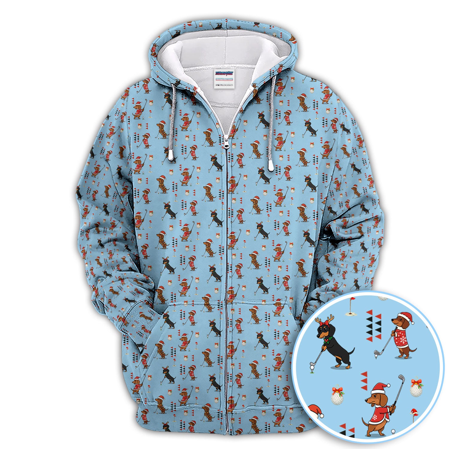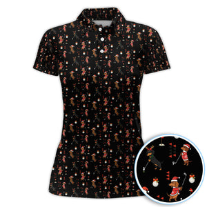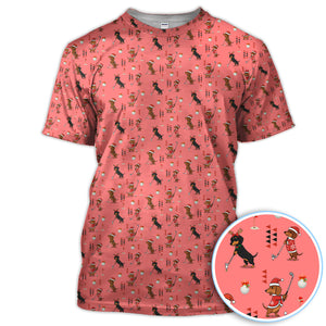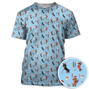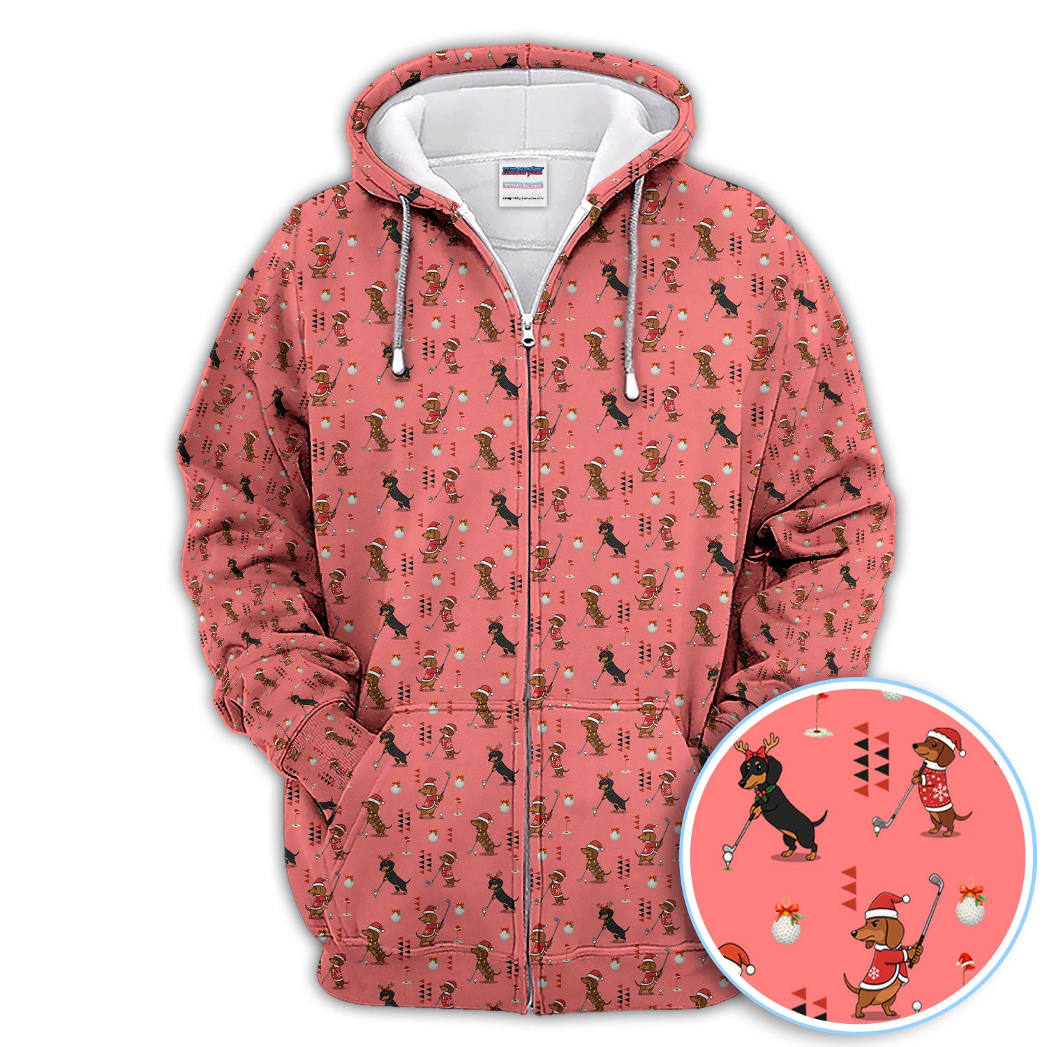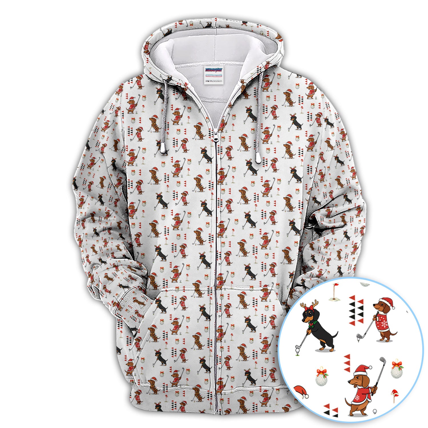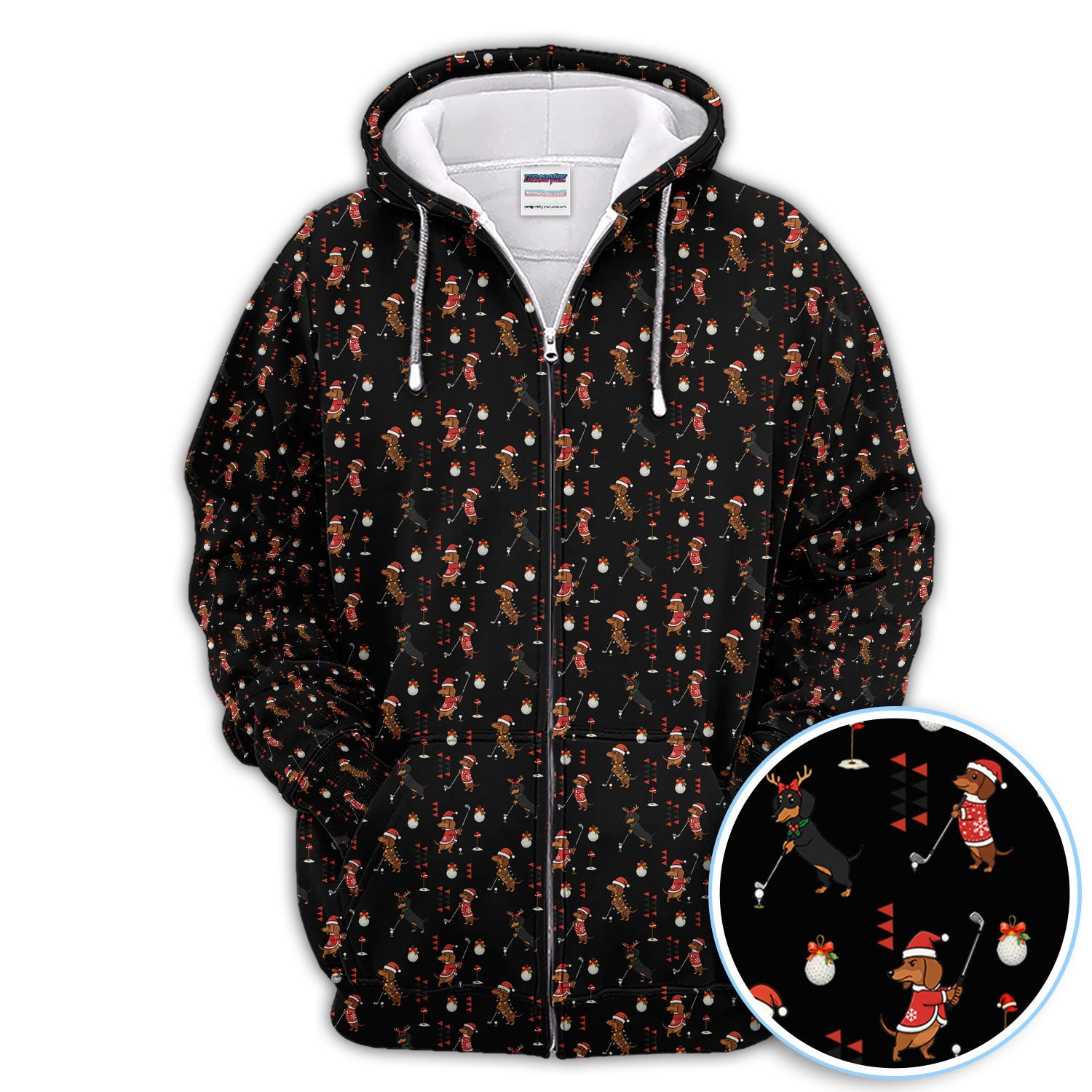 Christmas Dachshund Pattern Polos, Funny Xmas Wiener Dog Golf Shirt, Festive Golf Gift For Men