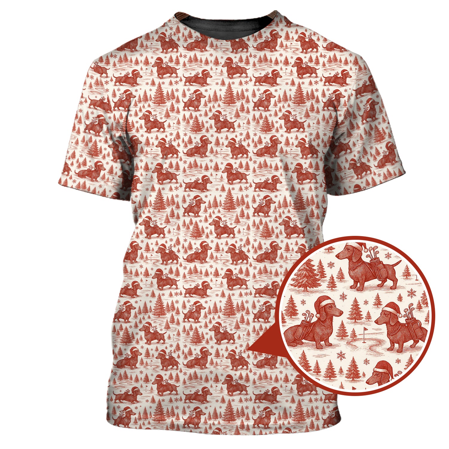 Christmas Golf Shirt, Dachshund Golf Shirt For Men, Pattern Golf Shirt, Toile De Jouy Shirt For Golfer
