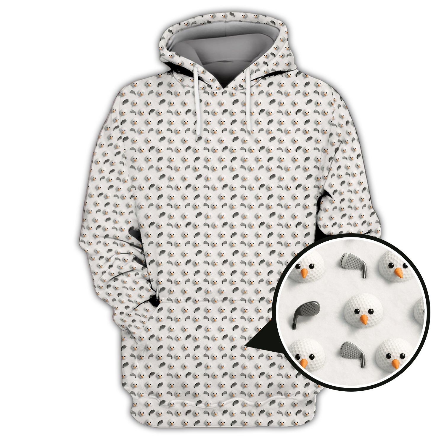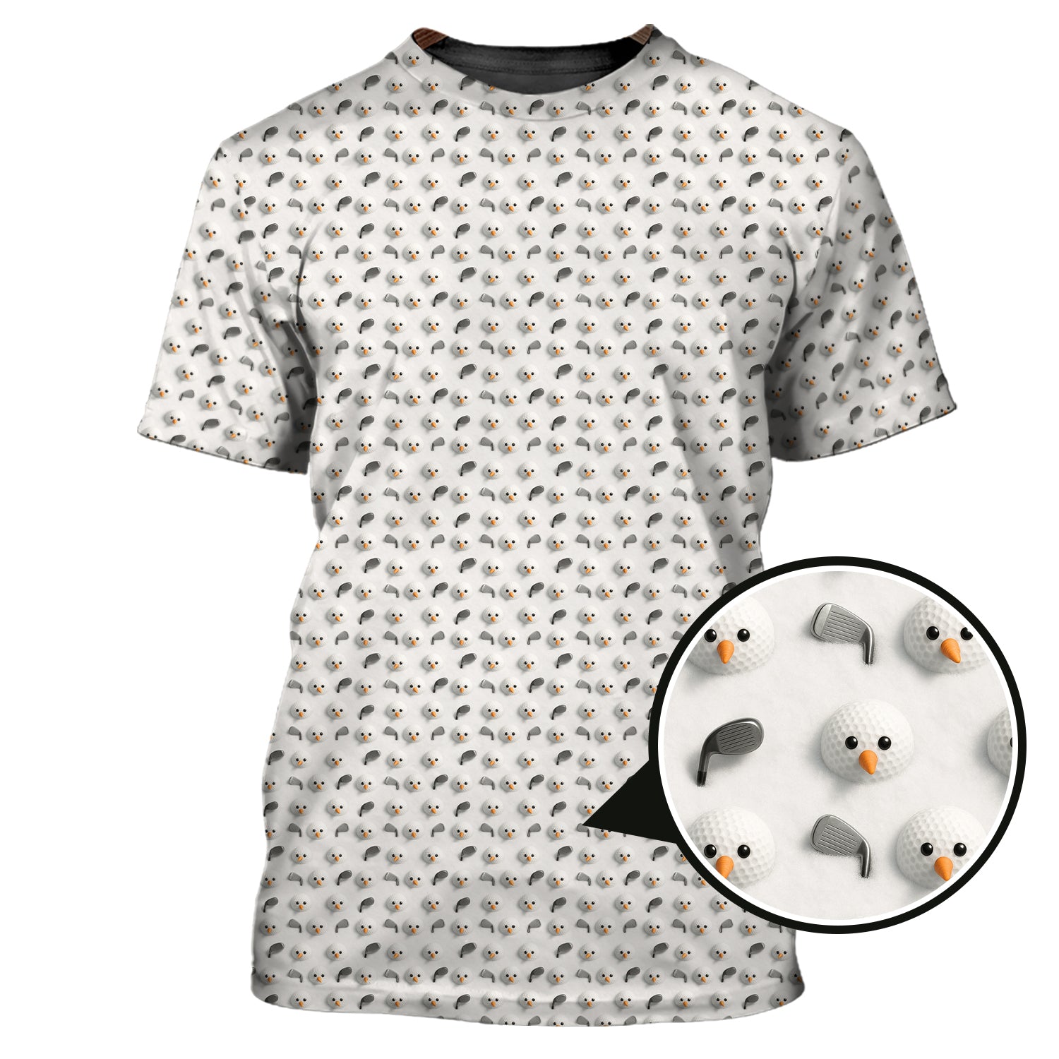 Christmas Golf Shirt, Golf Ball Snowman Shirt, Funny Pattern Golf Shirt For Men