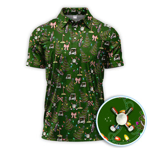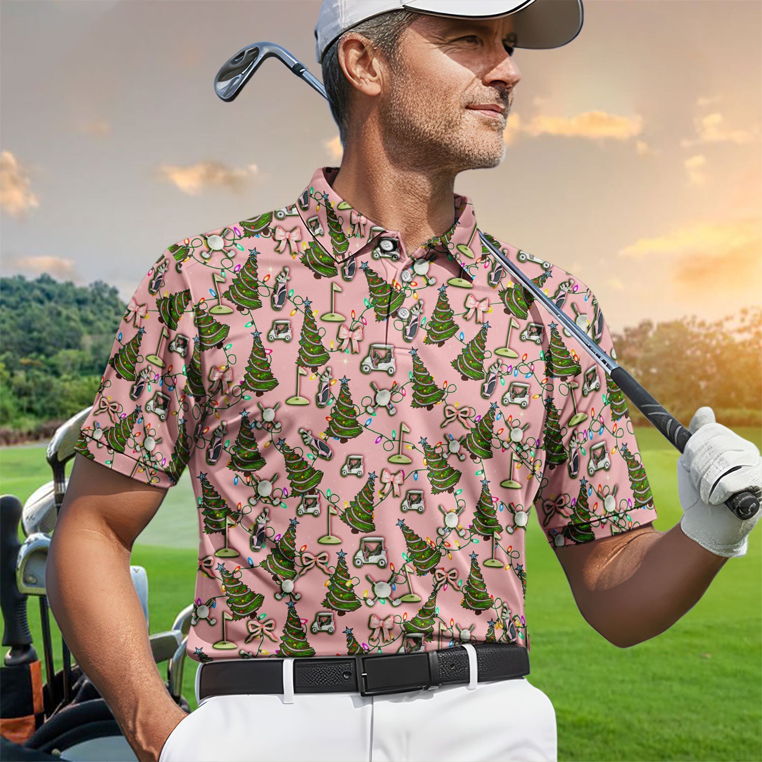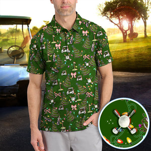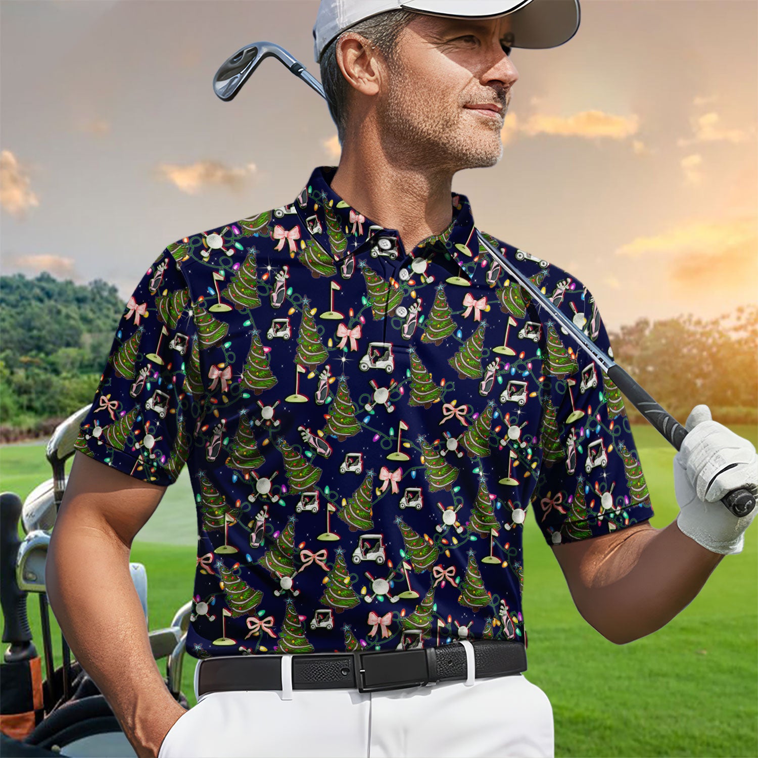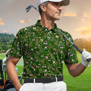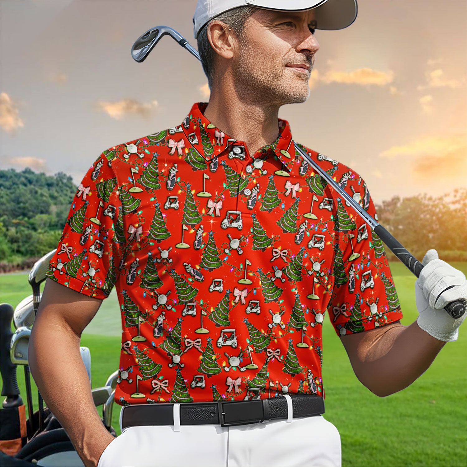 Christmas Pattern Polos, Funny Xmas Golf Shirt, Festive Golf Gift For Men