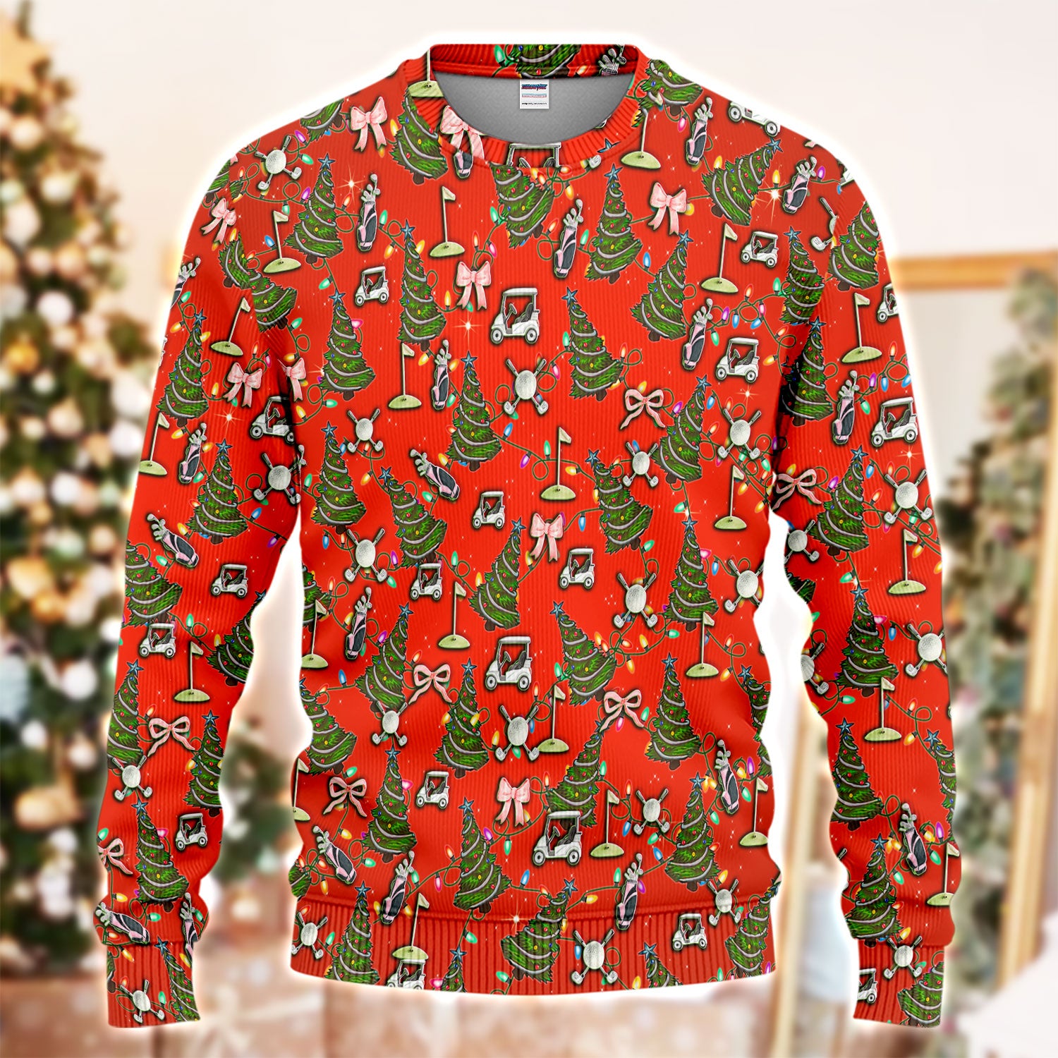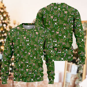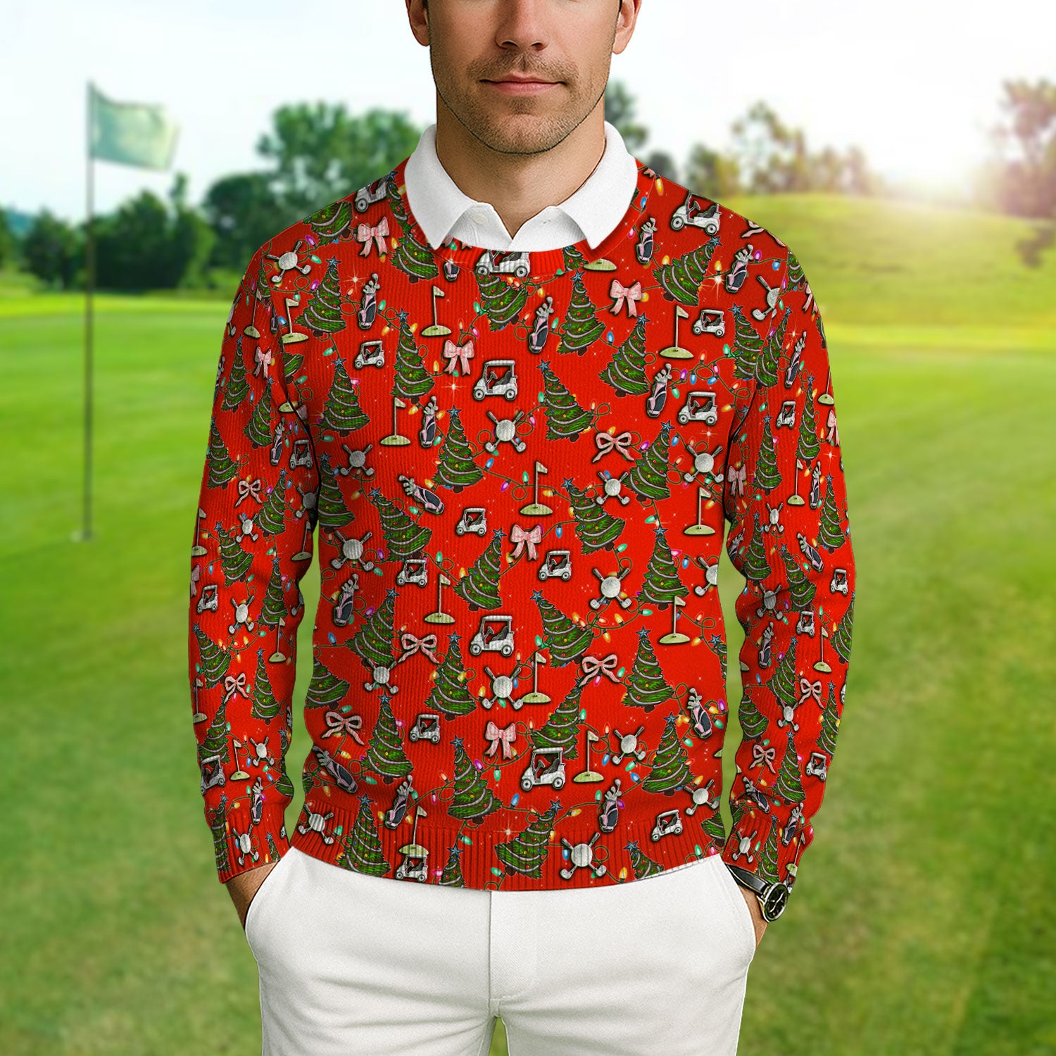 Christmas Pattern Ugly Sweater, Funny Xmas Golf Sweater, Festive Golf Gift For Men