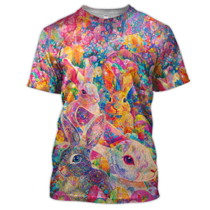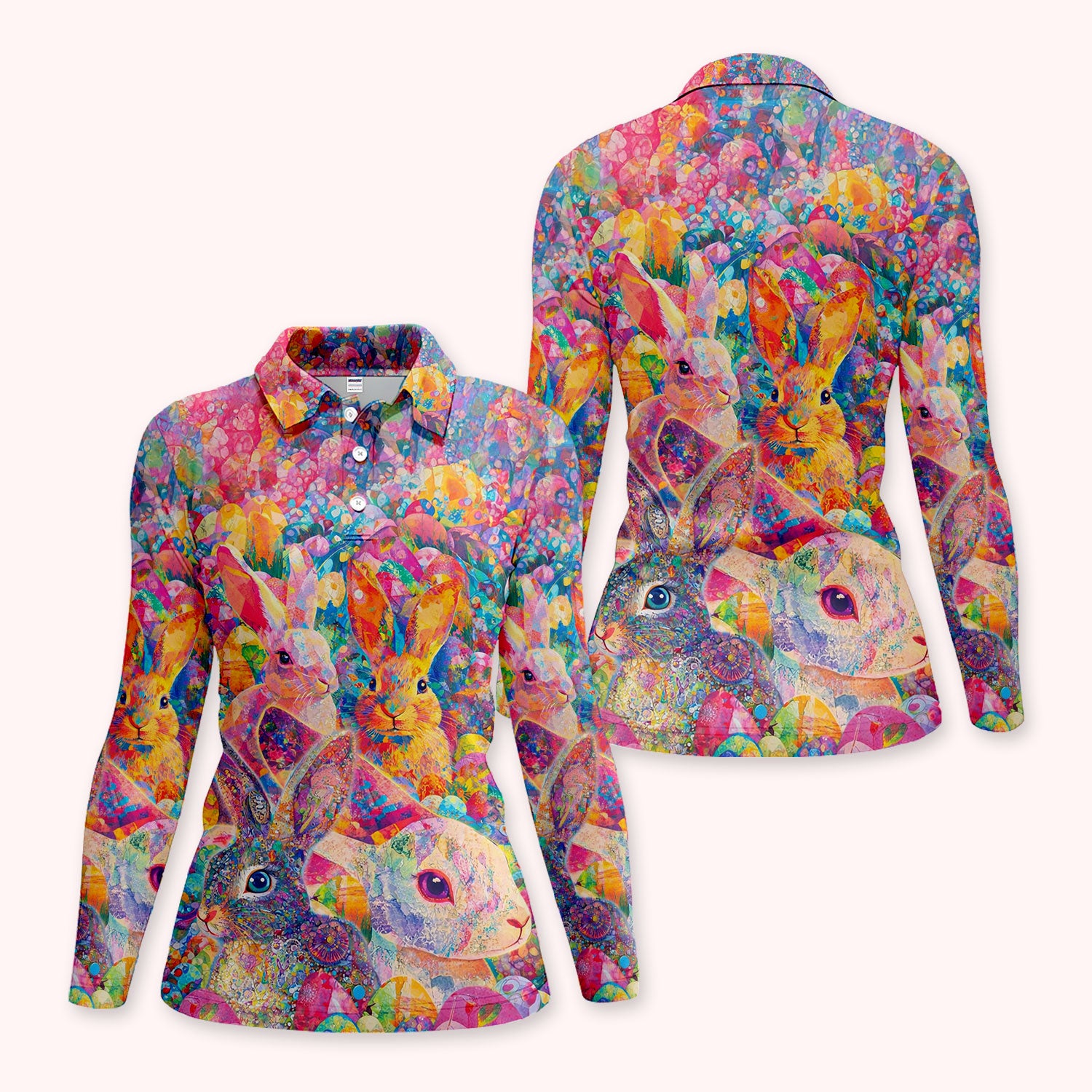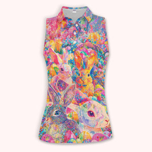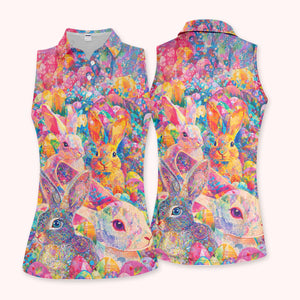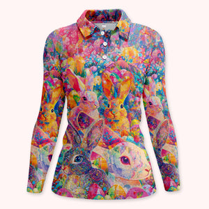 Colorful Bunny Easter Golf Polos, Easter Rabbit Golf Shirt For Women, Golf Gift For Golfer