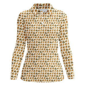 Corgi Golf Pattern Shirt, Cute Dog Golf Polo For Pet Lovers And Golfers, Funny Golf Polos For Men's