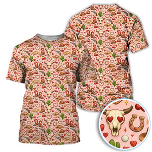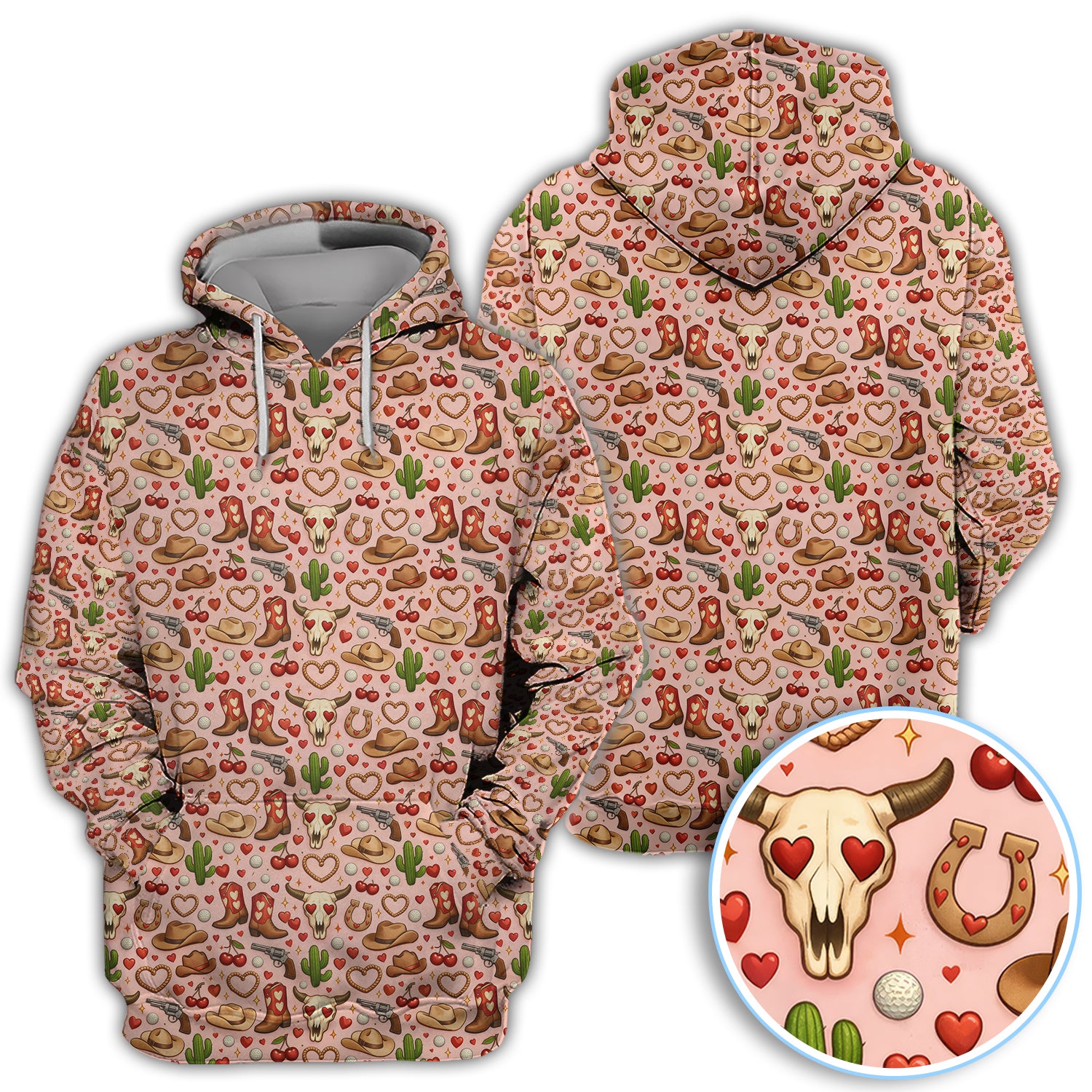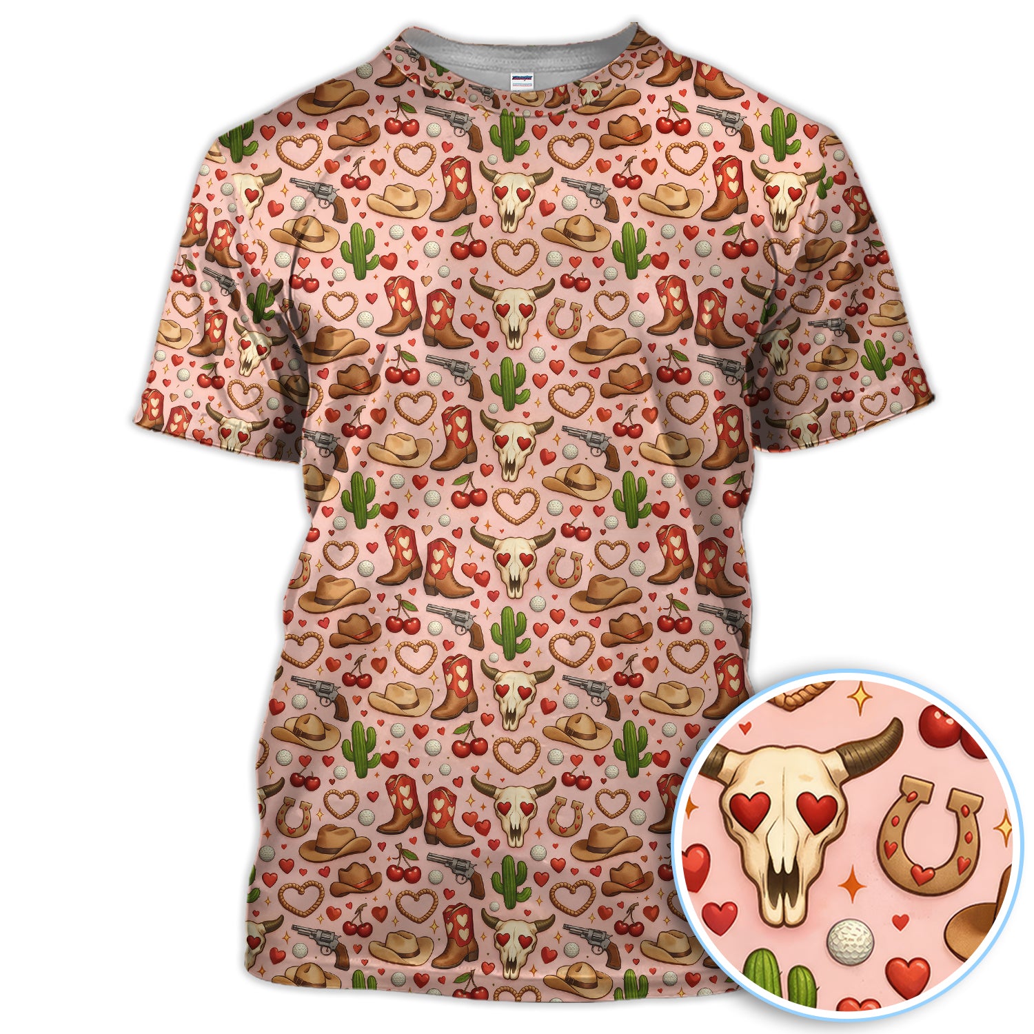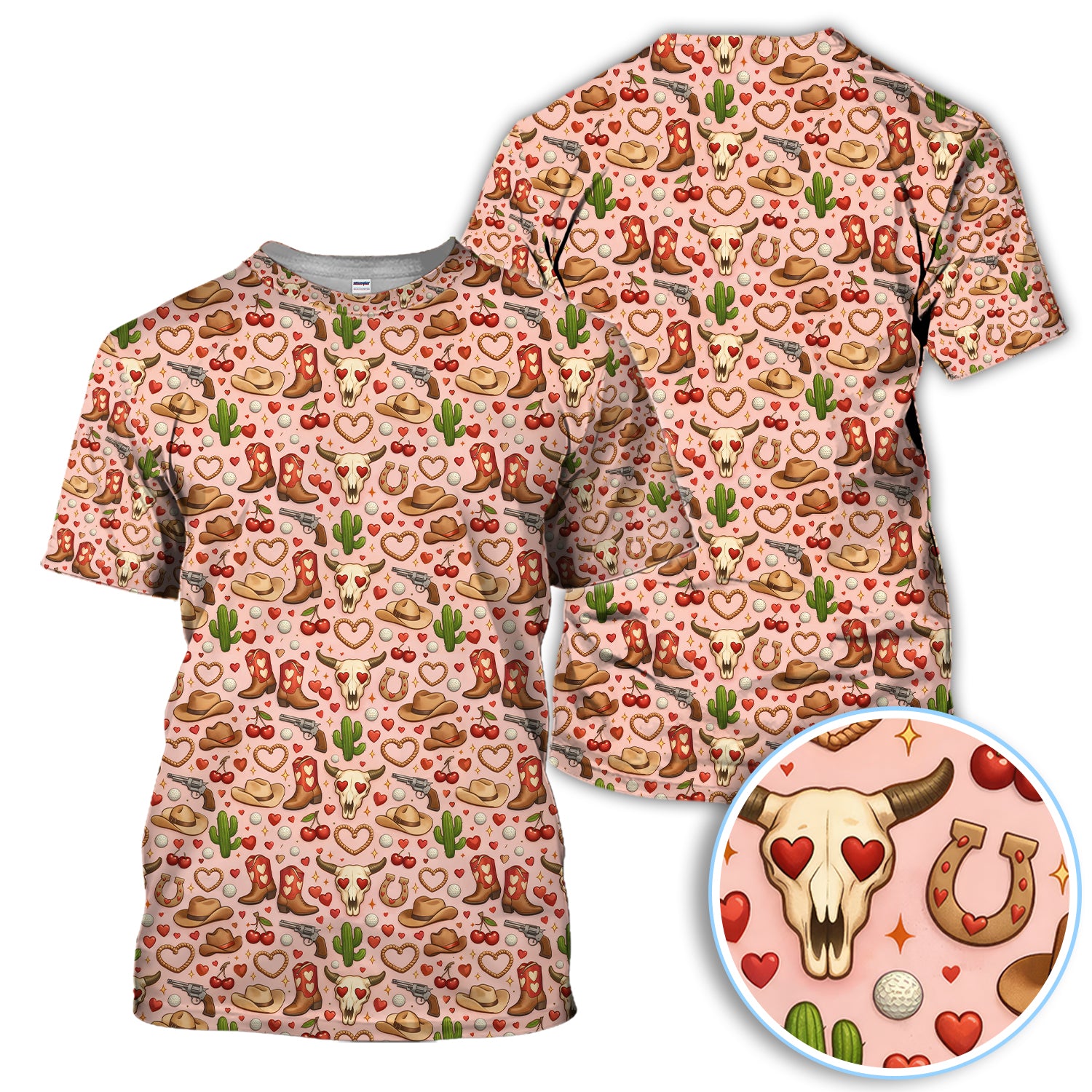 Cowgirl Heart Skull Golf Shirt For Women, Country Boots Cactus Pattern Golf Polos, Golf Gift For Golfer