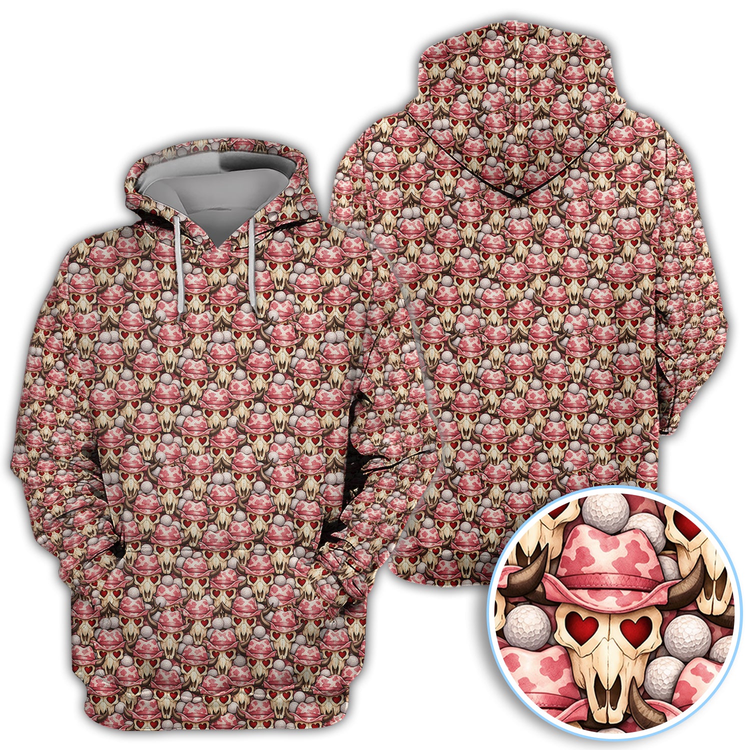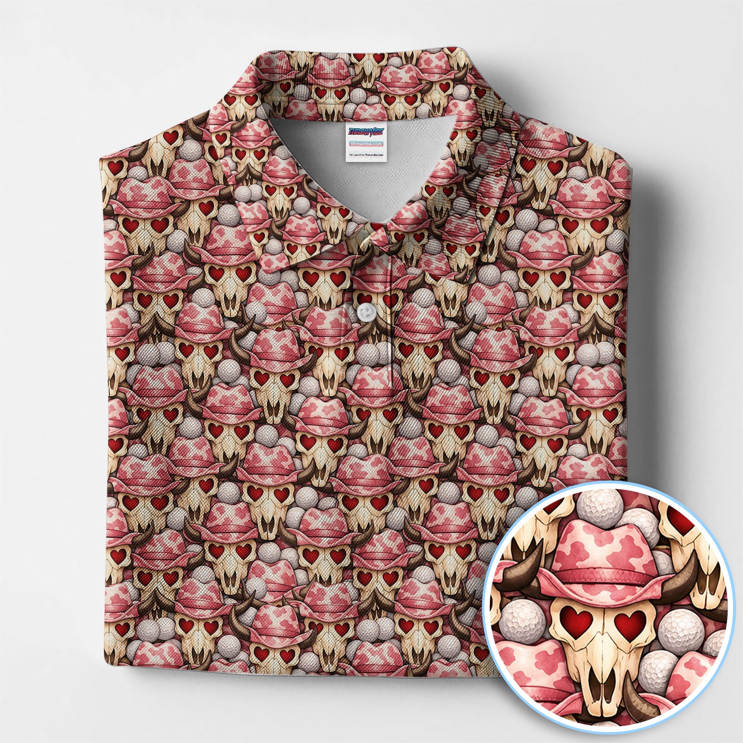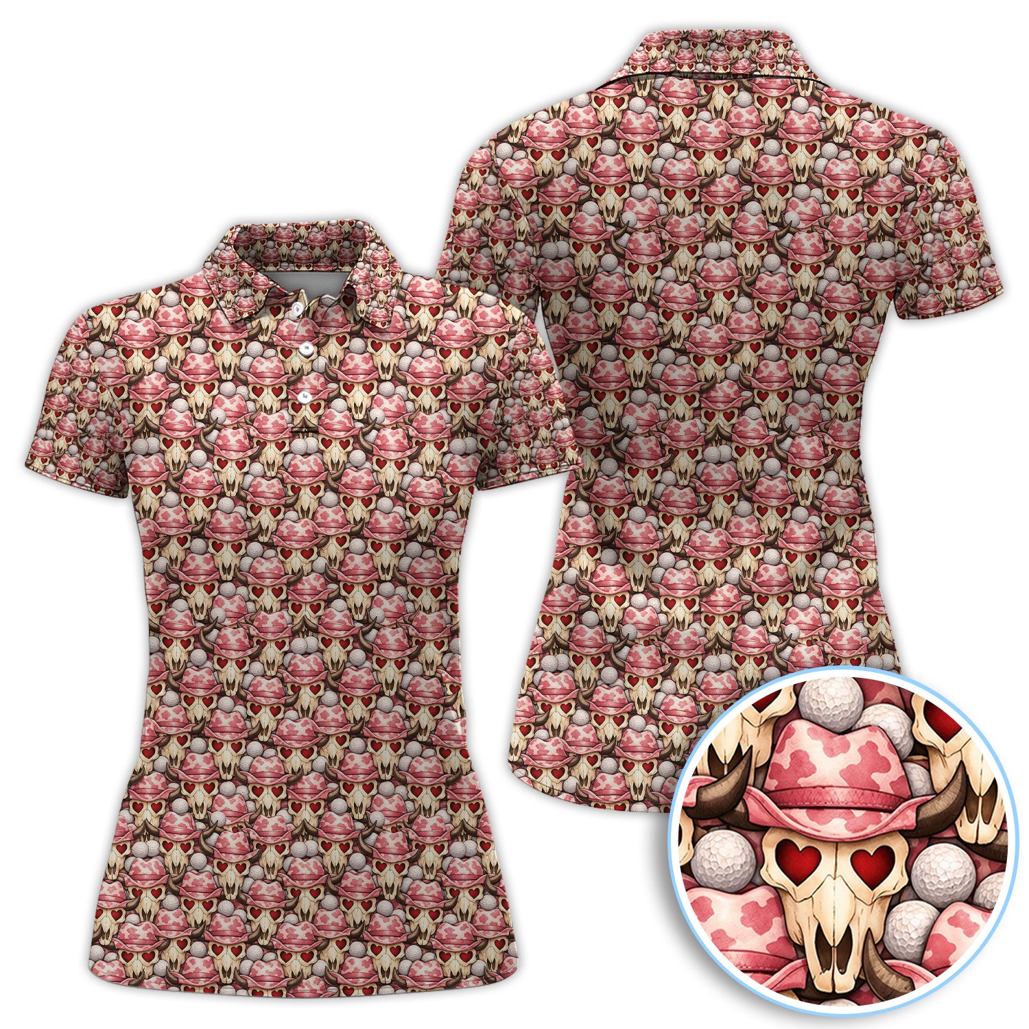 Cowboy Loves Golf Shirt, Pink Western Skull Heart Pattern Golf Polos For Men, Fun Golf Gift For Golfer