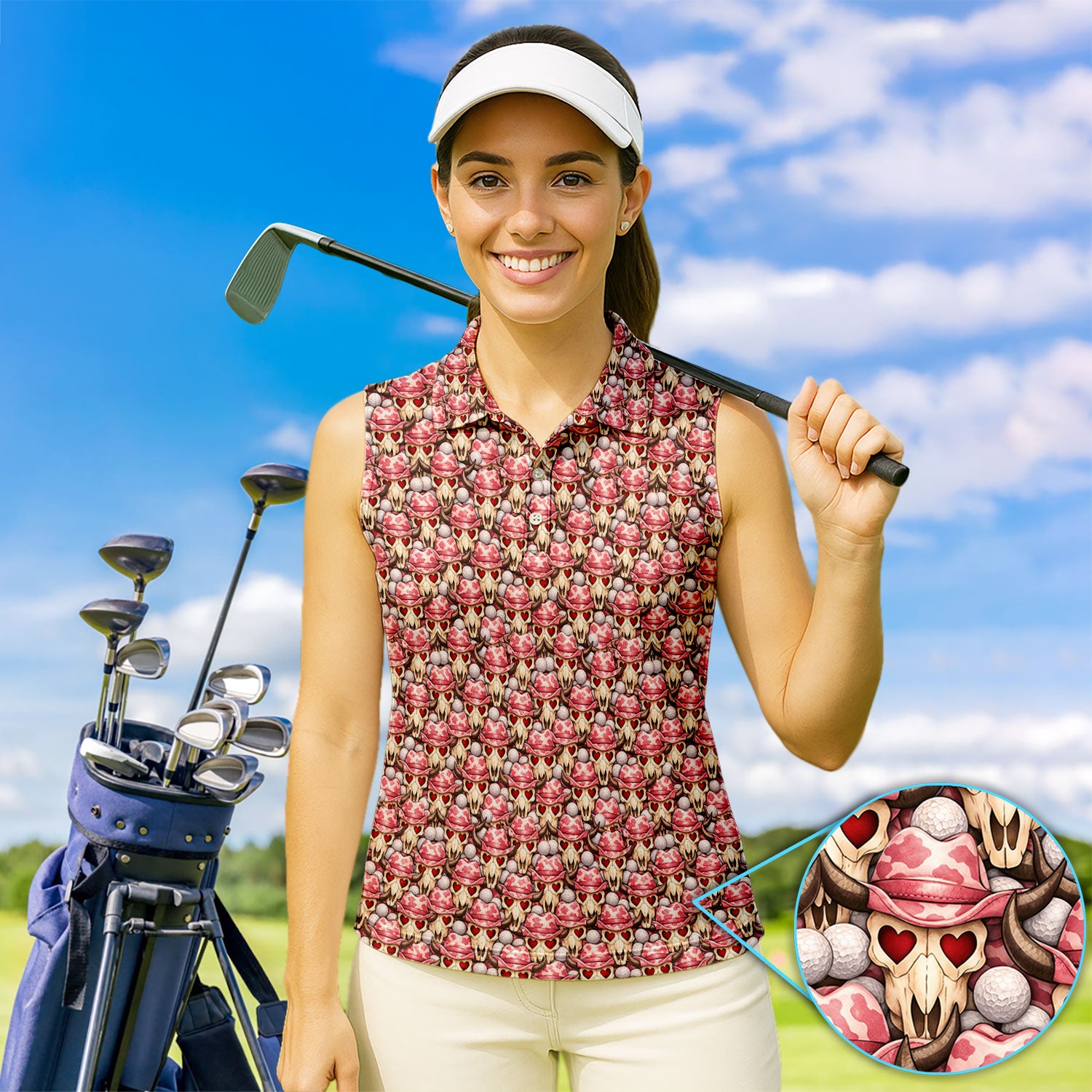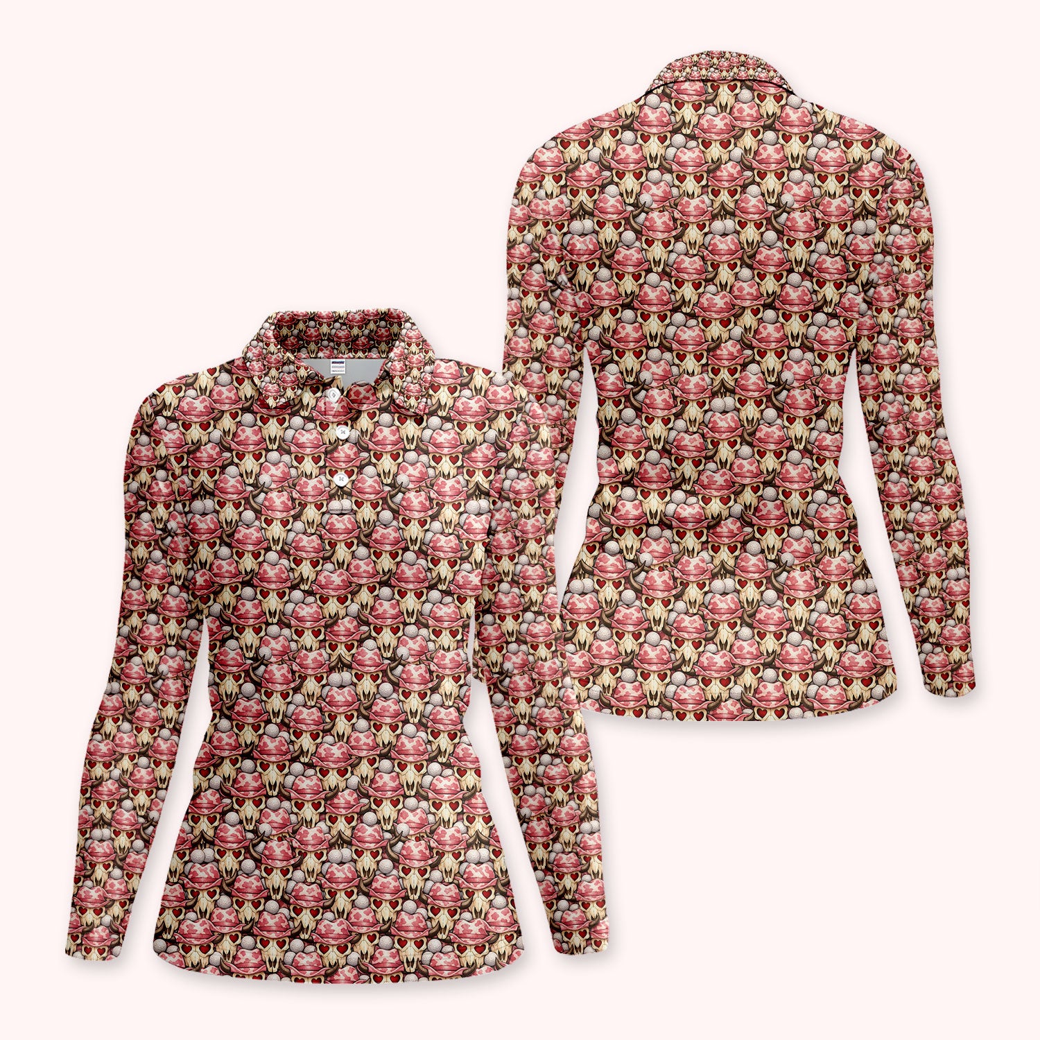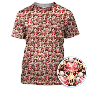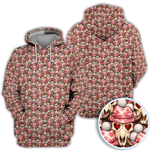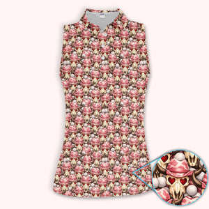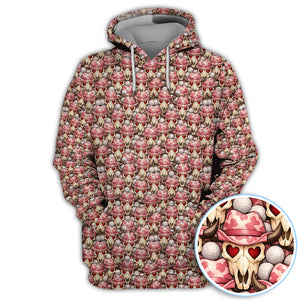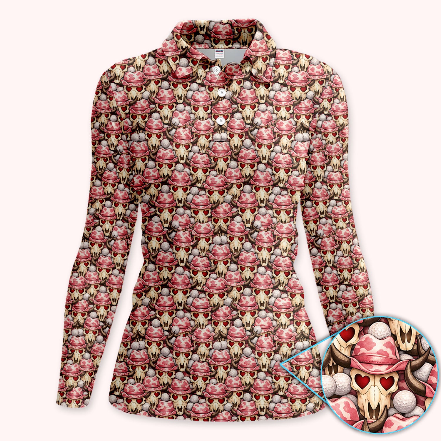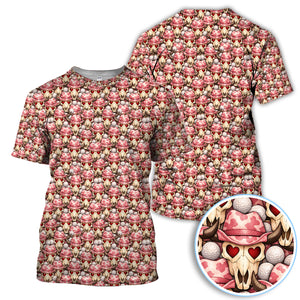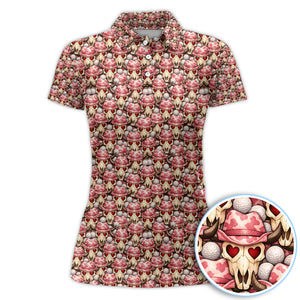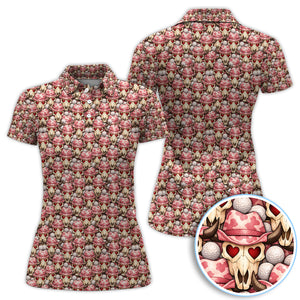 Cowboy Loves Golf Shirt, Pink Western Skull Heart Pattern Golf Polos For Women, Fun Golf Gift For Golfer