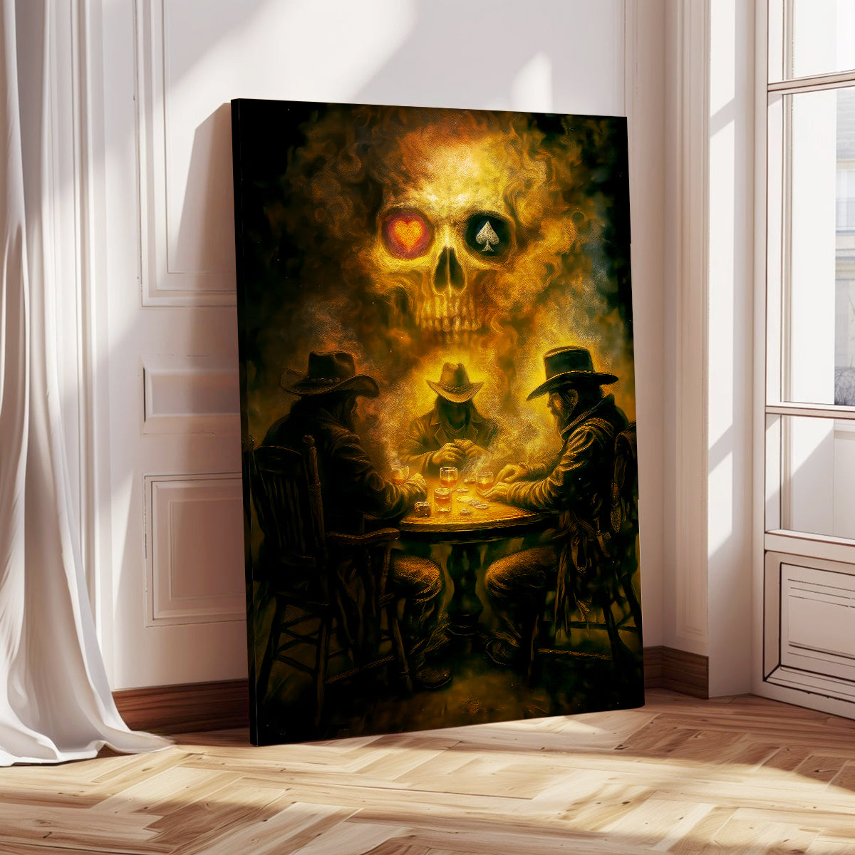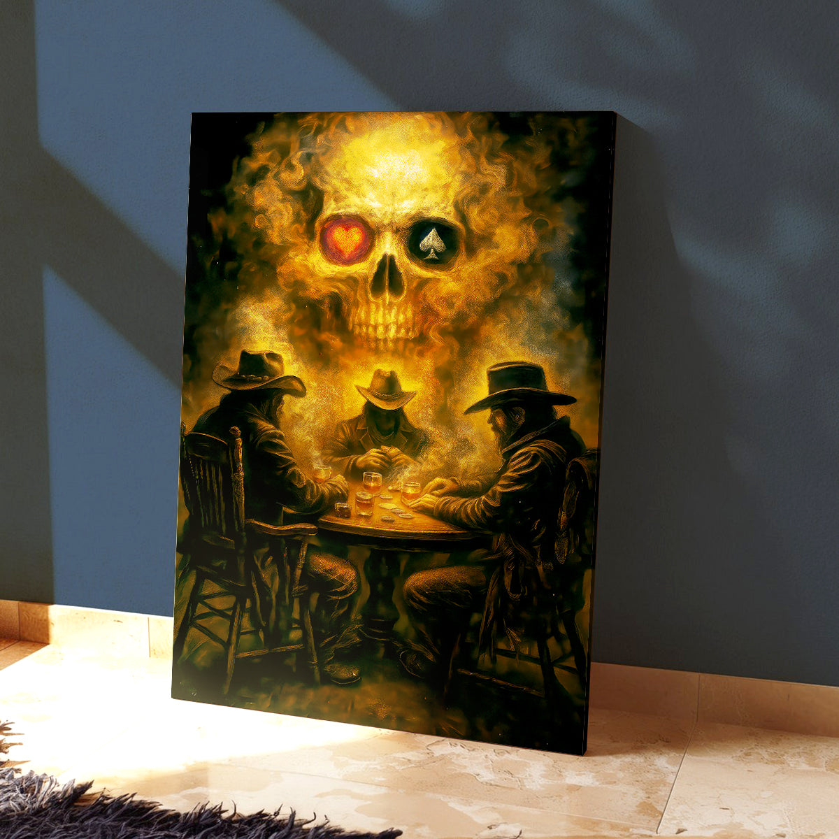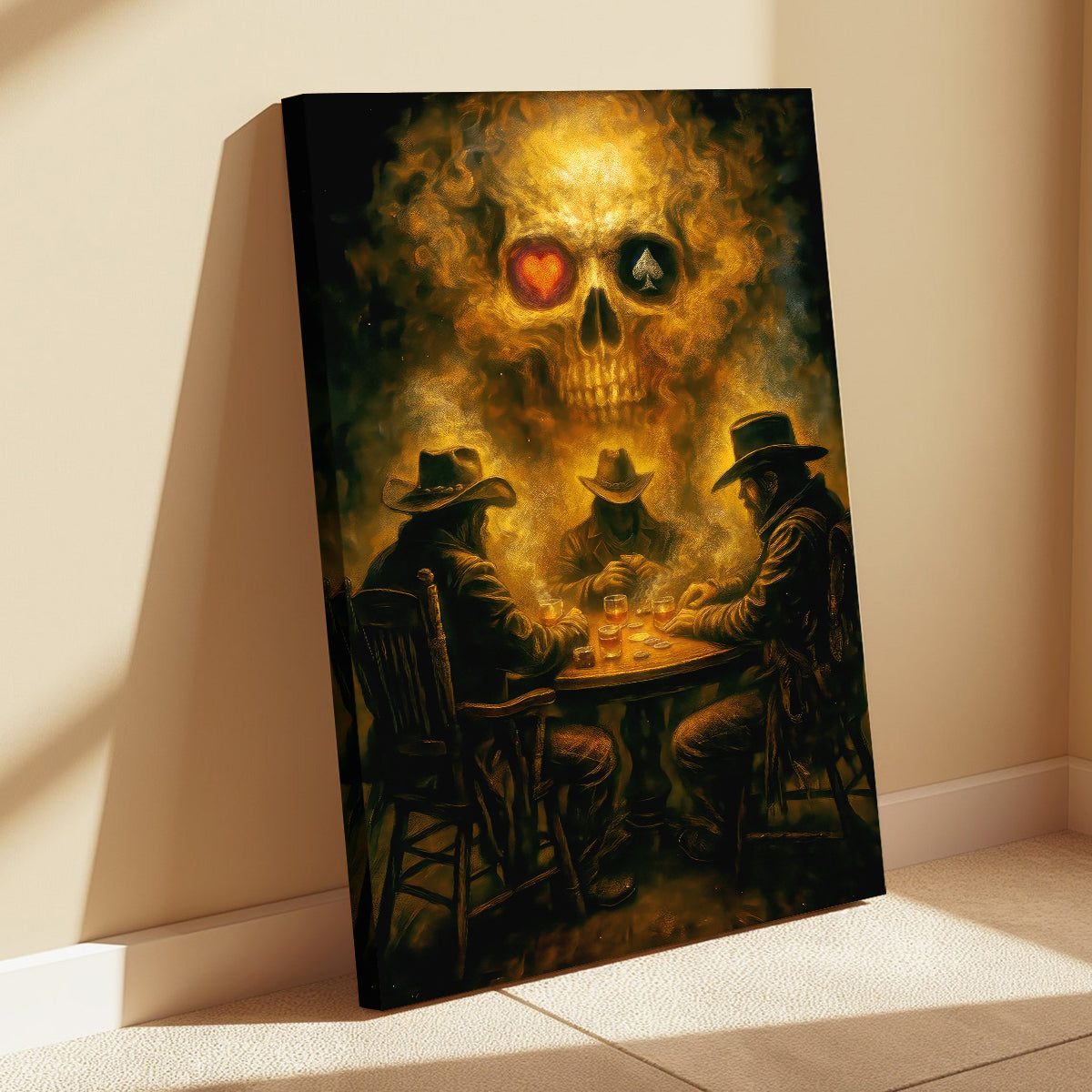 Cowboy Poker Wall Art, Skull Poker Poster, Western Poker Canvas For Game Room Decor