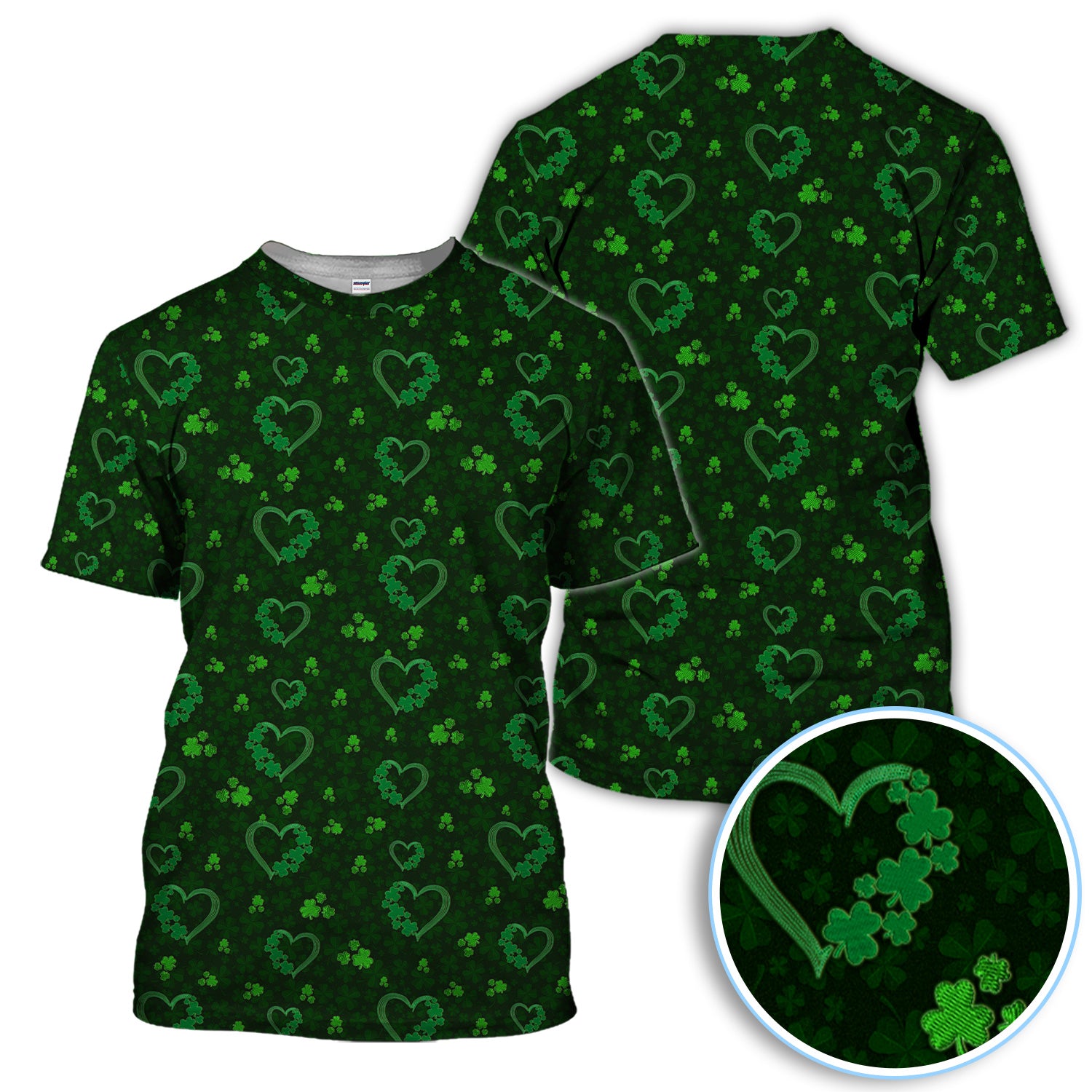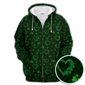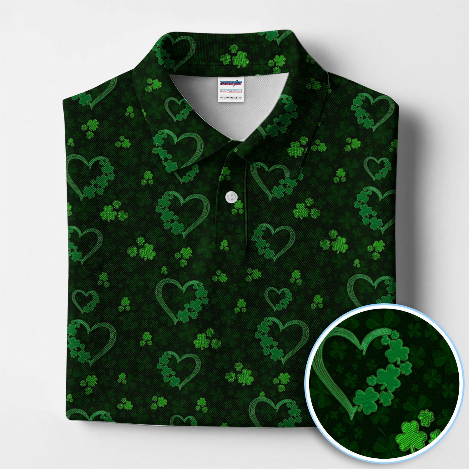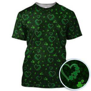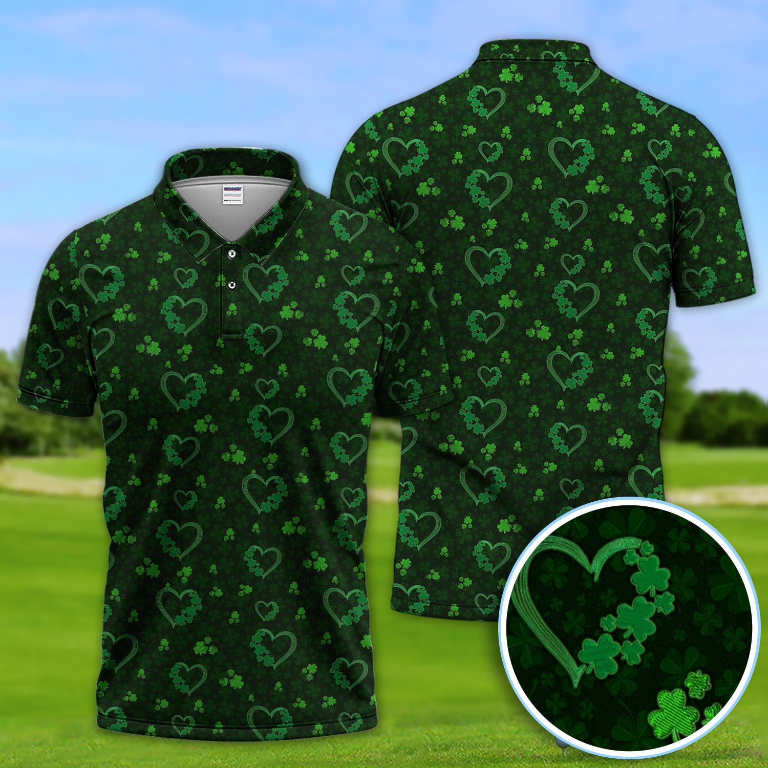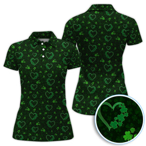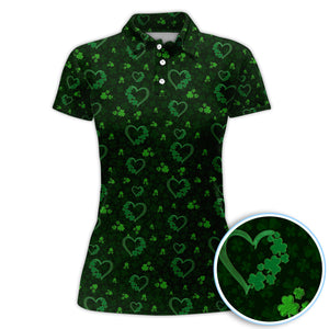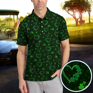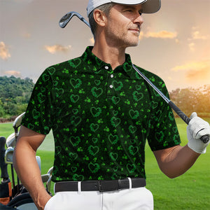 Crazy Shamrock Heart Pattern Golf Polos, St. Patrick’s Day Golf Shirt, Lucky Irish Green Shirt For Men