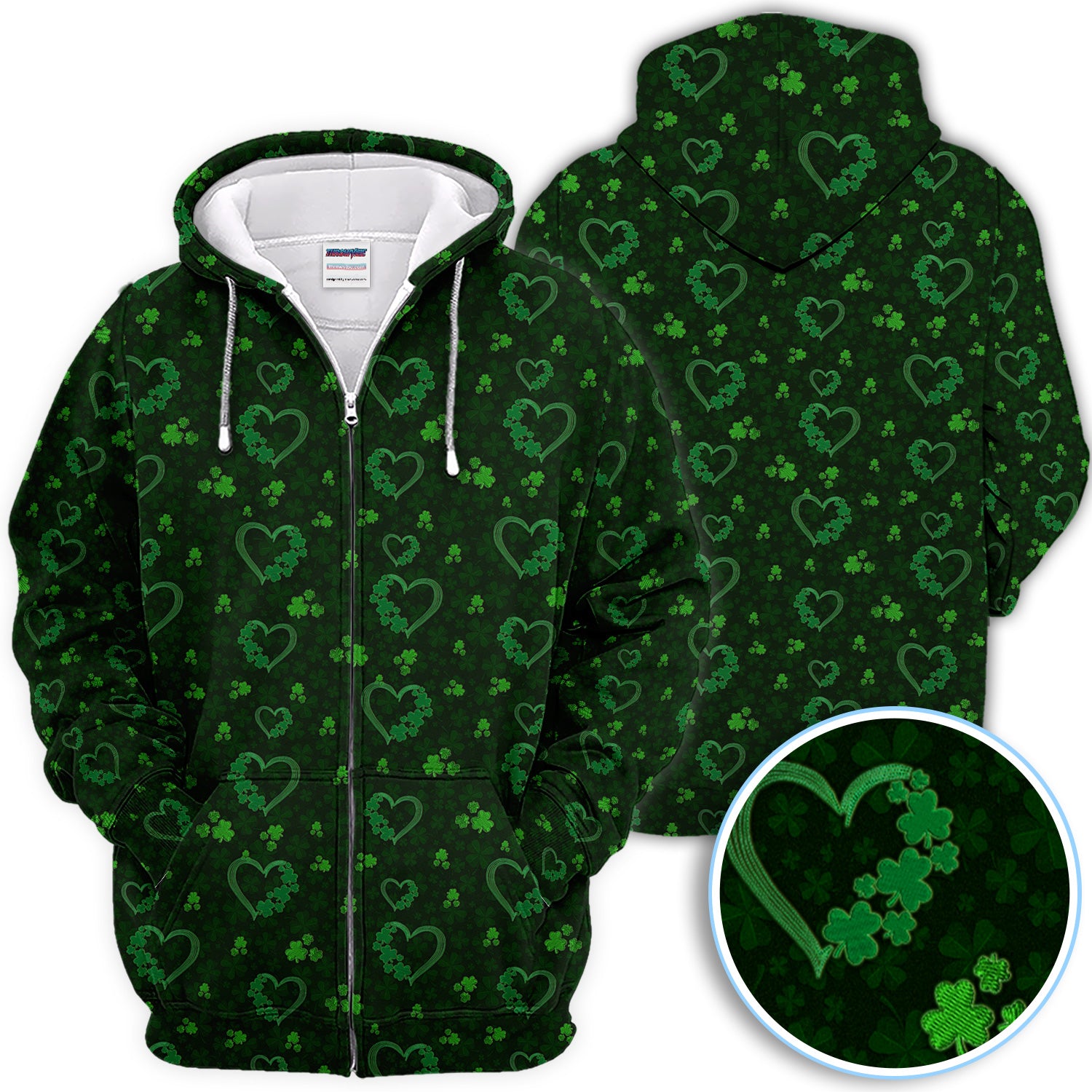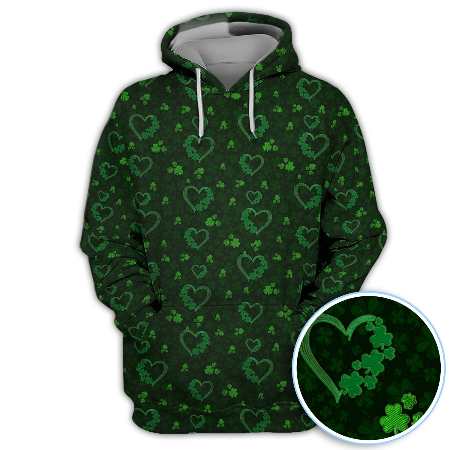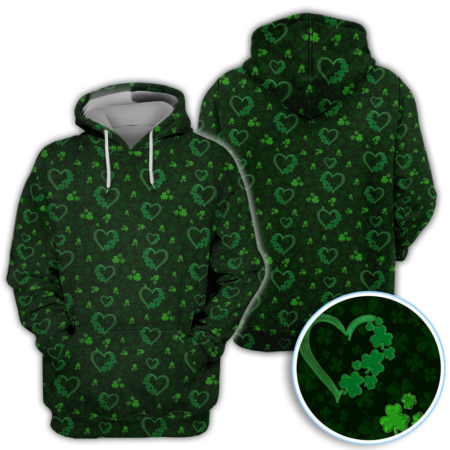 Crazy Shamrock Heart Pattern Golf Polos, St. Patrick’s Day Golf Shirt, Lucky Irish Green Shirt For Men