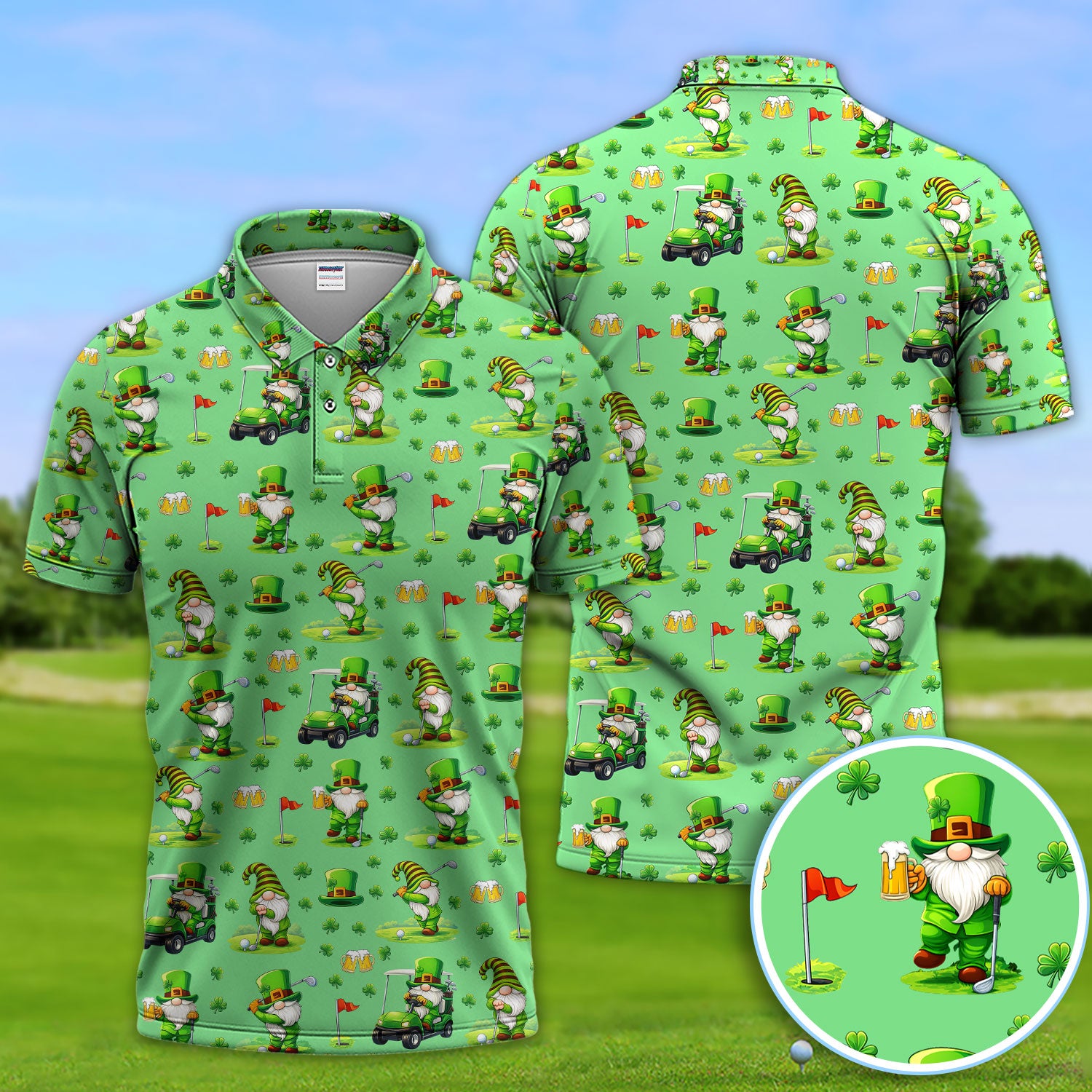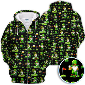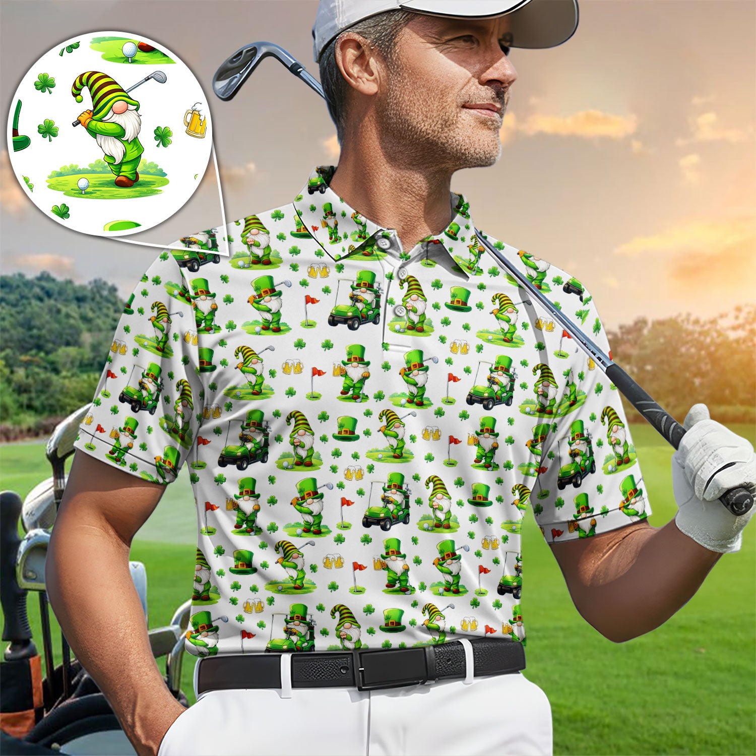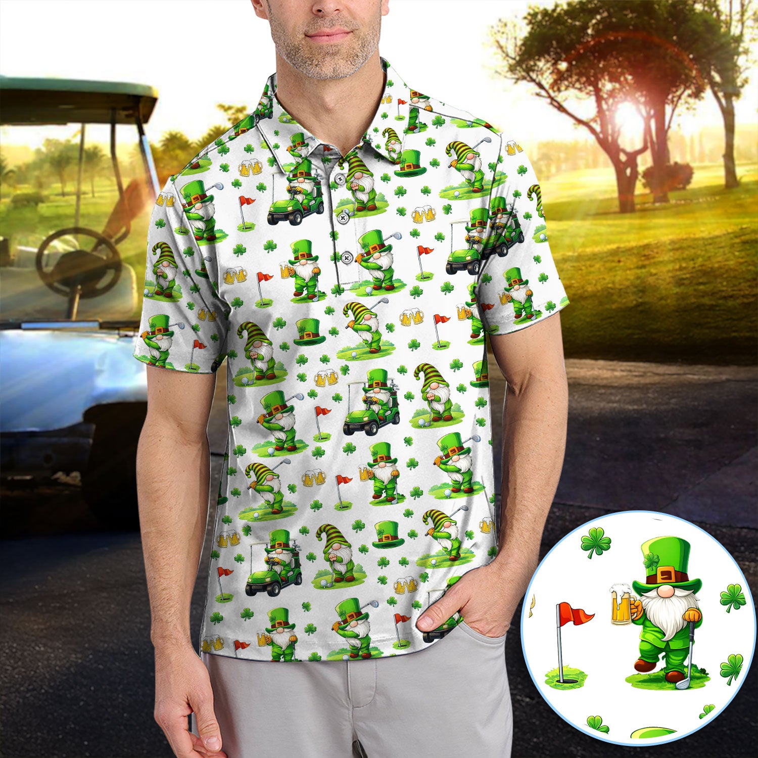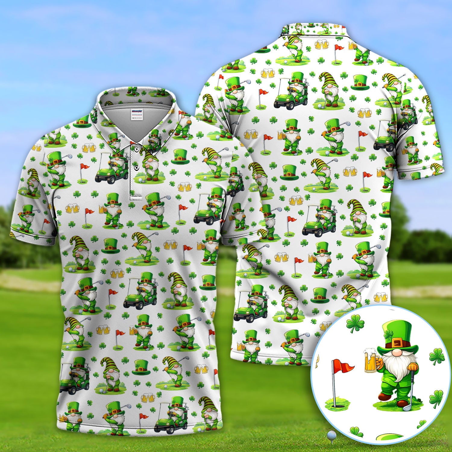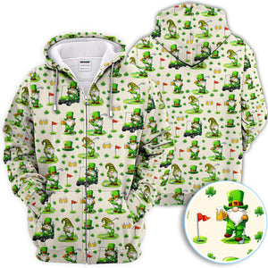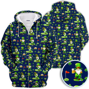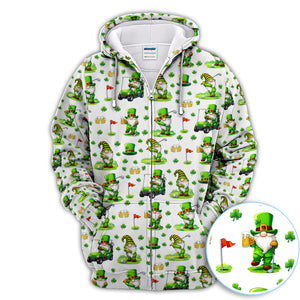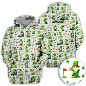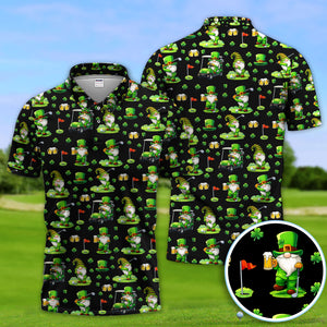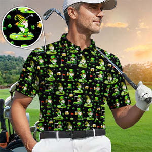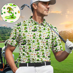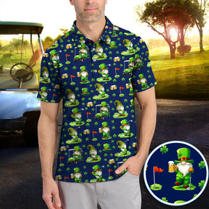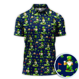 Crazy St. Patrick’s Day Pattern Golf Polos, Leprechaun Golf Shirt For Men, Funny Golf Gift For Golfer