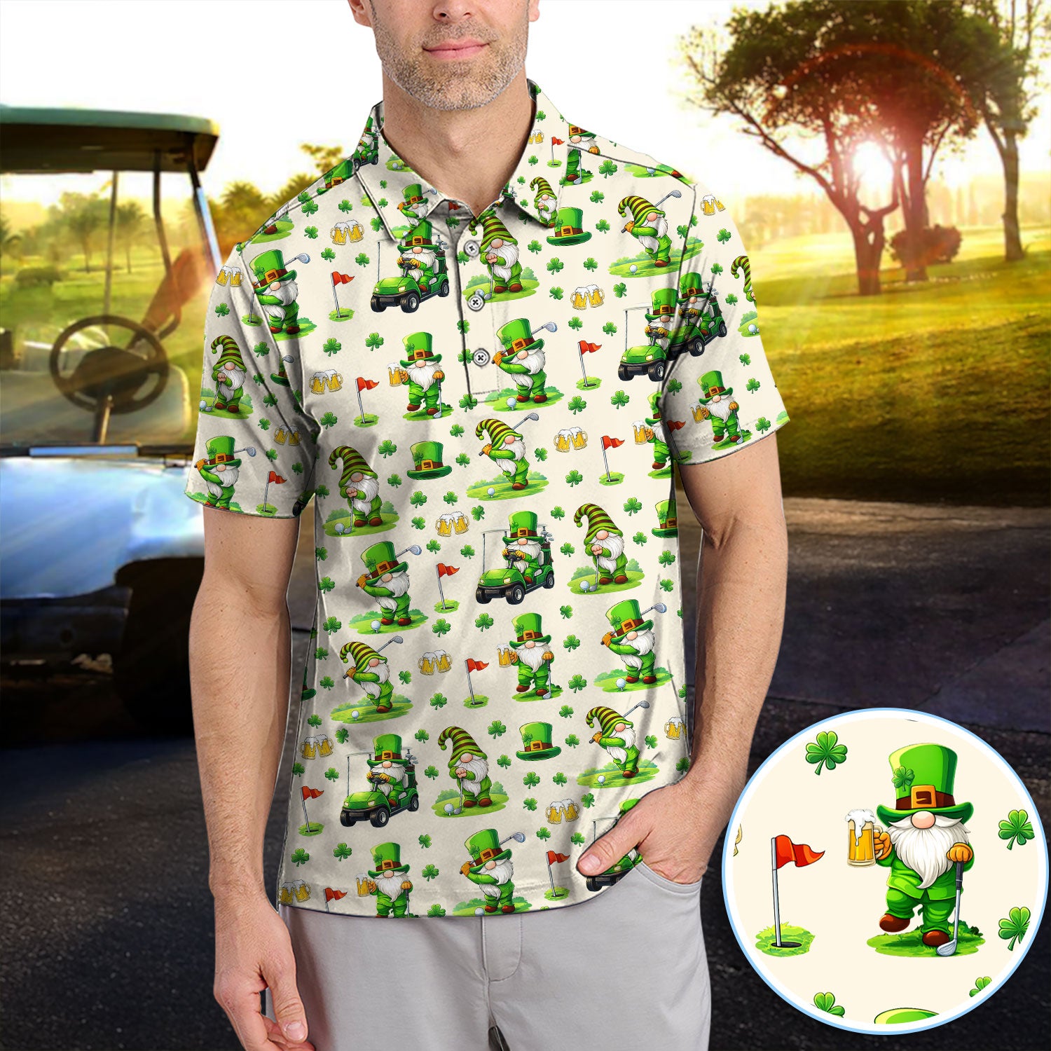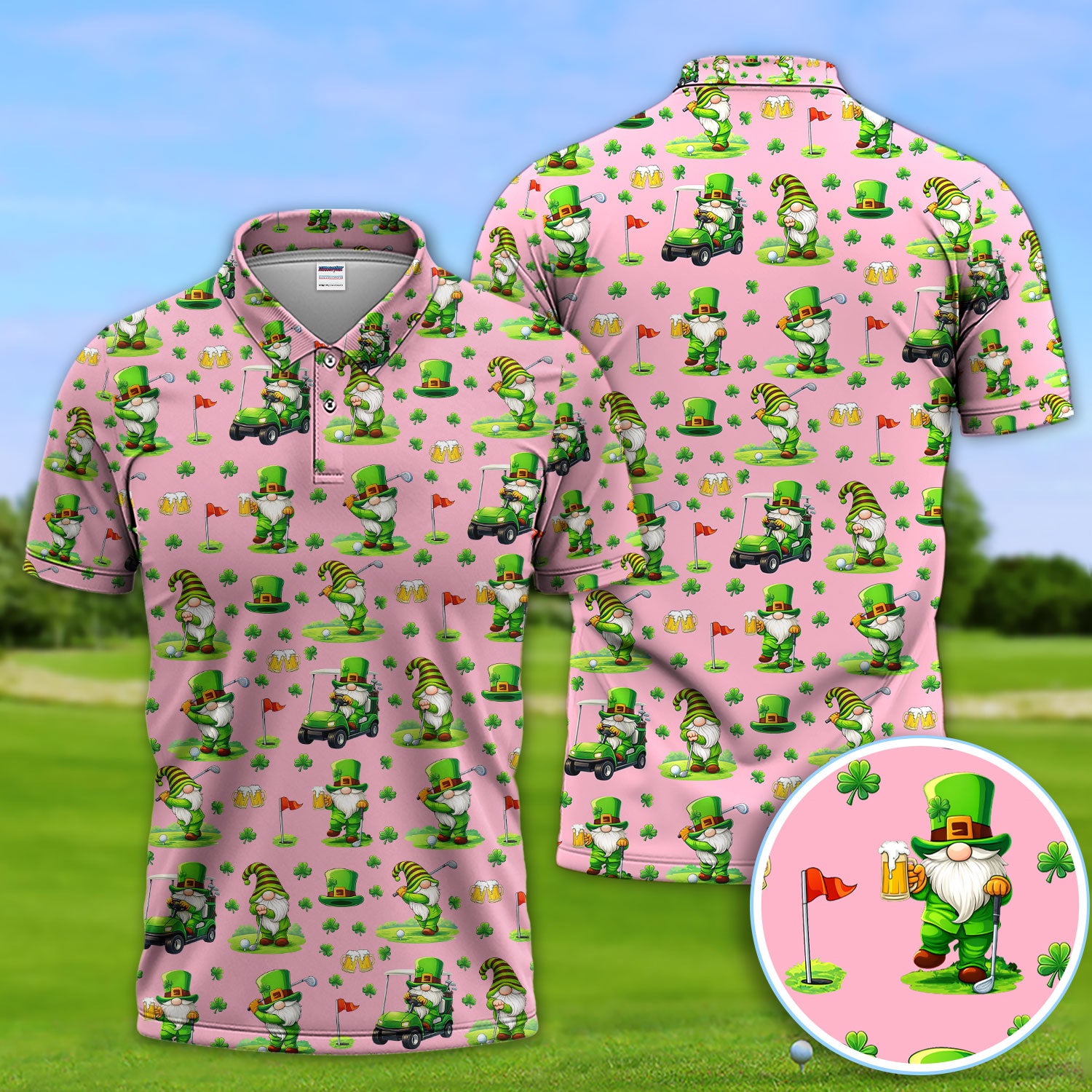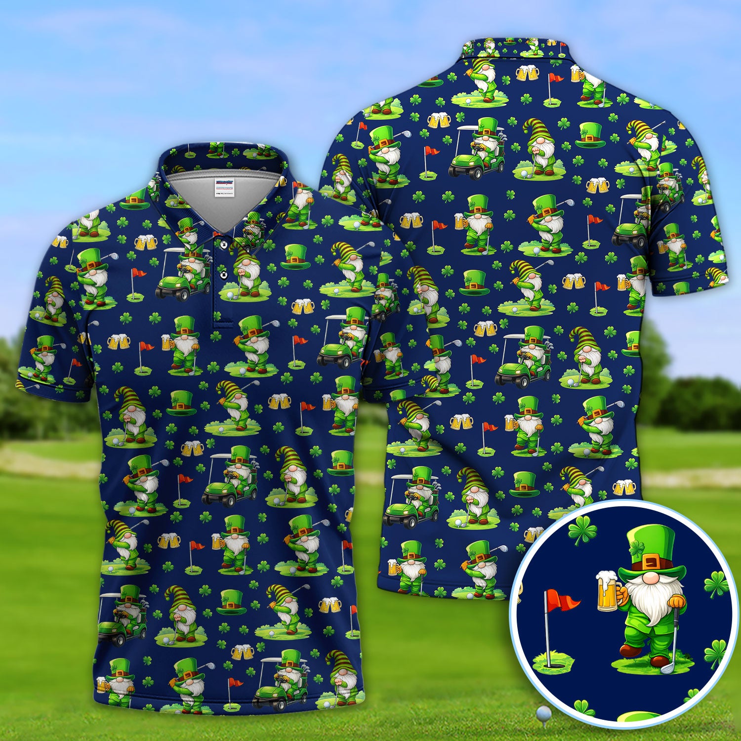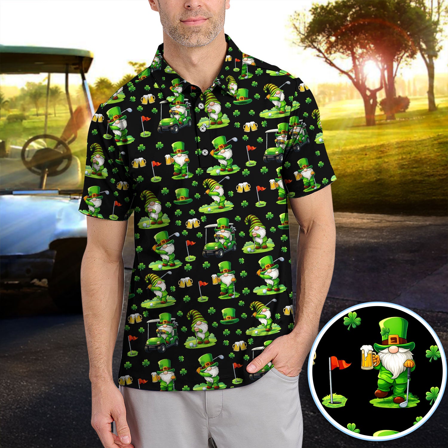 Crazy St. Patrick’s Day Pattern Golf Polos, Leprechaun Golf Shirt For Men, Funny Golf Gift For Golfer
